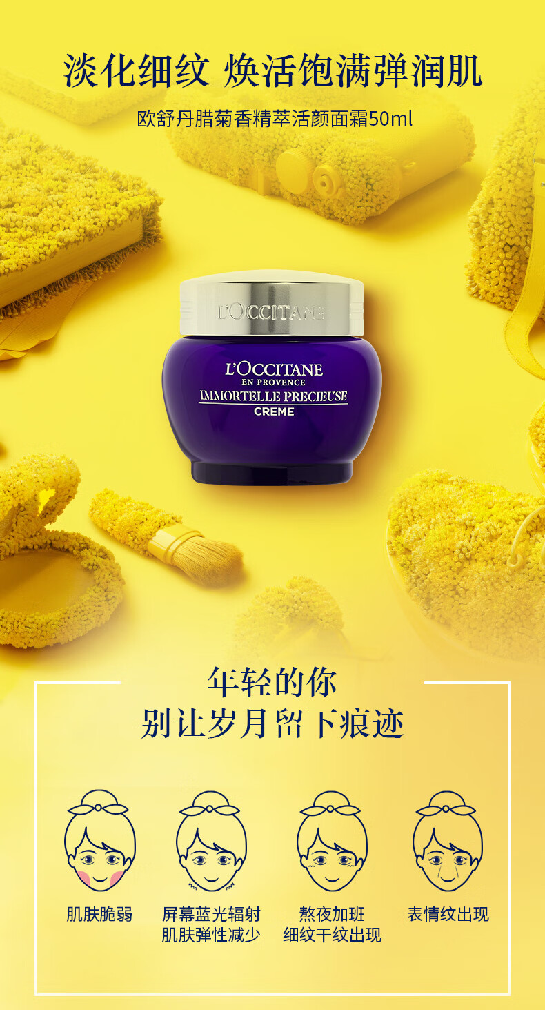 欧舒丹腊菊香精萃活颜面霜50ml男女士护肤品紧致提拉保湿滋润易吸收礼物 心选到家