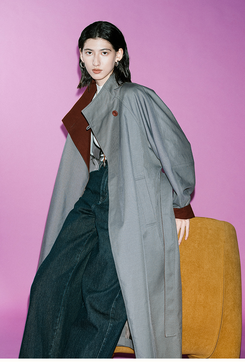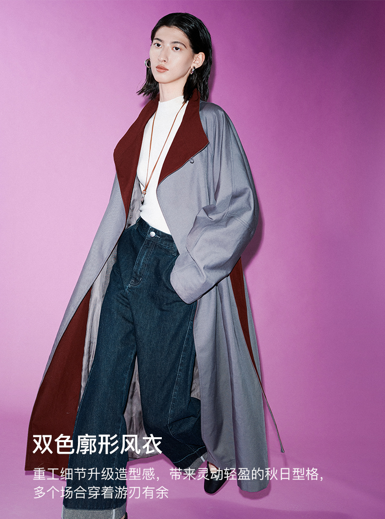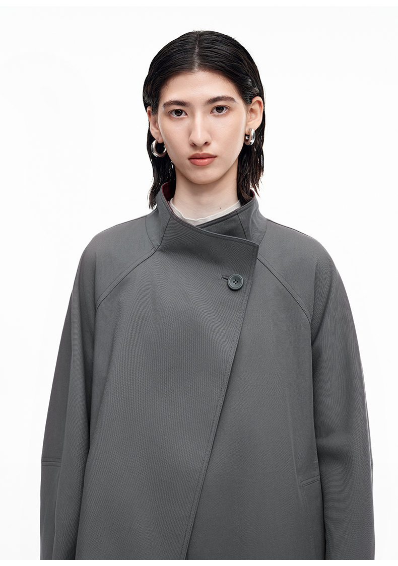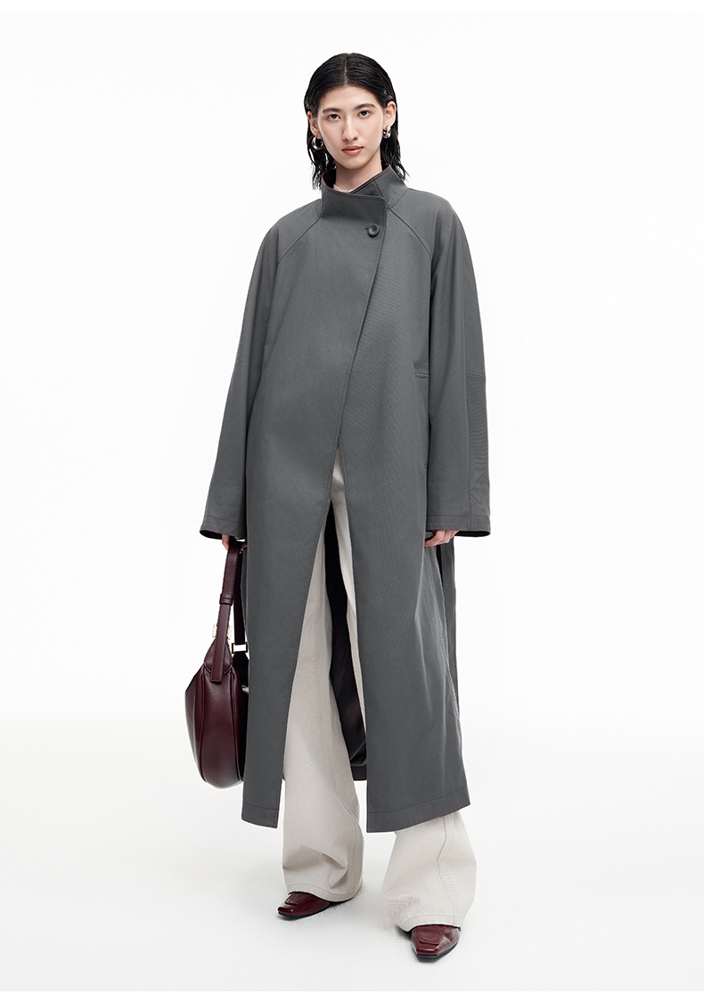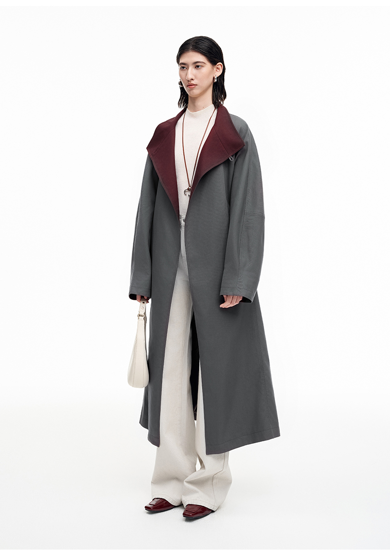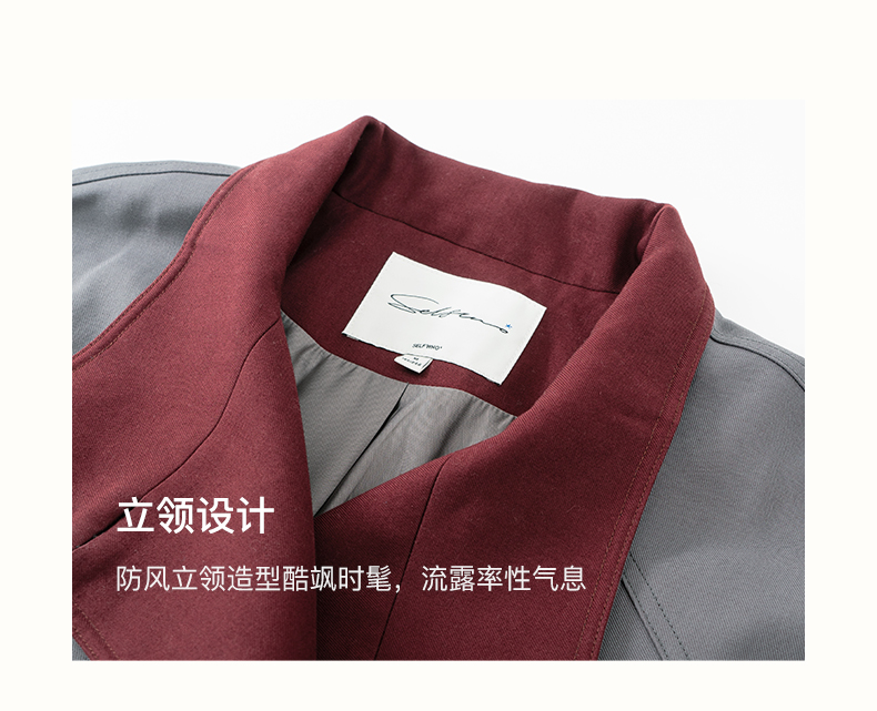 SELFWHO棉混纺双面双色风衣女2025秋季新款防风立领长款大衣外套