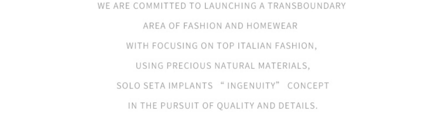 - soloseta专注于真丝织物,灵感源自意大利语,中文含义为“只做真丝”的意思。让睡衣变时尚,居家和外出瞬间切换,使其更具有出街,度假,参加宴会等功能。