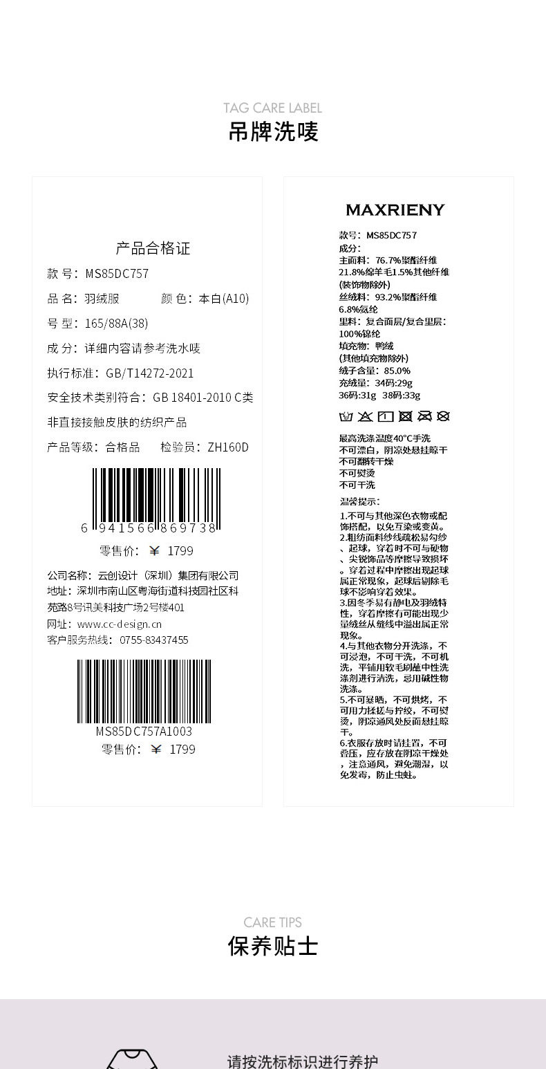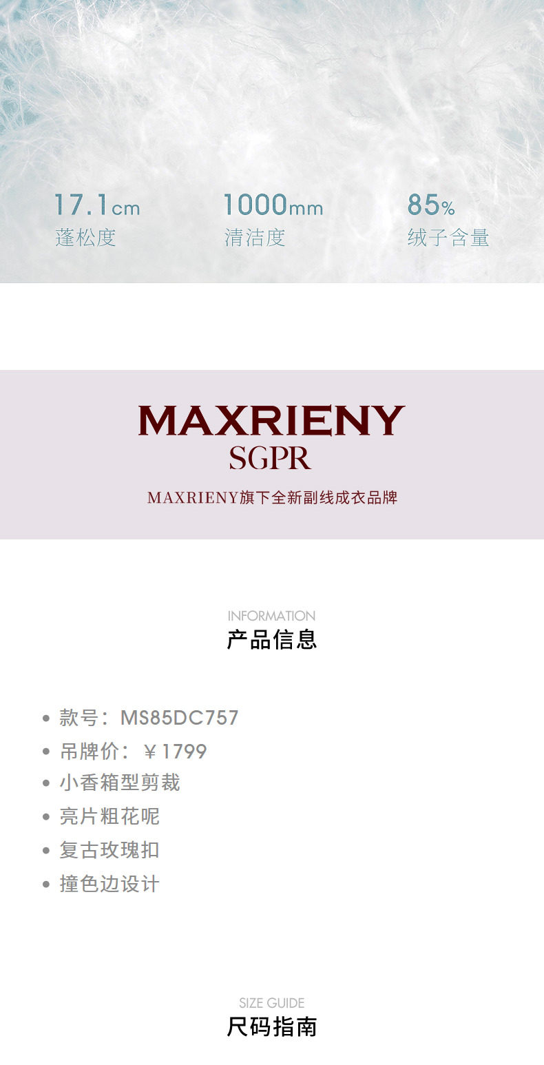 玛克门店发货:MAXRIENY精致优雅羽绒服(货号:MS85DC757)