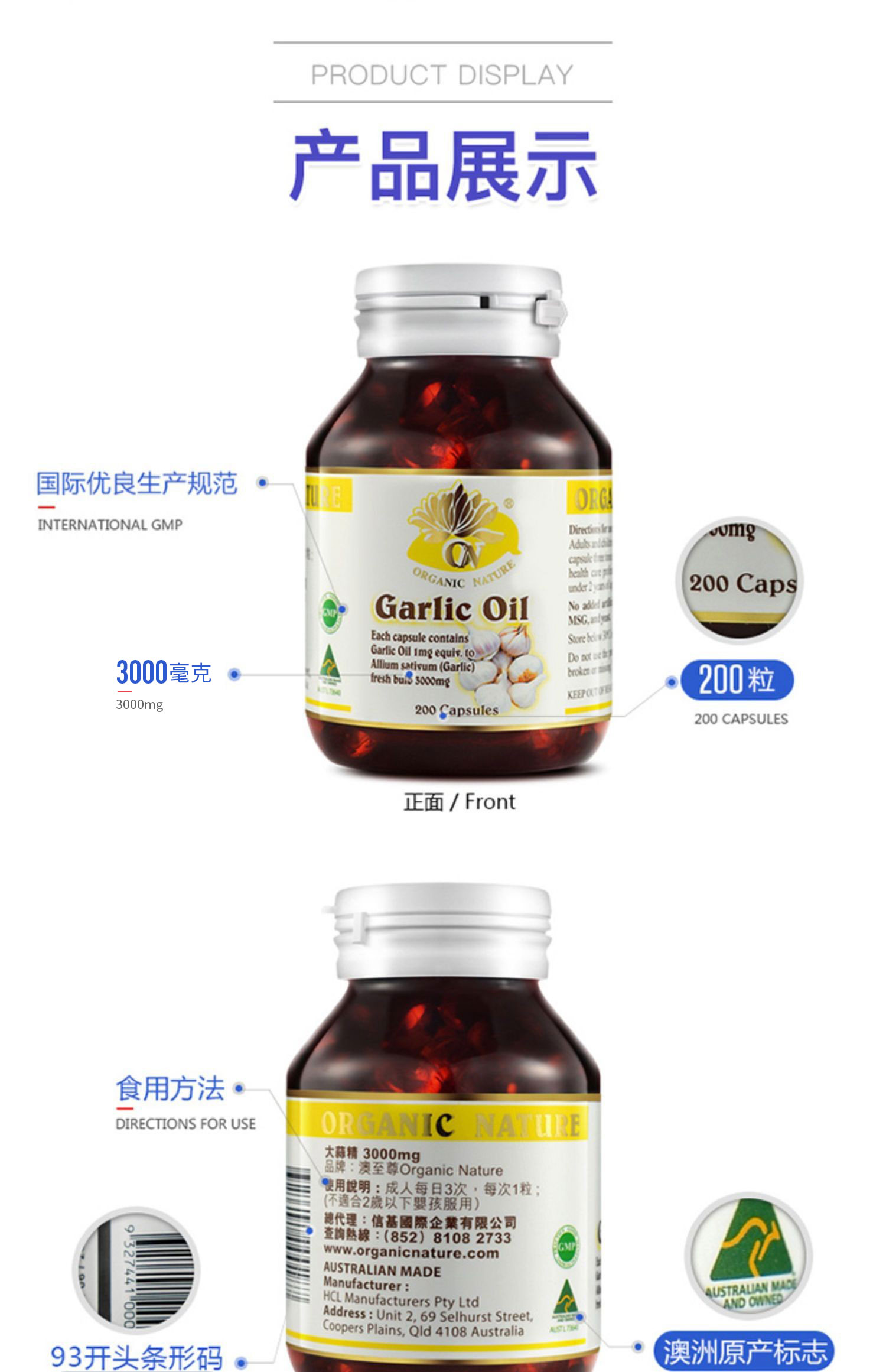 澳至尊大蒜素精油软胶囊200粒 保质期至2026-09-30