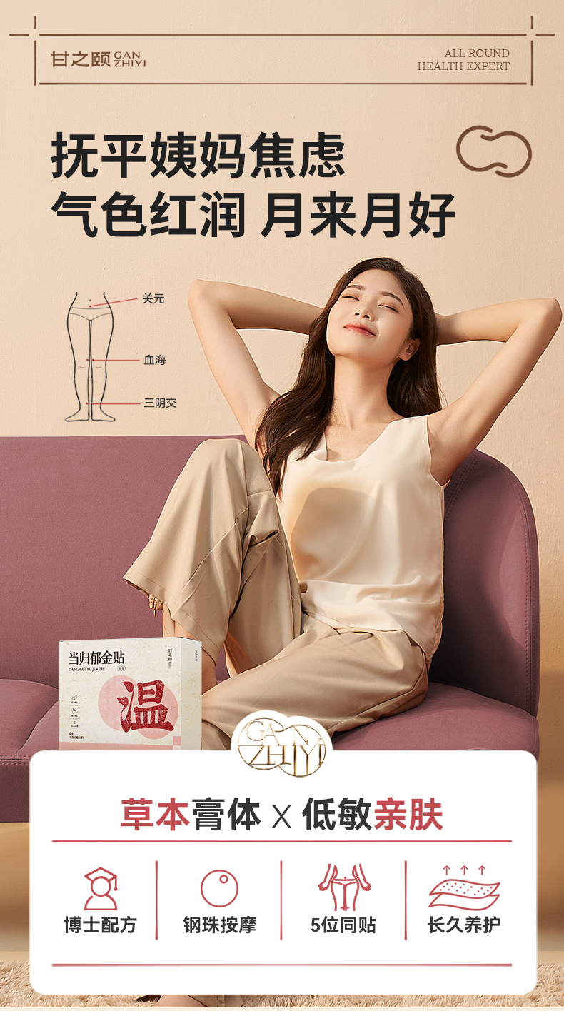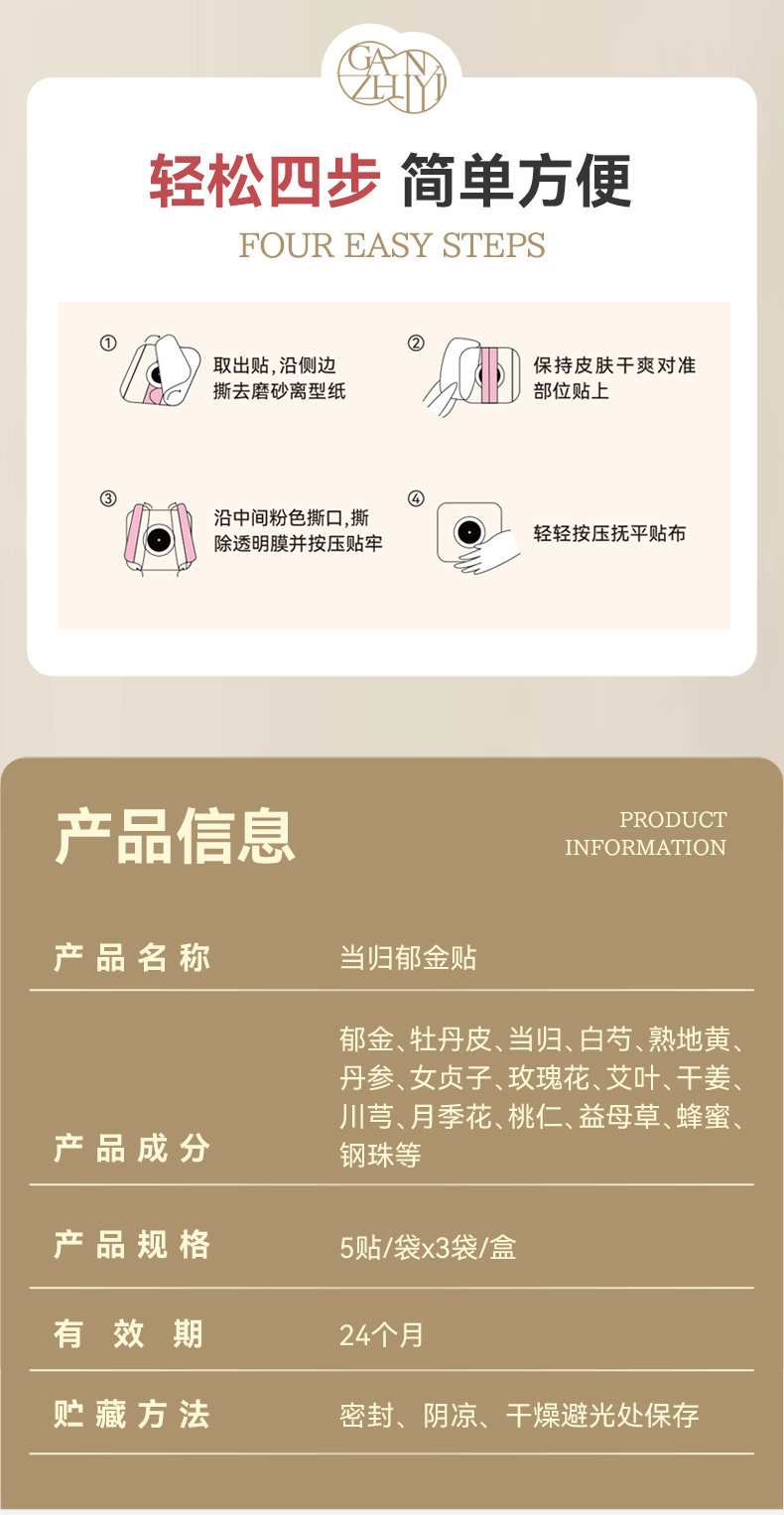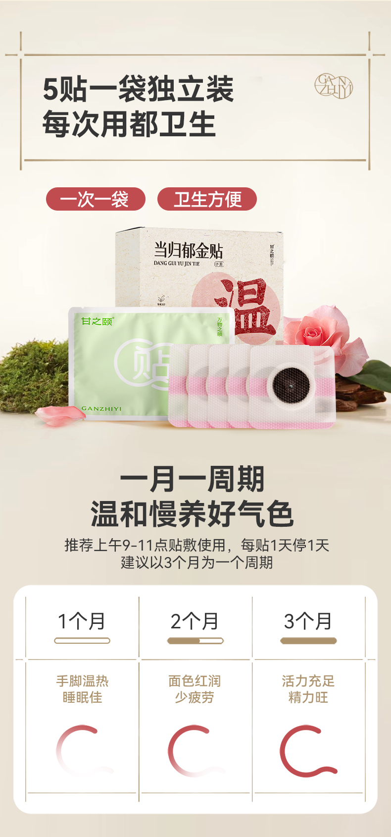 【限时秒杀,29.9/盒,2件7.5折】甘之颐 当归郁金保健贴 5贴/袋*3袋/盒 温贴经姨贴妈神器痛量经少线下同款草本贴