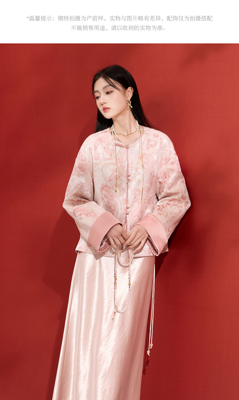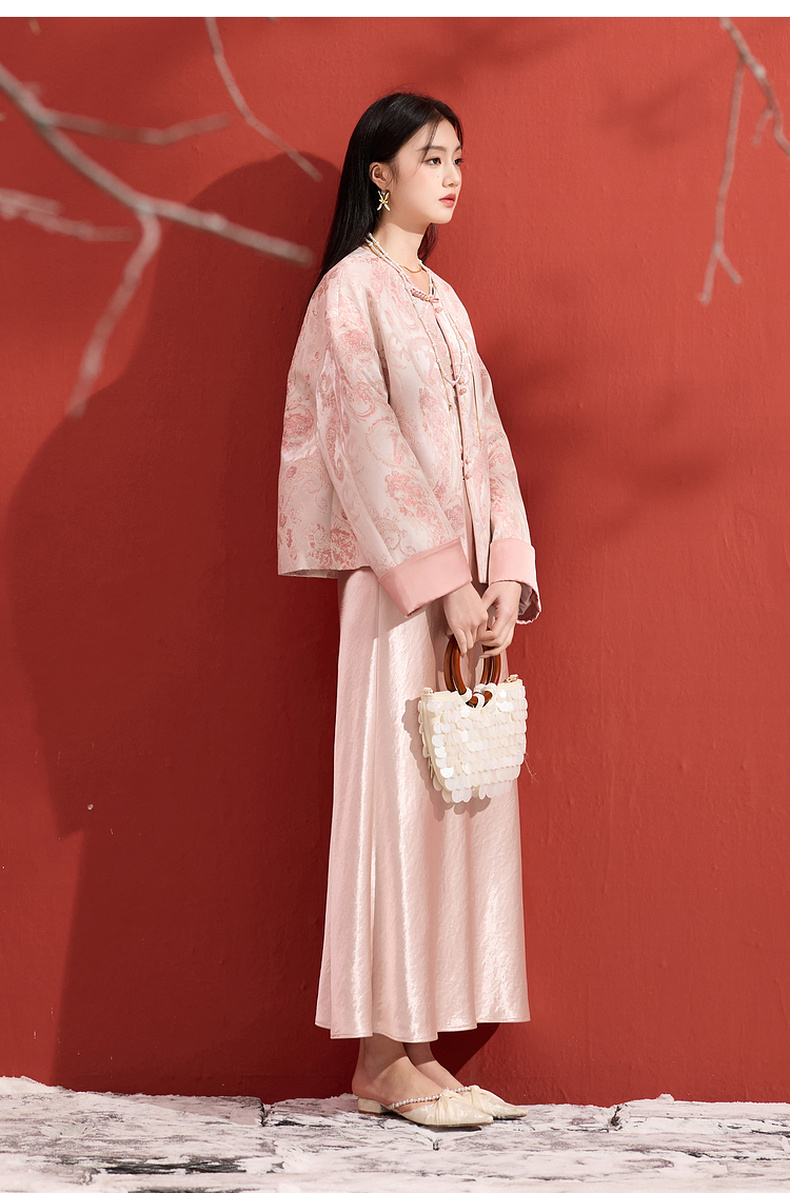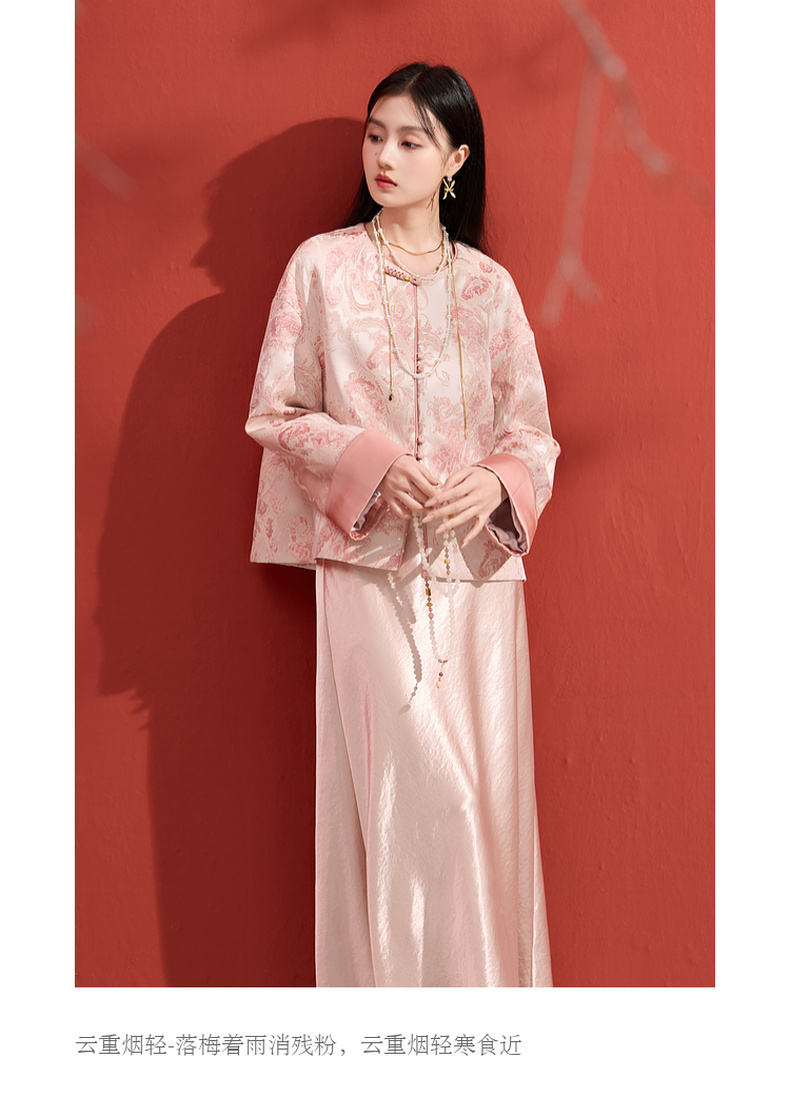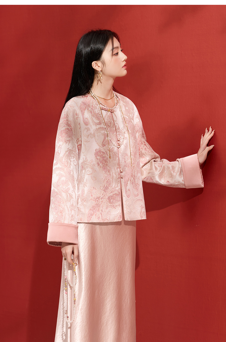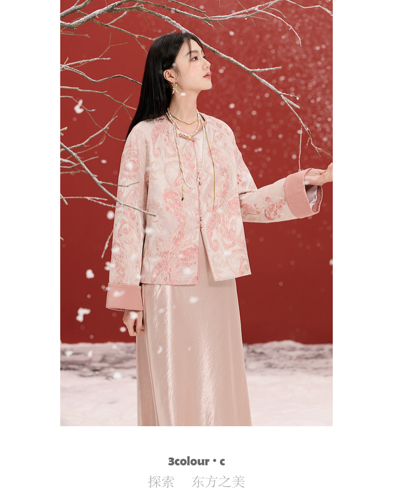 三彩【云重烟轻】2025冬季新款提花外套盘扣宽松开衫上衣C