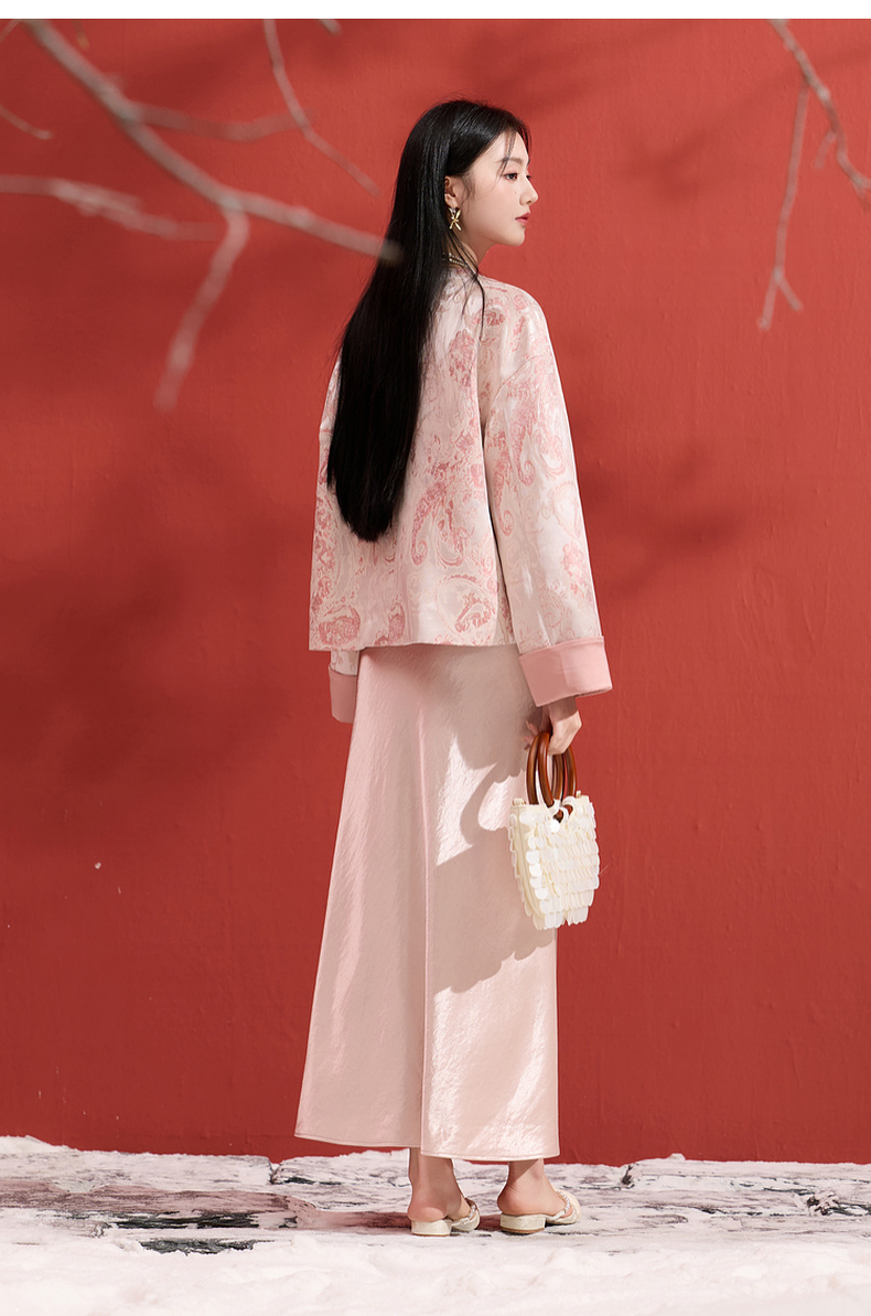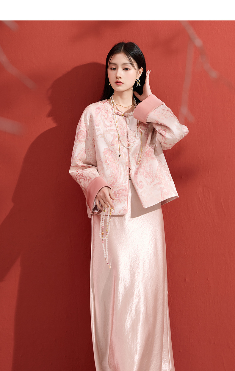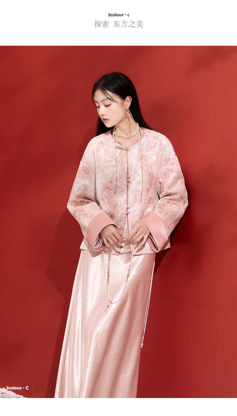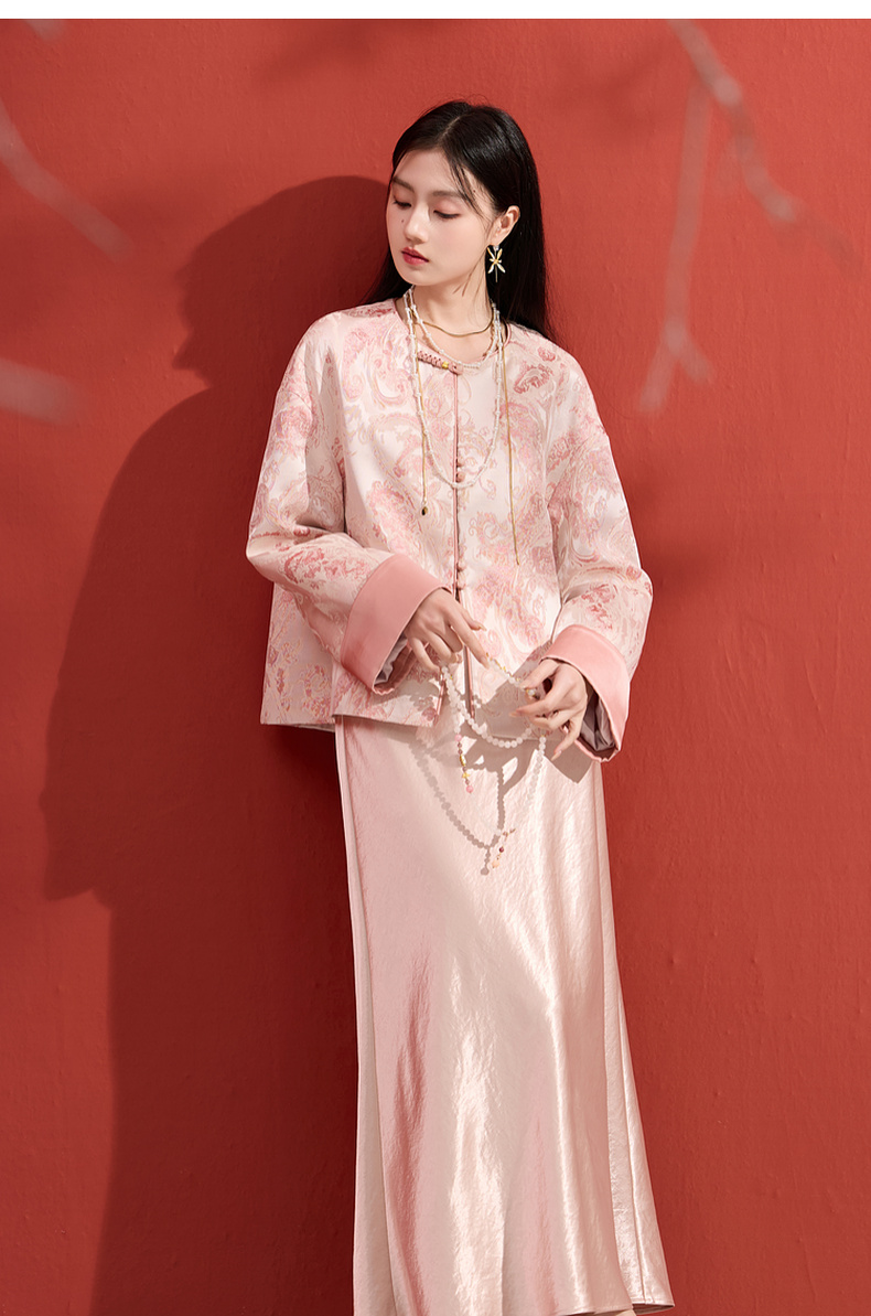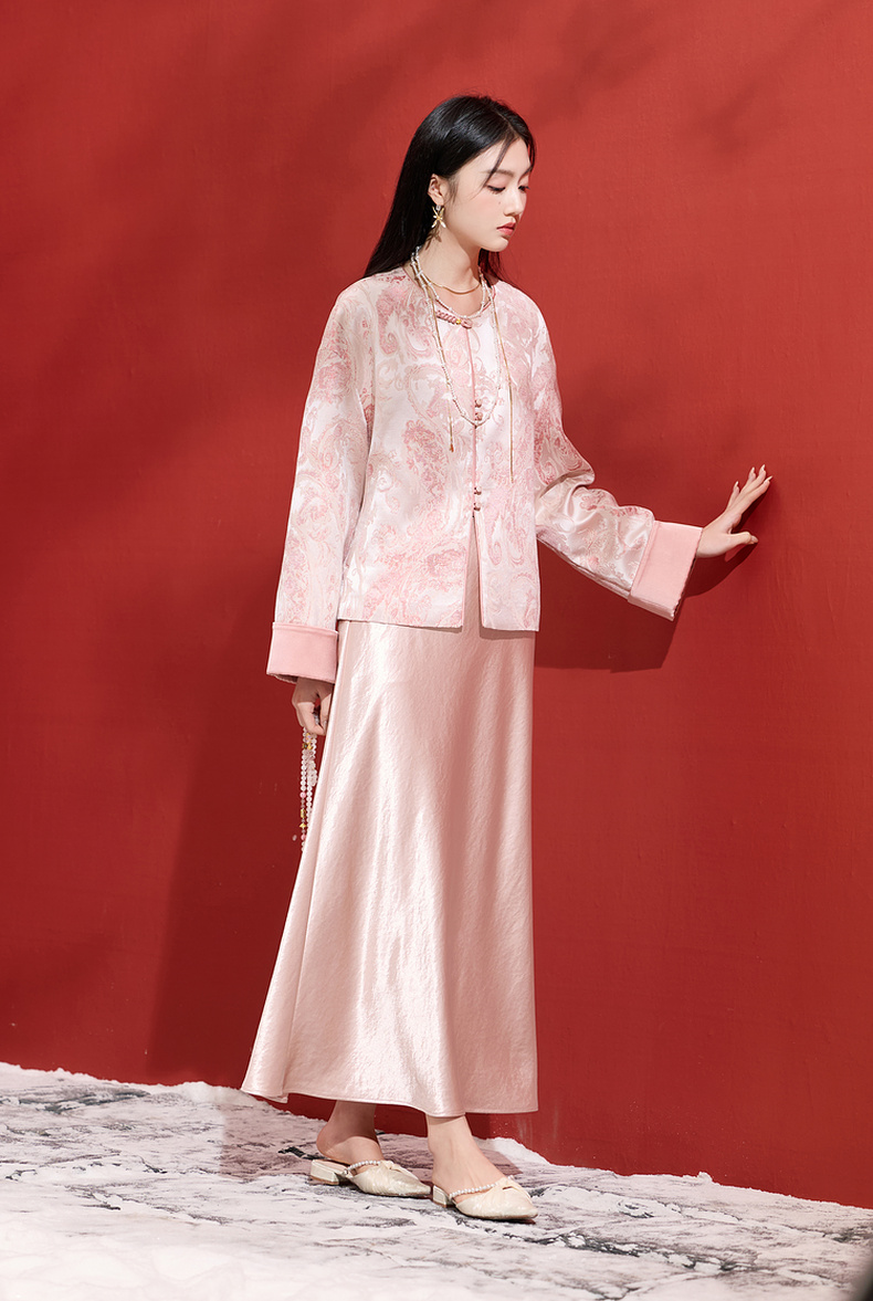 三彩【云重烟轻】2025冬季新款提花外套盘扣宽松开衫上衣C