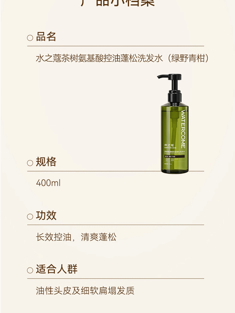 水之蔻茶树氨基酸控油蓬松洗发水(绿野青柑)400ml
