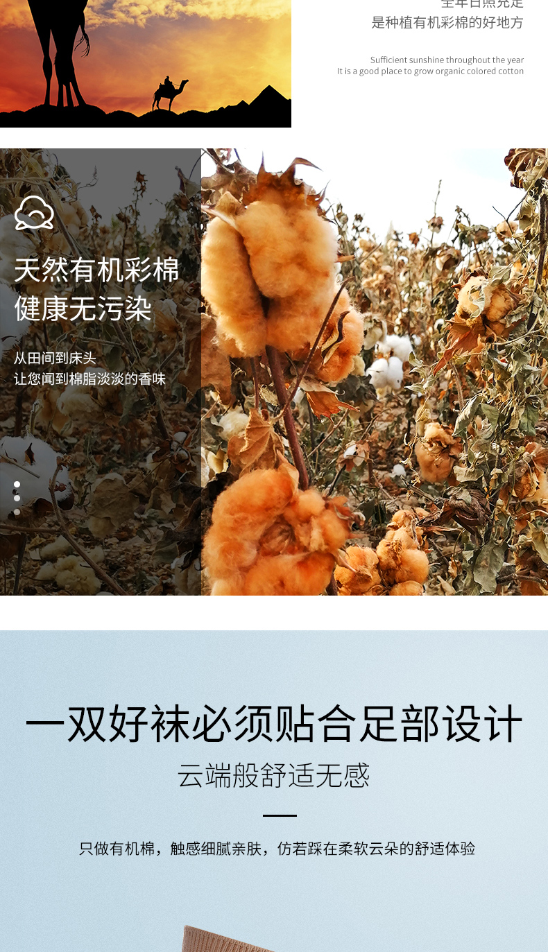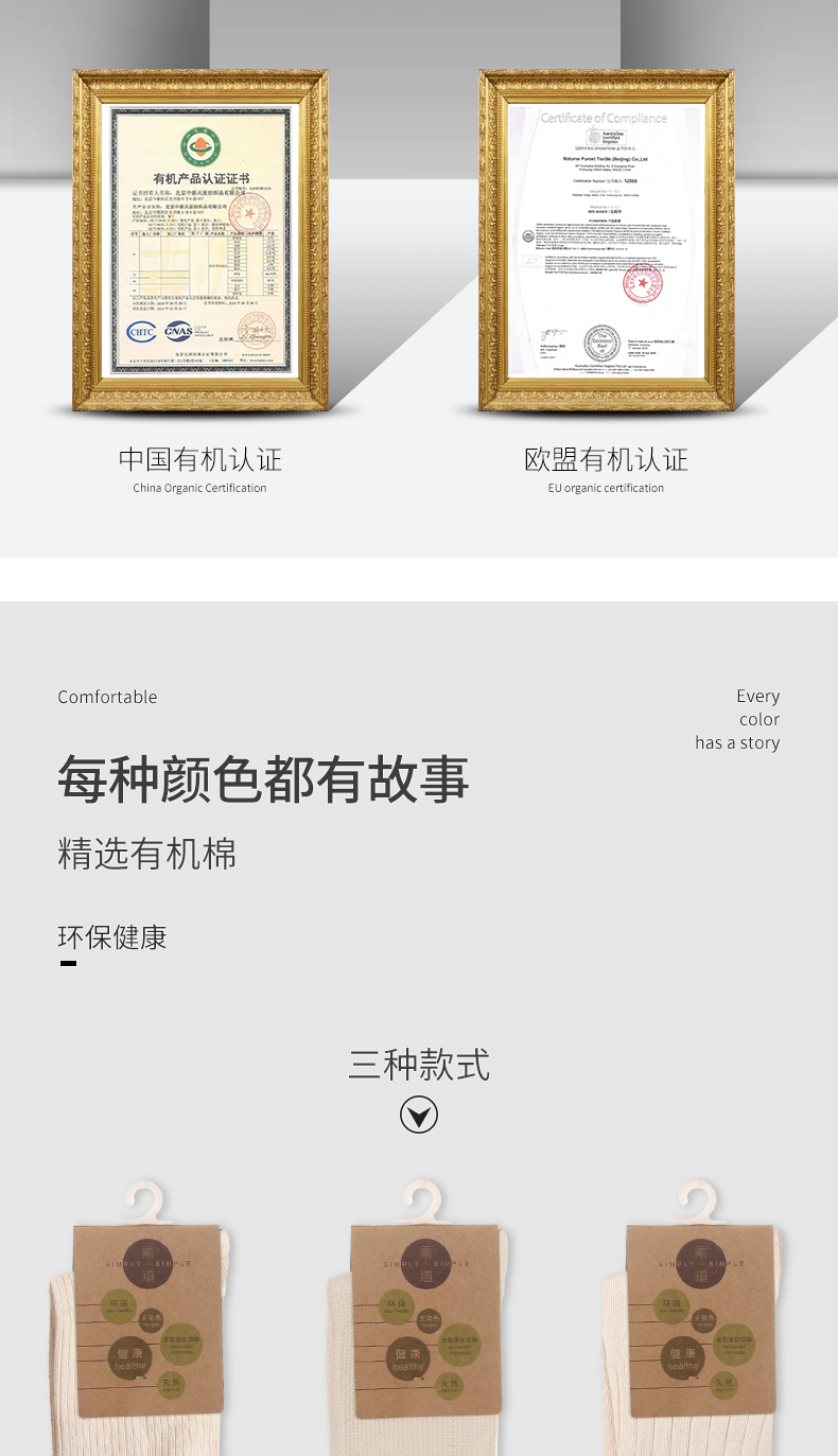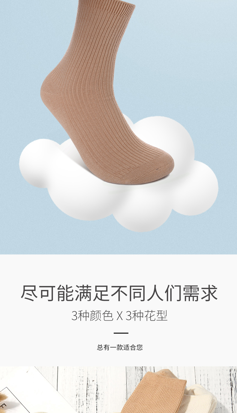 素道棉袜2-6双装 情侣经典基础袜彩棉有机种植 棉质男女中筒袜