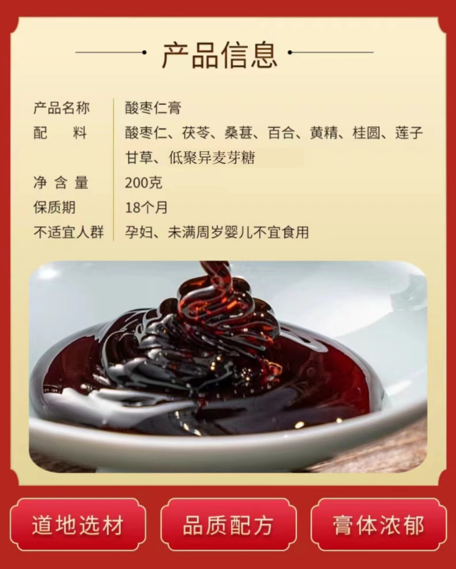 【注意事项】孕妇、感冒、腹泻人群,14周岁及以下人群不建议喝哦,因为酸枣仁膏都是益补类的配料,小朋友喝容易上火,所以不建议给小朋友喝