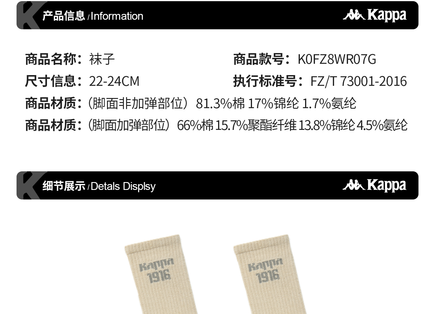 Kappa 新款舒适高筒袜 K0FZ8WR07G