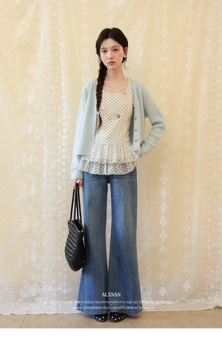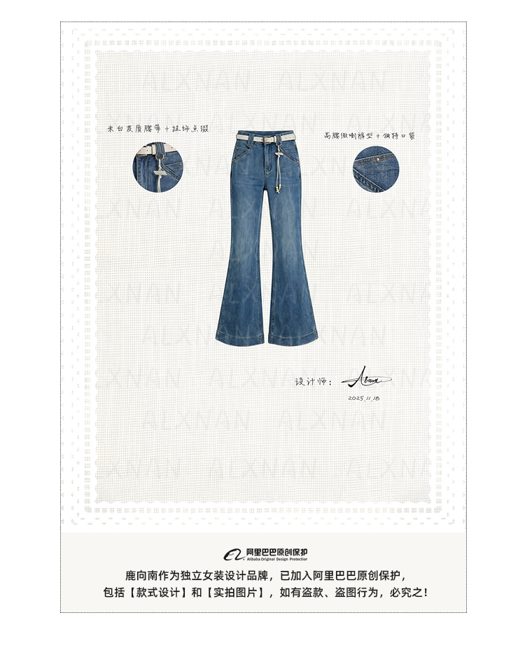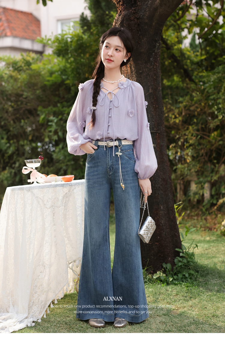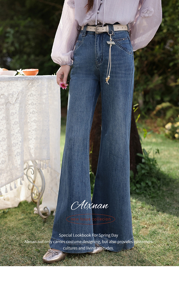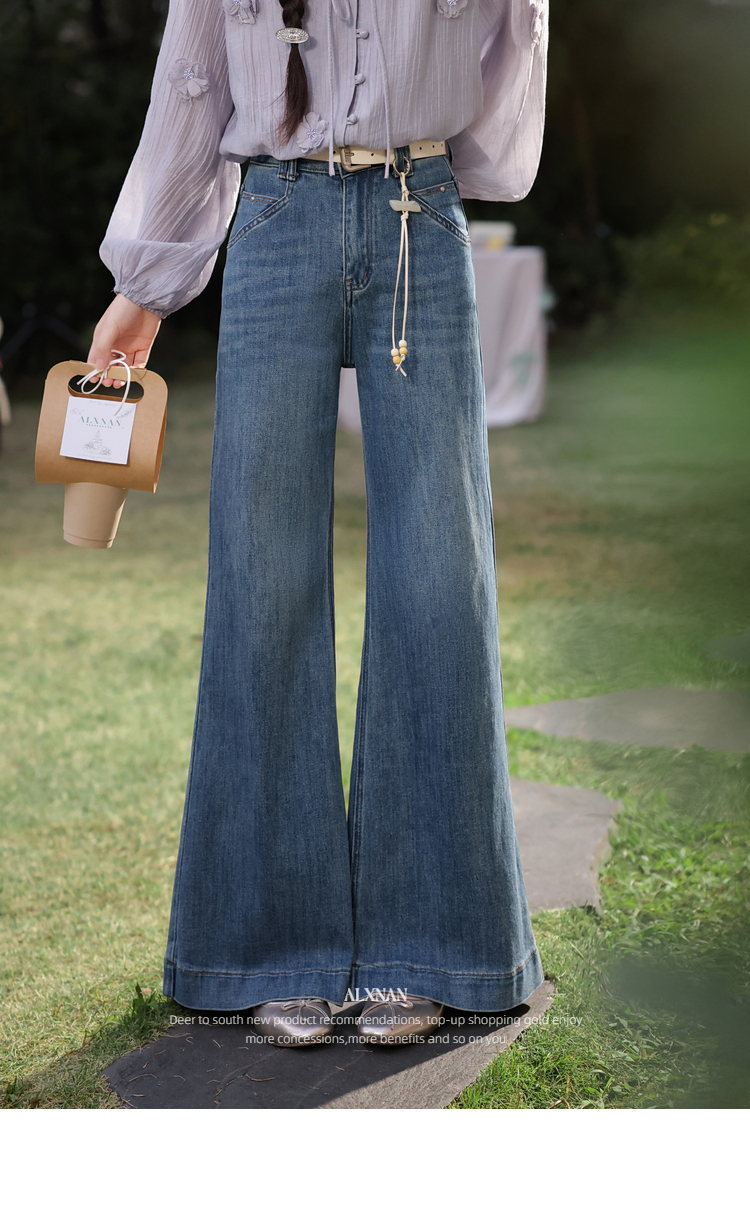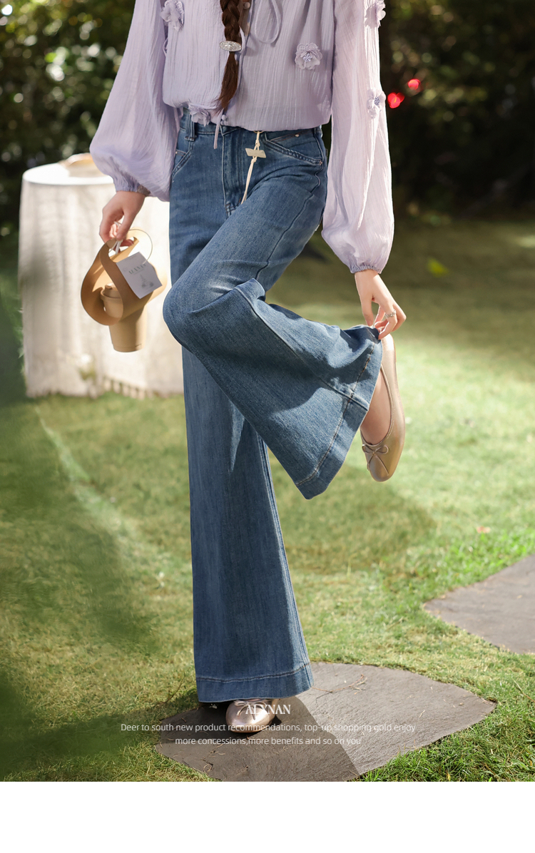 鹿向南「叙旧蓝调」蓝色牛仔裤春季款时尚百搭紧身微喇修身长裤女
