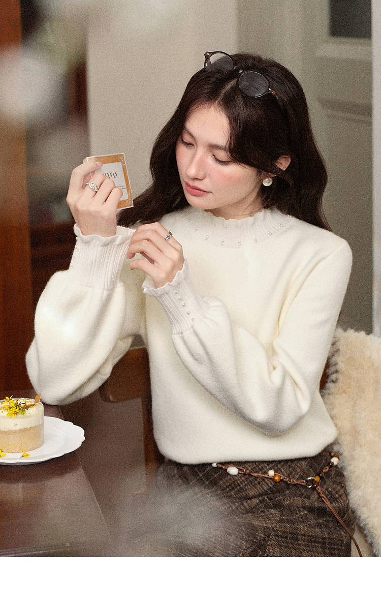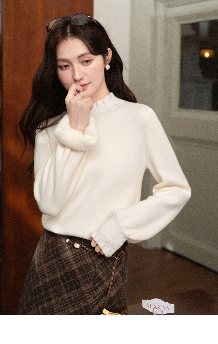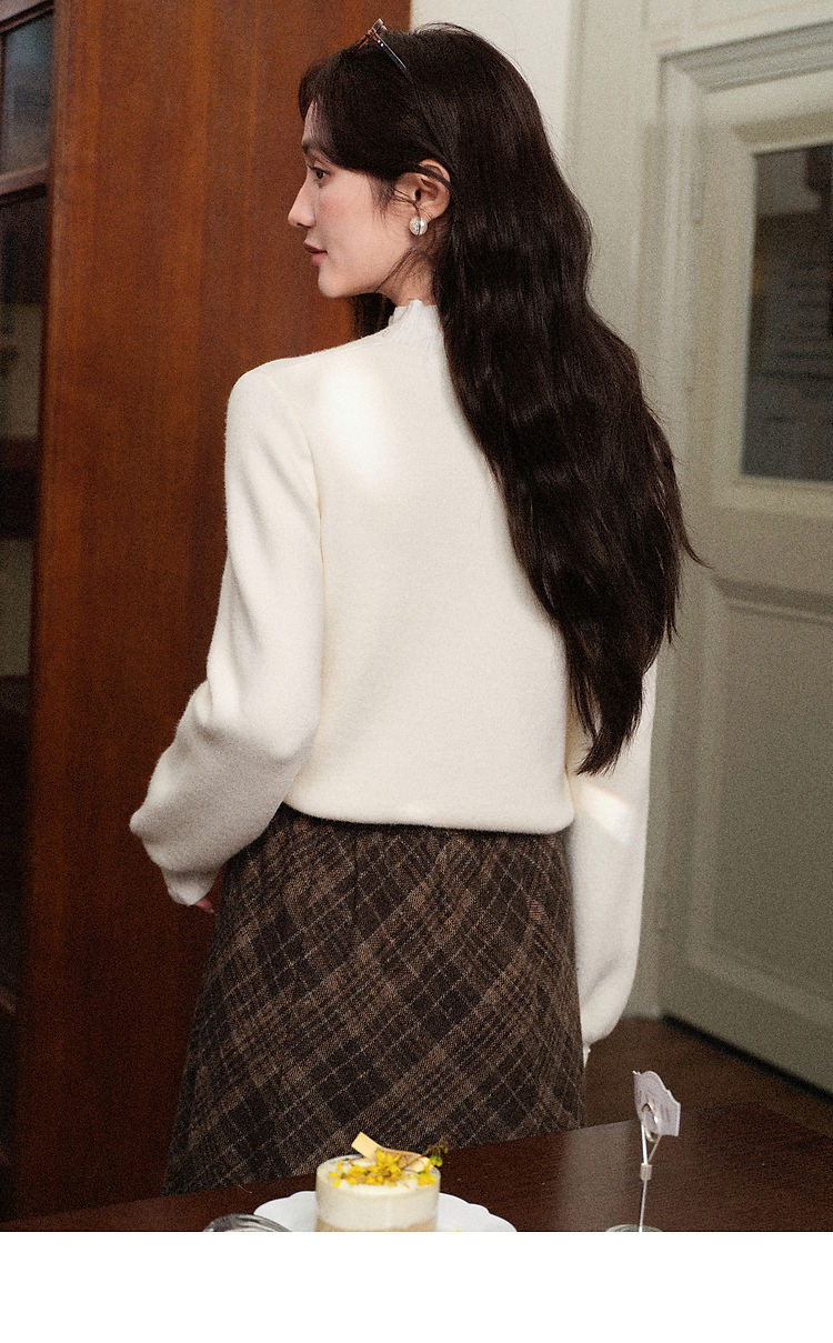 鹿向南「软棉柔暖」半高领加绒长袖针织衫女冬宽松打底内搭上衣