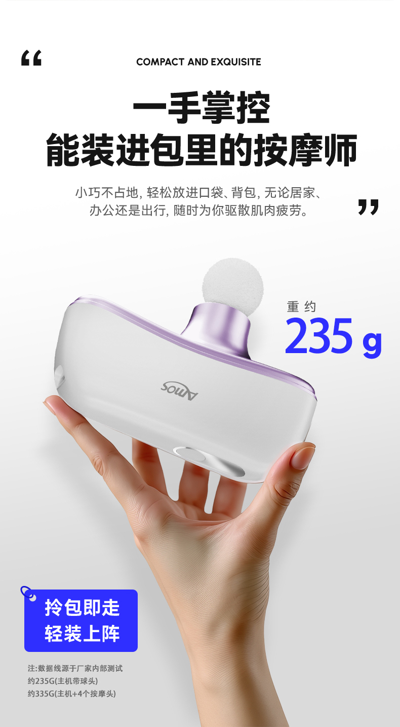 【掌上按摩师】亚摩斯 迷你筋膜枪 1个 10档科学变速
