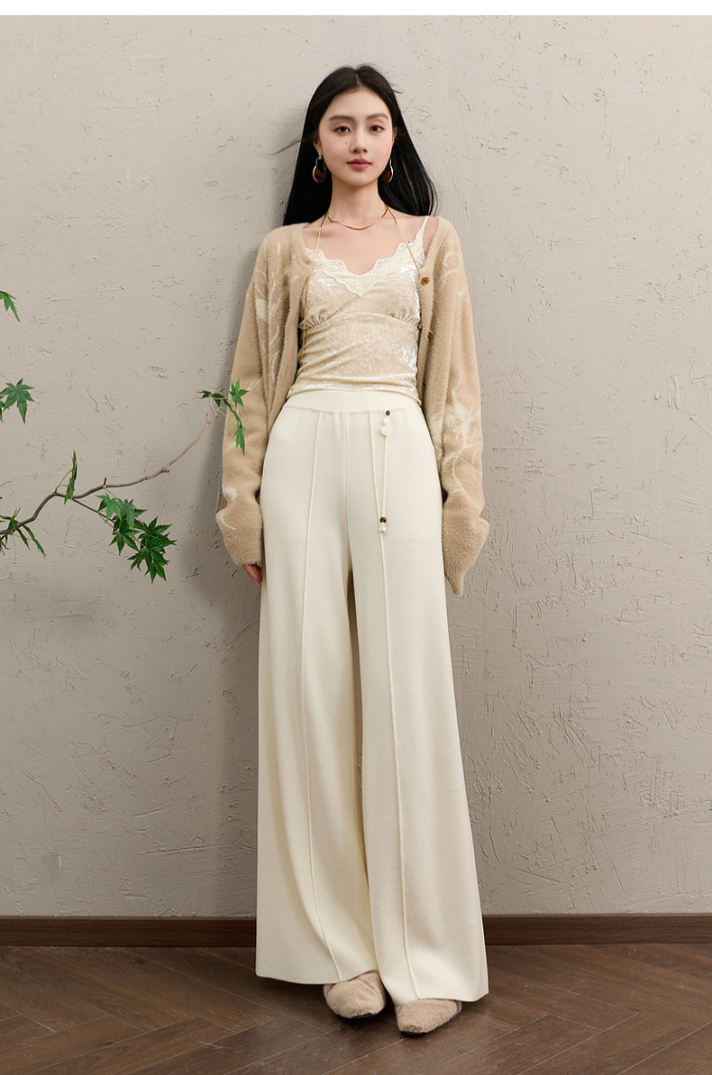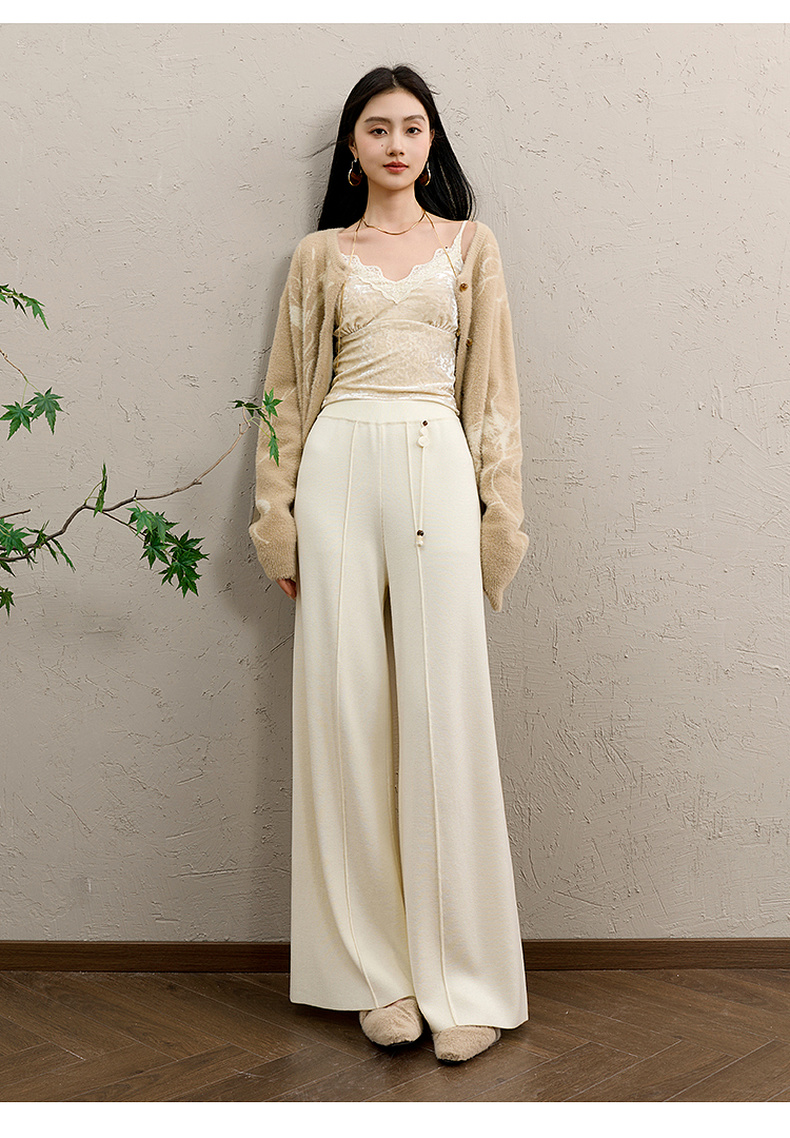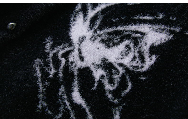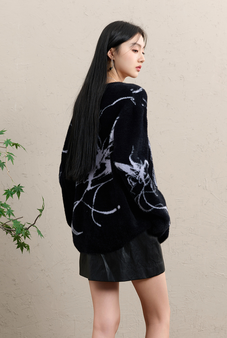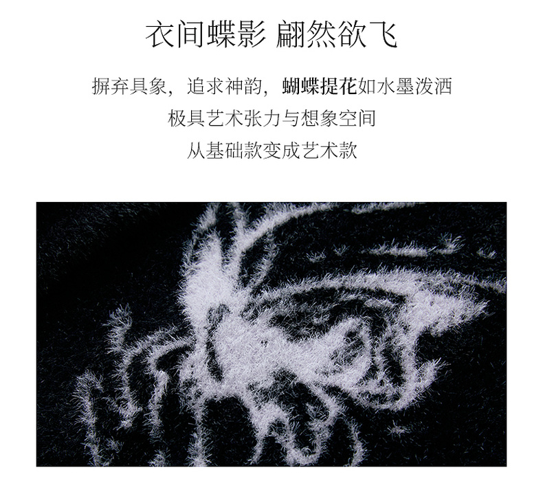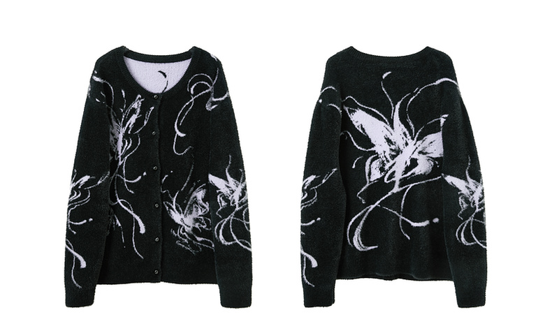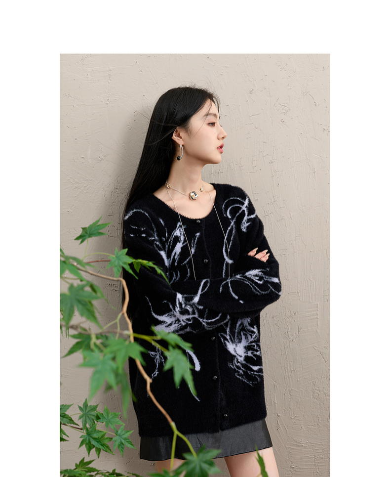 三彩【流萤飞舞】2025冬季新款仿貂毛提花针织衫圆领开衫宽松C