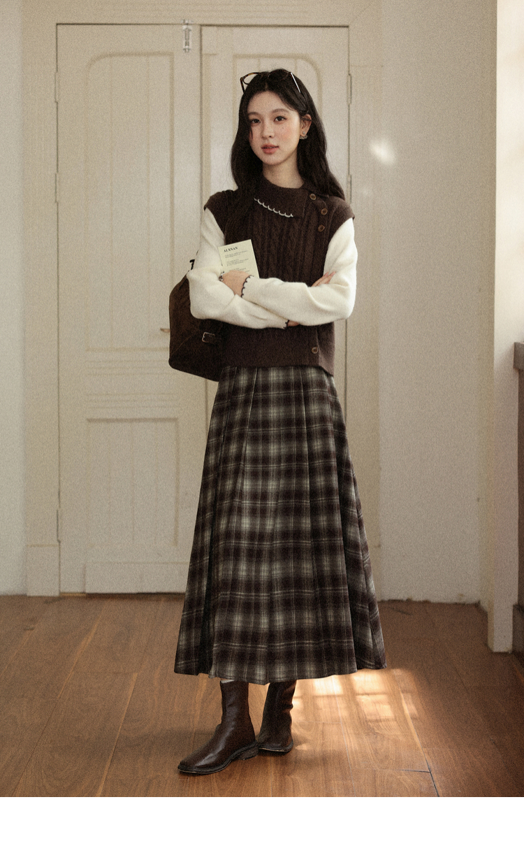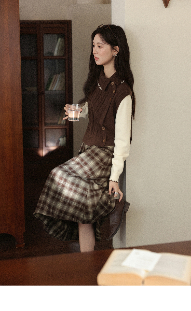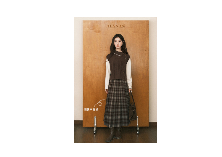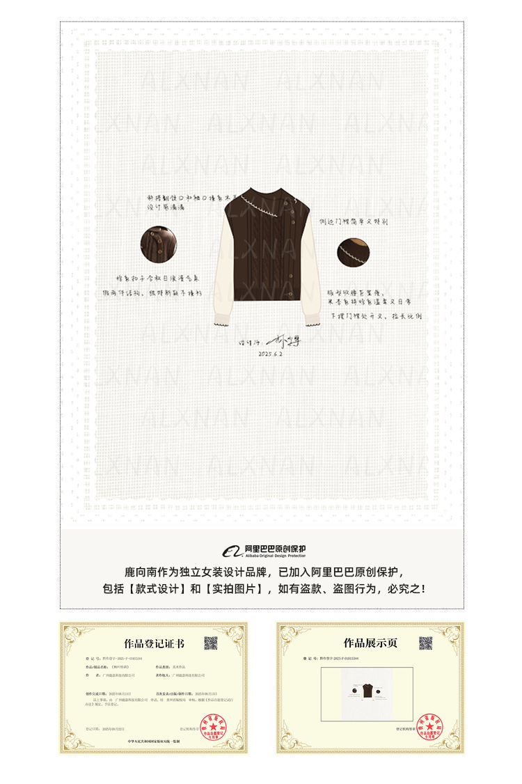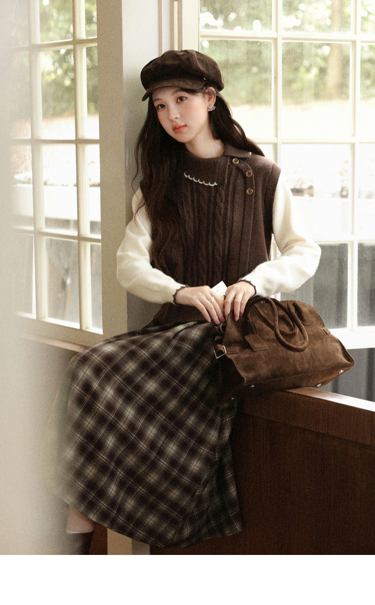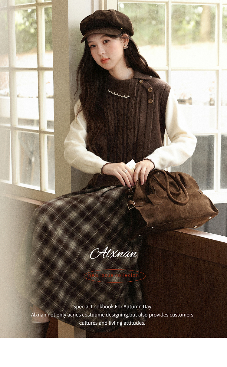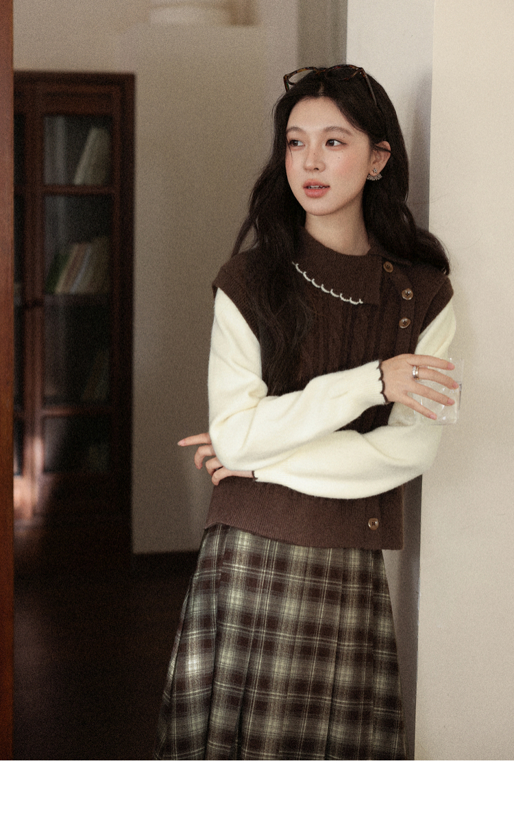 鹿向南「枫叶特调」美拉德咖色假两件毛衣女秋设计感法式独特上衣