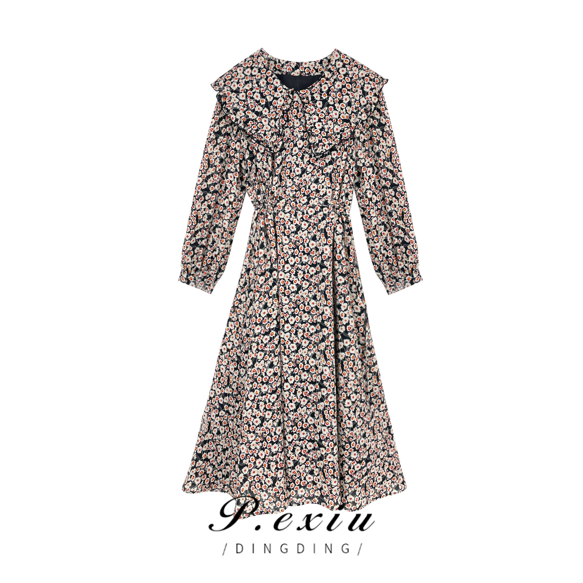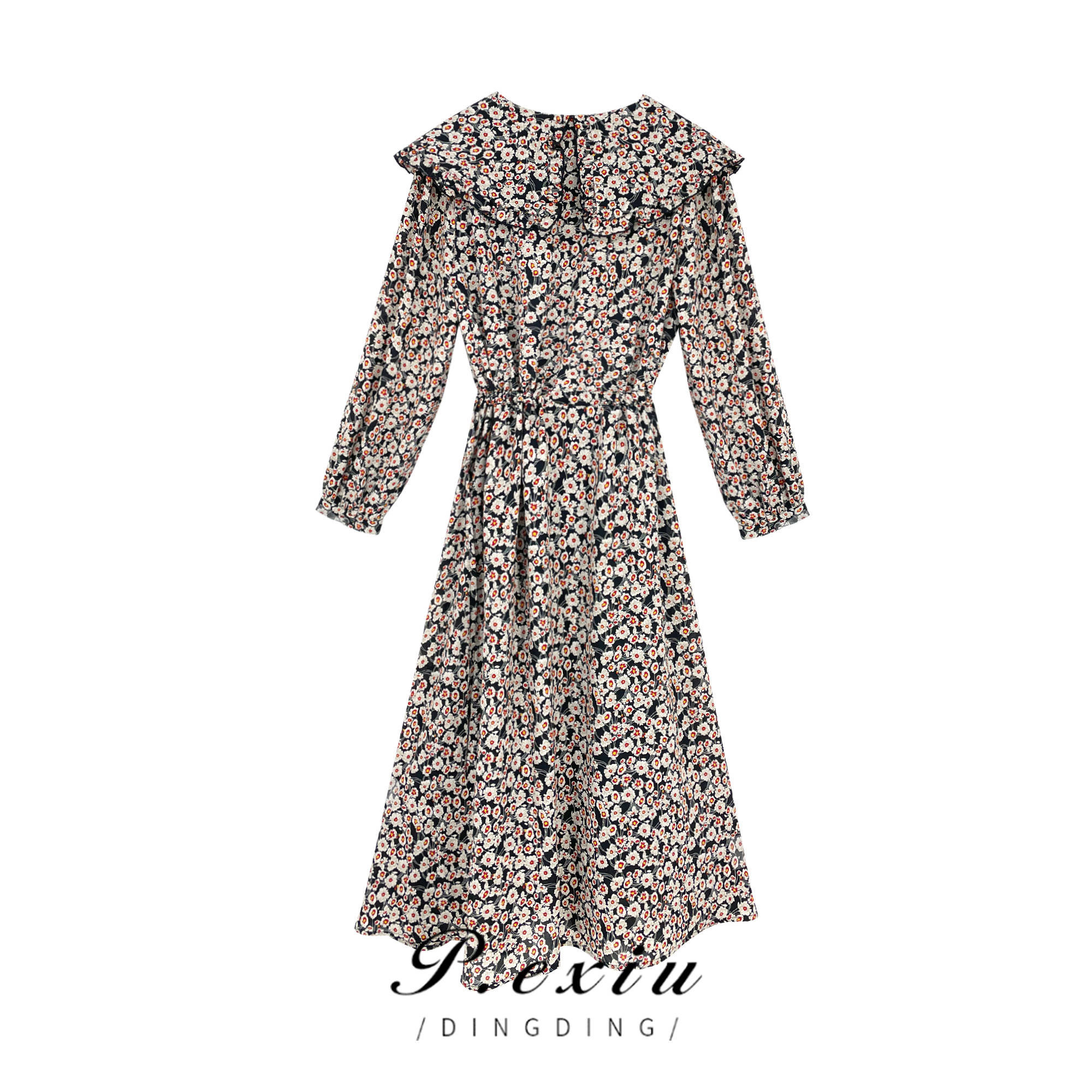 04-6潘依绣丁丁宠粉【歌剧院】春夏减龄圆领碎花长袖连衣裙 W-61242