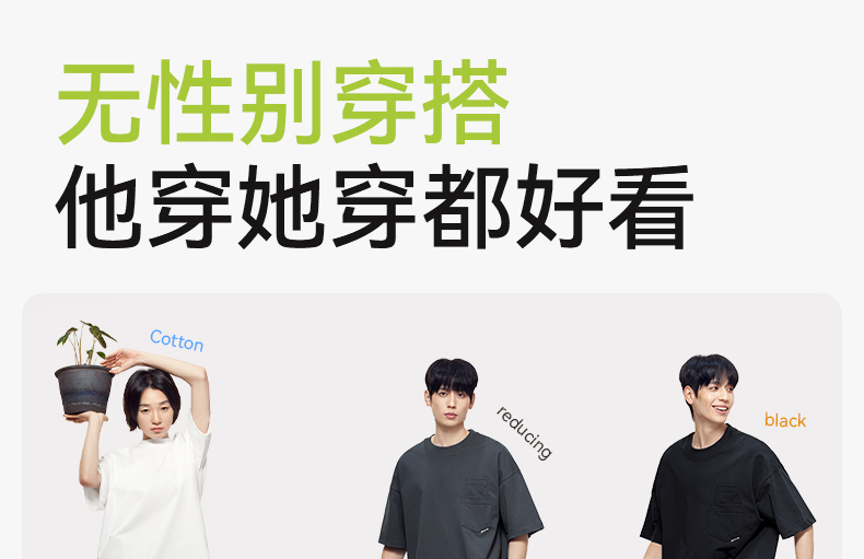 「棉的美学」300G纯棉t恤女落肩宽松港风休闲短袖女中性风多色可选