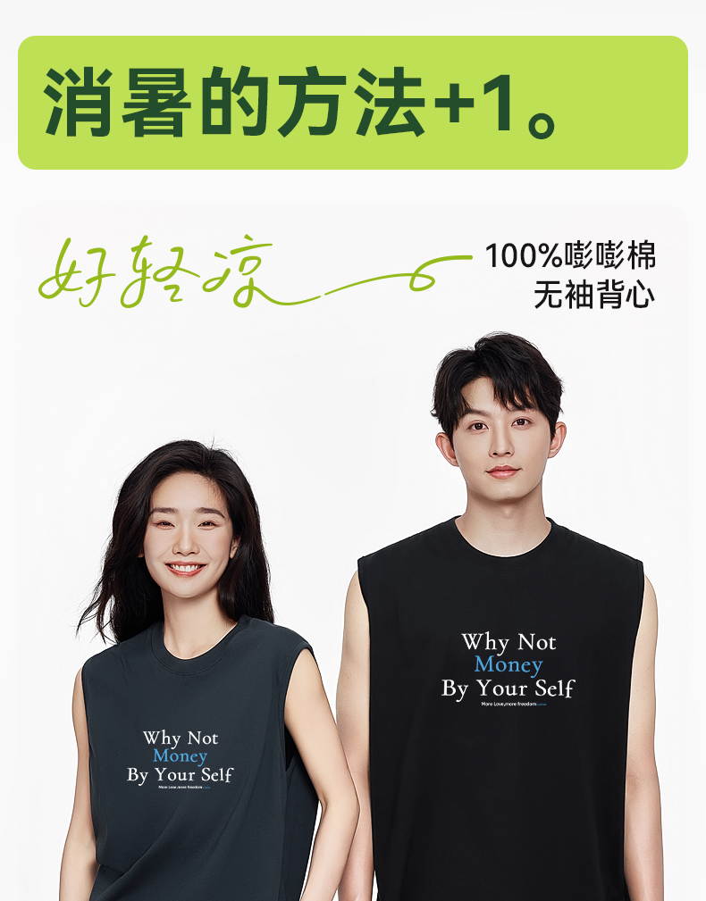 「棉的美学」纯棉中性无袖背心夏季设计感个性印花运动透气T恤
