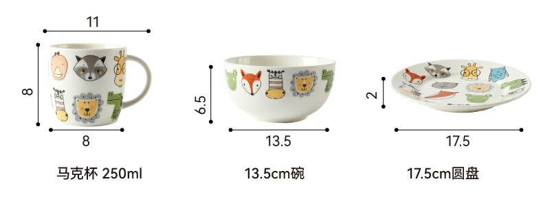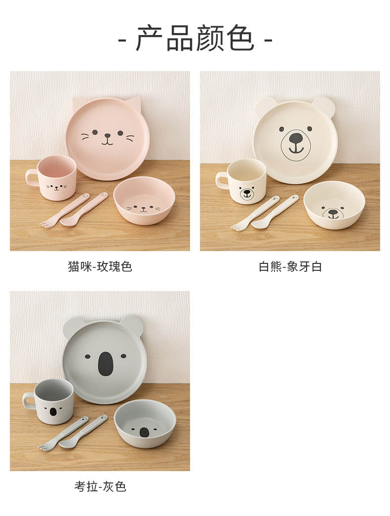 卡通饭碗杯子动物园田园儿童餐具5件套