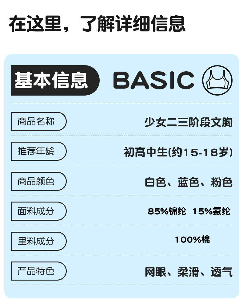 【69/2件】HANPY杭拍 少女内衣2300 适合第三阶段 细腻亲肤 柔软轻薄 四向弹力拉伸