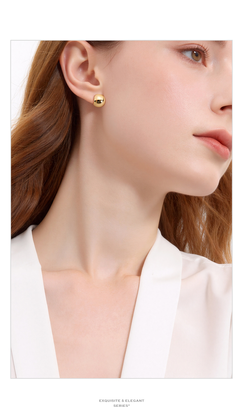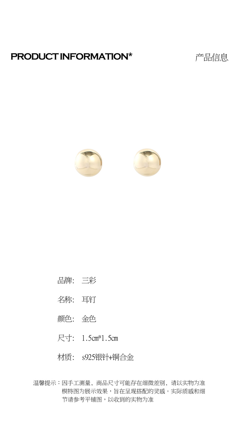 三彩2026新款极简风镀金豆豆耳钉S925银针亮面小巧基础款百搭