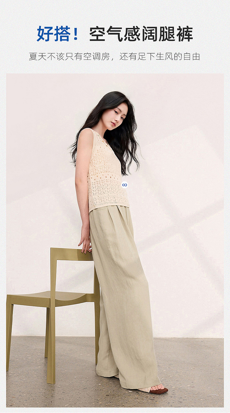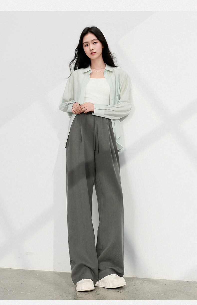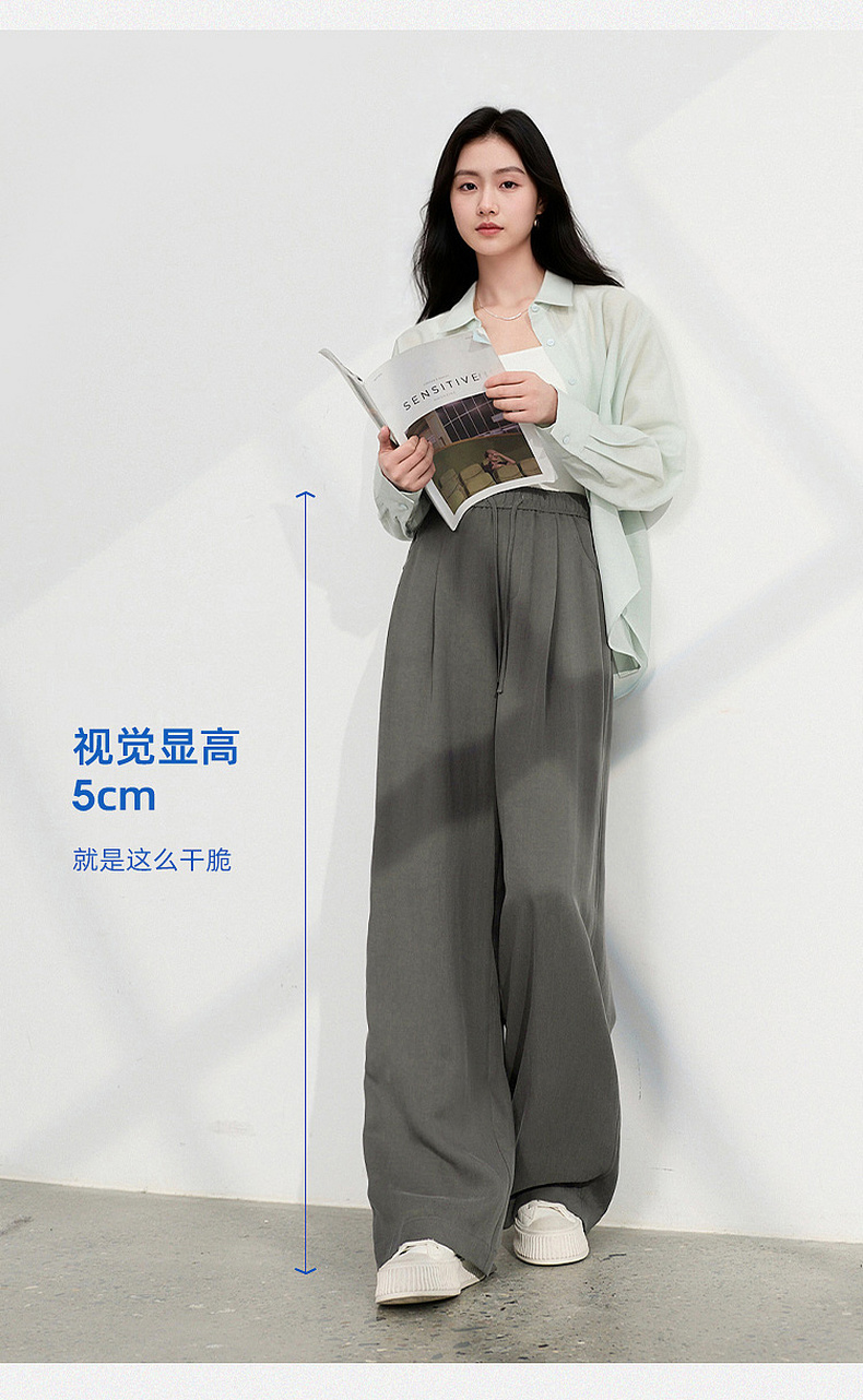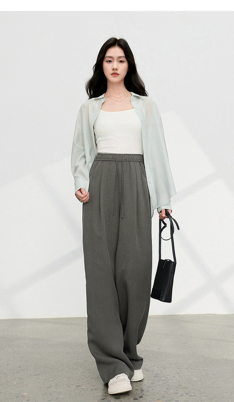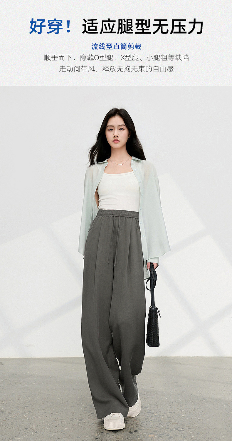 【莱赛尔】三彩2026夏季新款休闲裤高腰宽松直筒裤长裤垂感Z