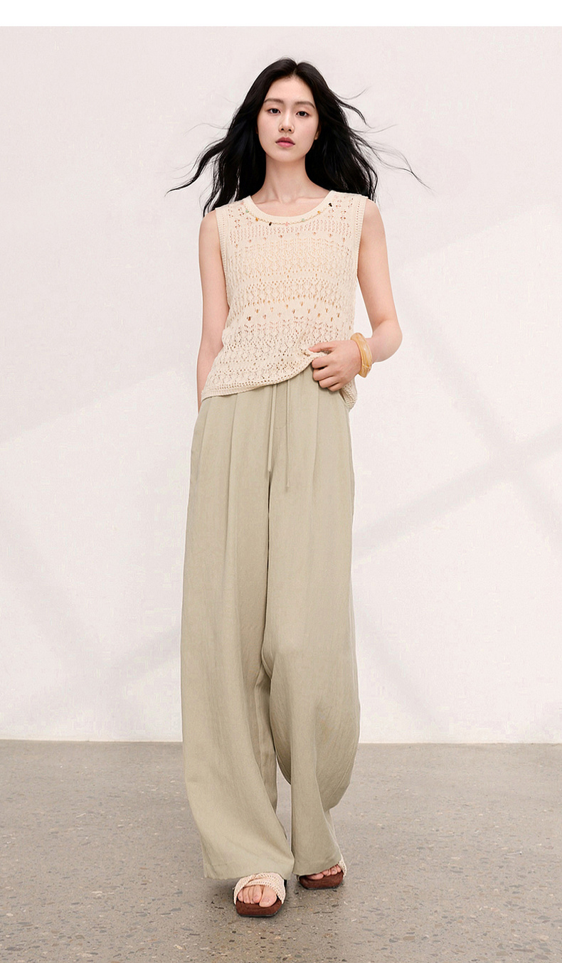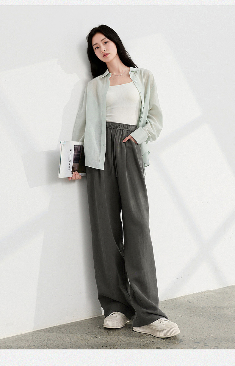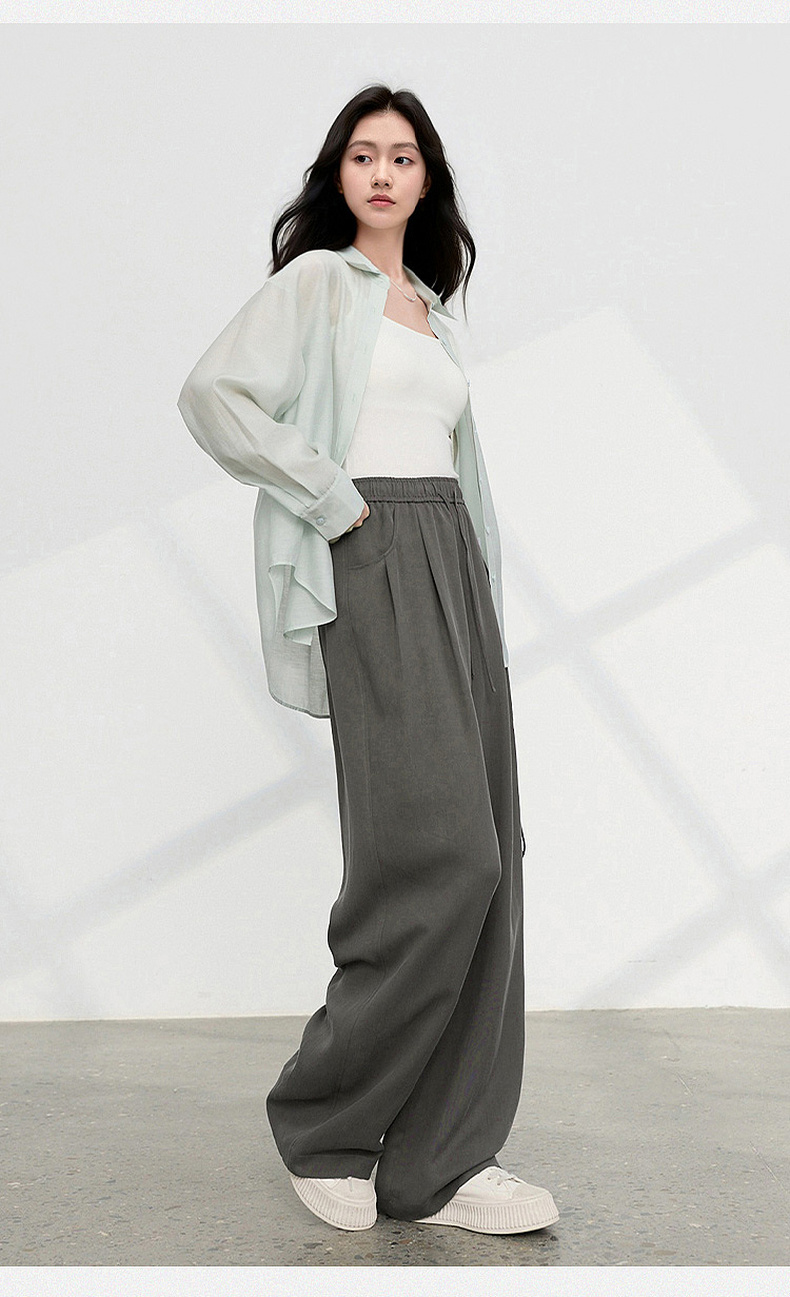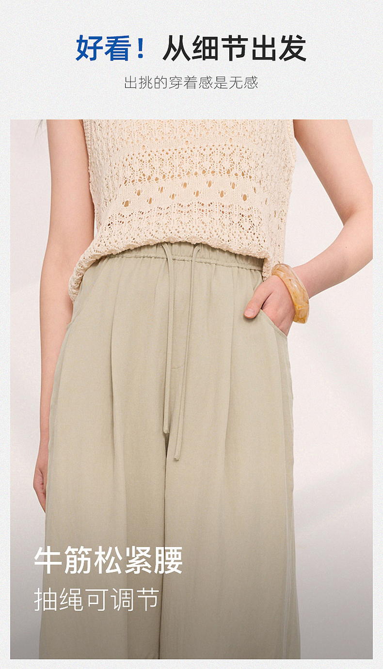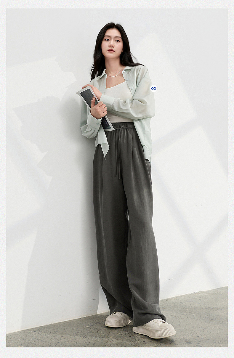 【莱赛尔】三彩2026夏季新款休闲裤高腰宽松直筒裤长裤垂感Z