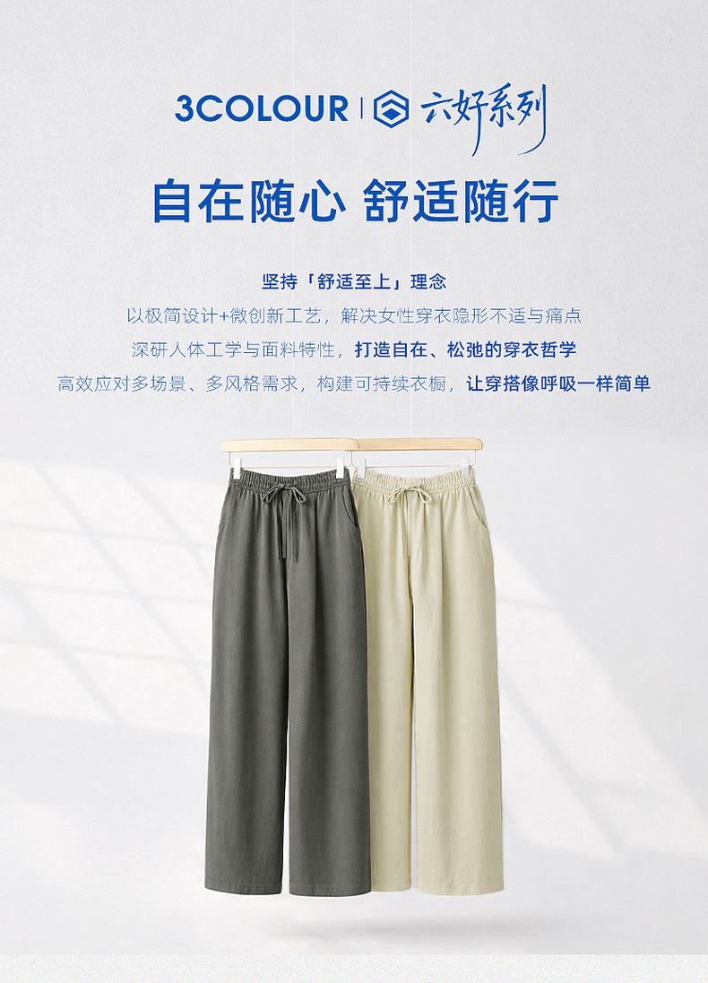 - 3COLOUR,一直致力于探索自我与时尚审美,用穿衣哲学折射生活主张,在流动中探寻恒久。