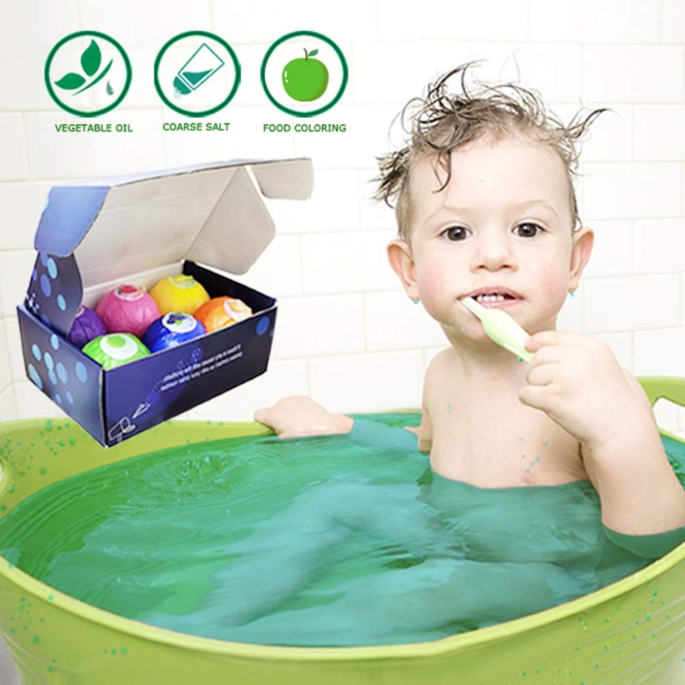 安全沐浴盐球 ---- 沐浴球不含沐浴露,也不会产生嘶嘶声。孩子使用时,您无需担心它会刺伤他们的眼睛,也不必担心宝宝误以为泡泡是棉花糖而误食。我们设计了6种无刺激性果香,淡淡的果味能保护孩子的嗅觉。这些香味包括草莓、蓝莓、葡萄、橙子、苹果和柠檬。