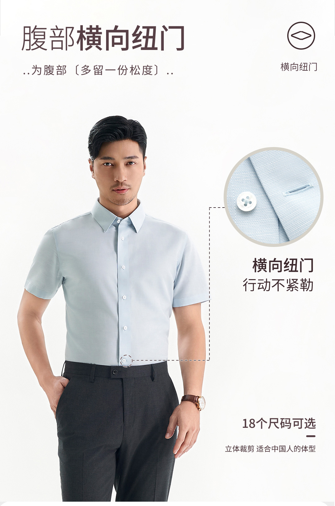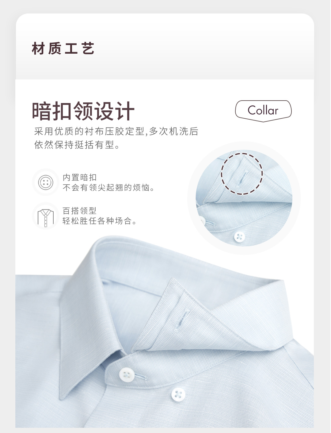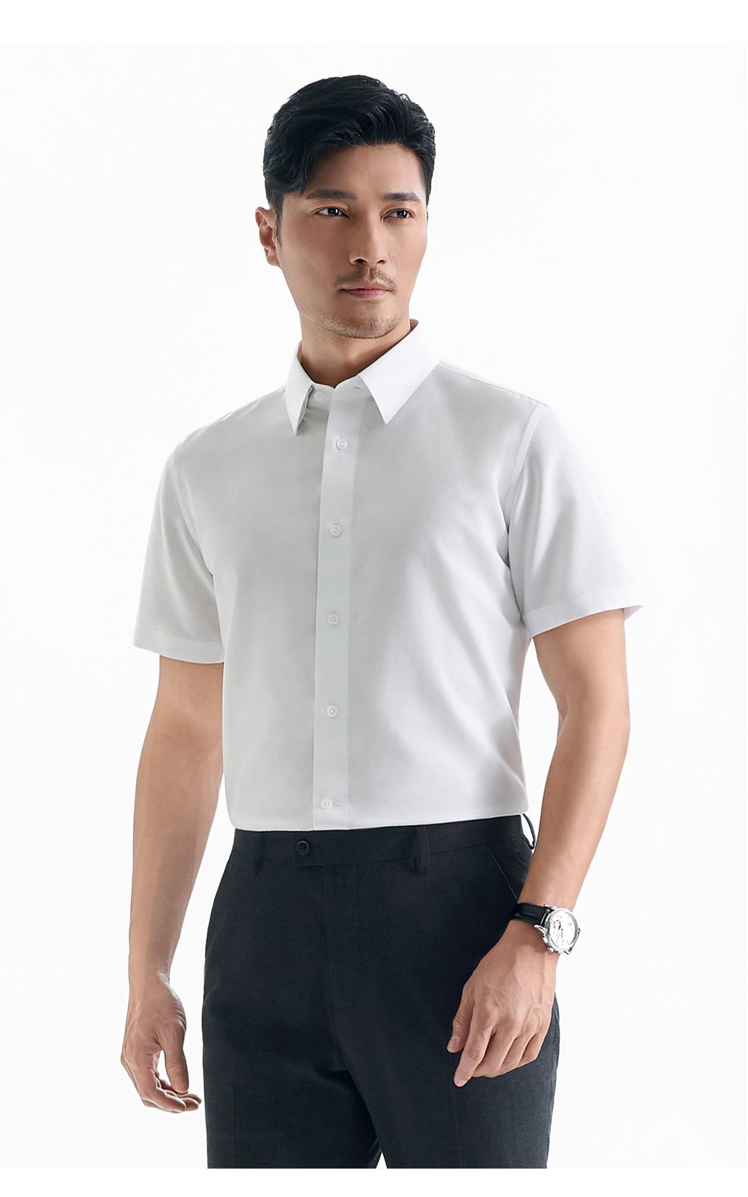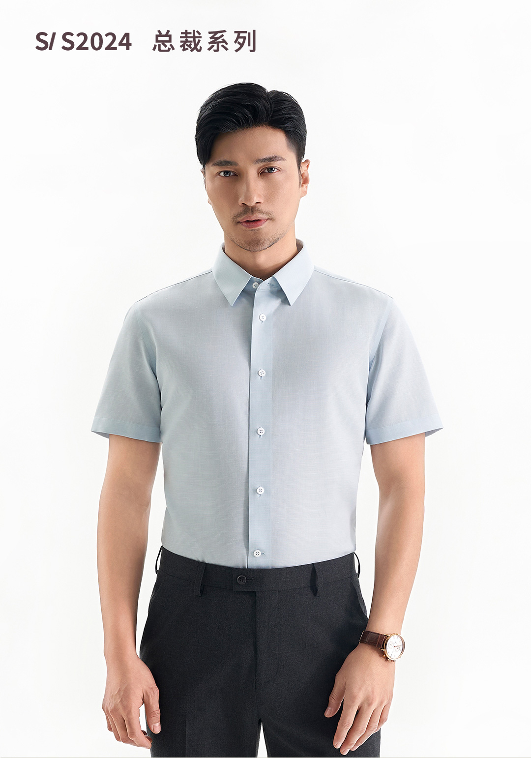 [总裁八号]暗扣领莱赛尔麻透气凉爽短袖白衬衫245P0F615S