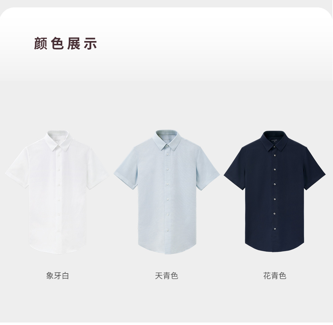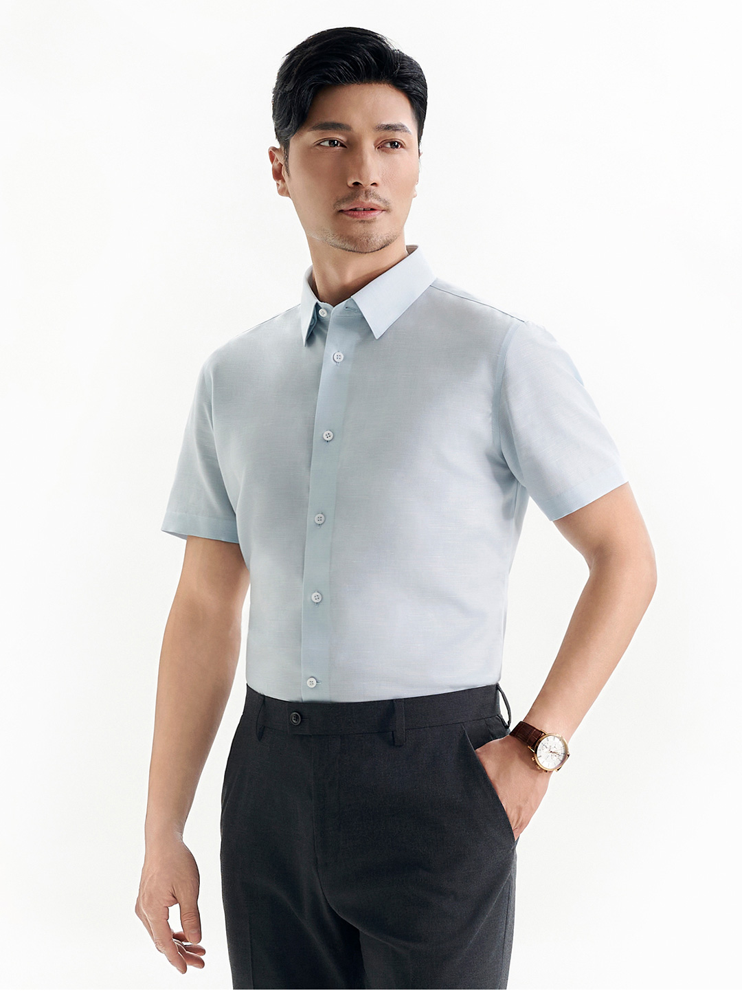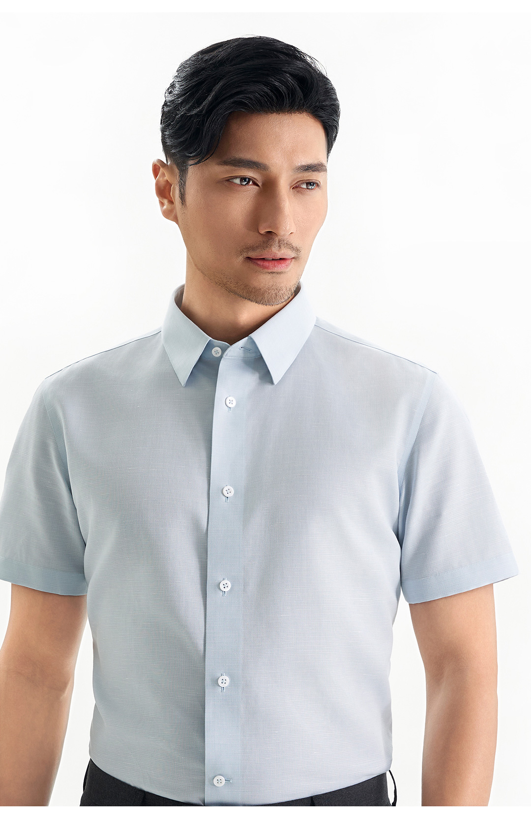 [总裁八号]暗扣领莱赛尔麻透气凉爽短袖白衬衫245P0F615S