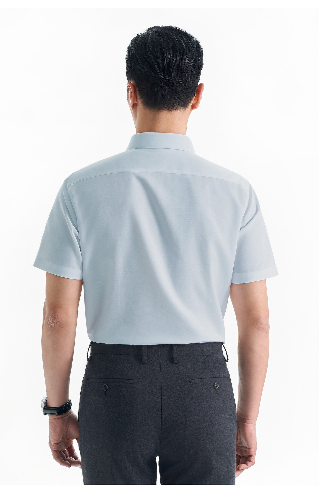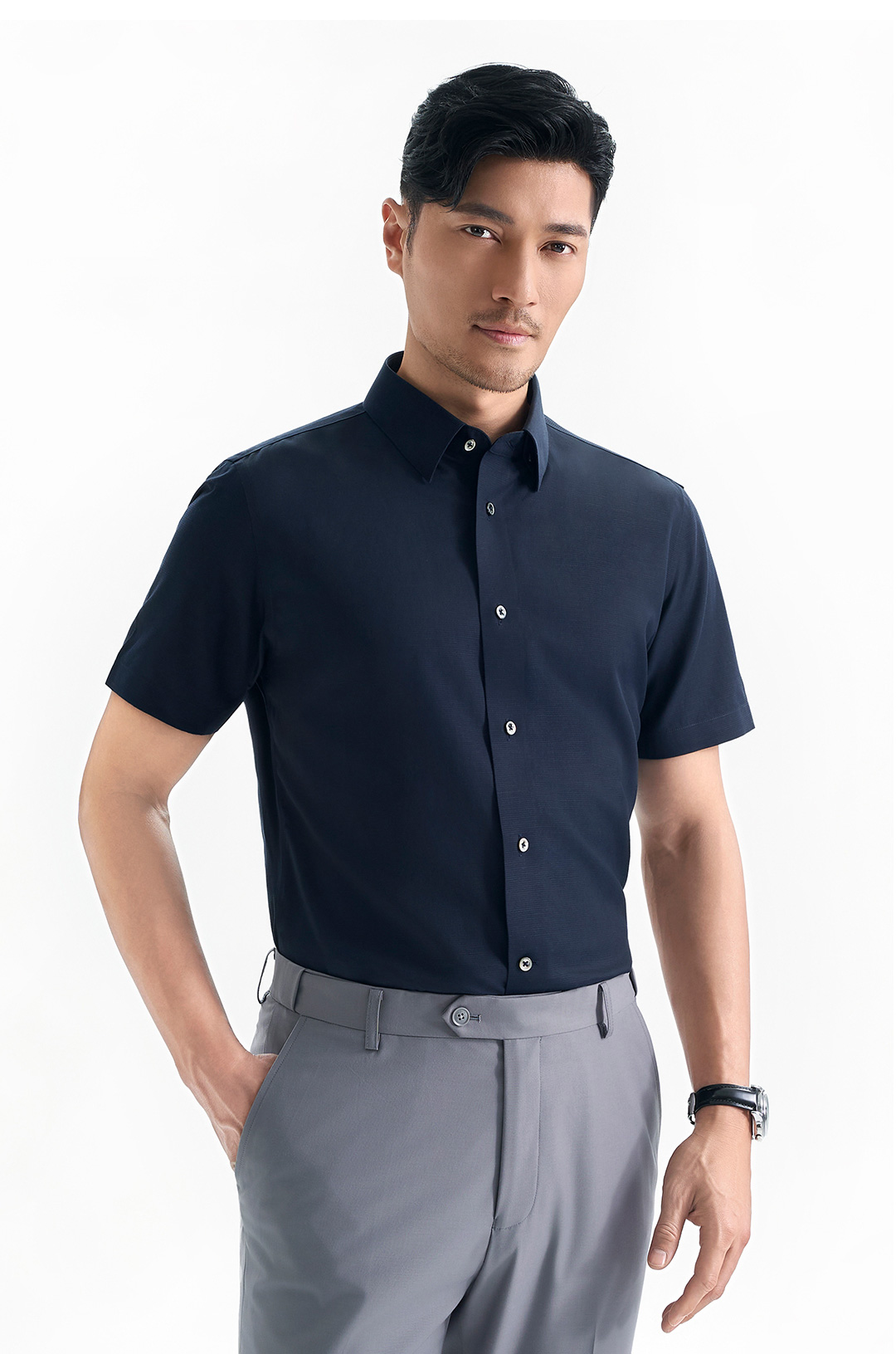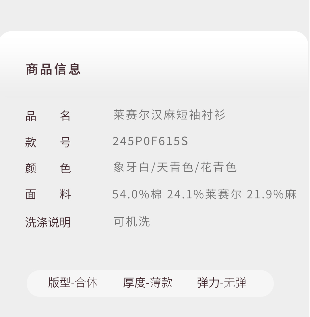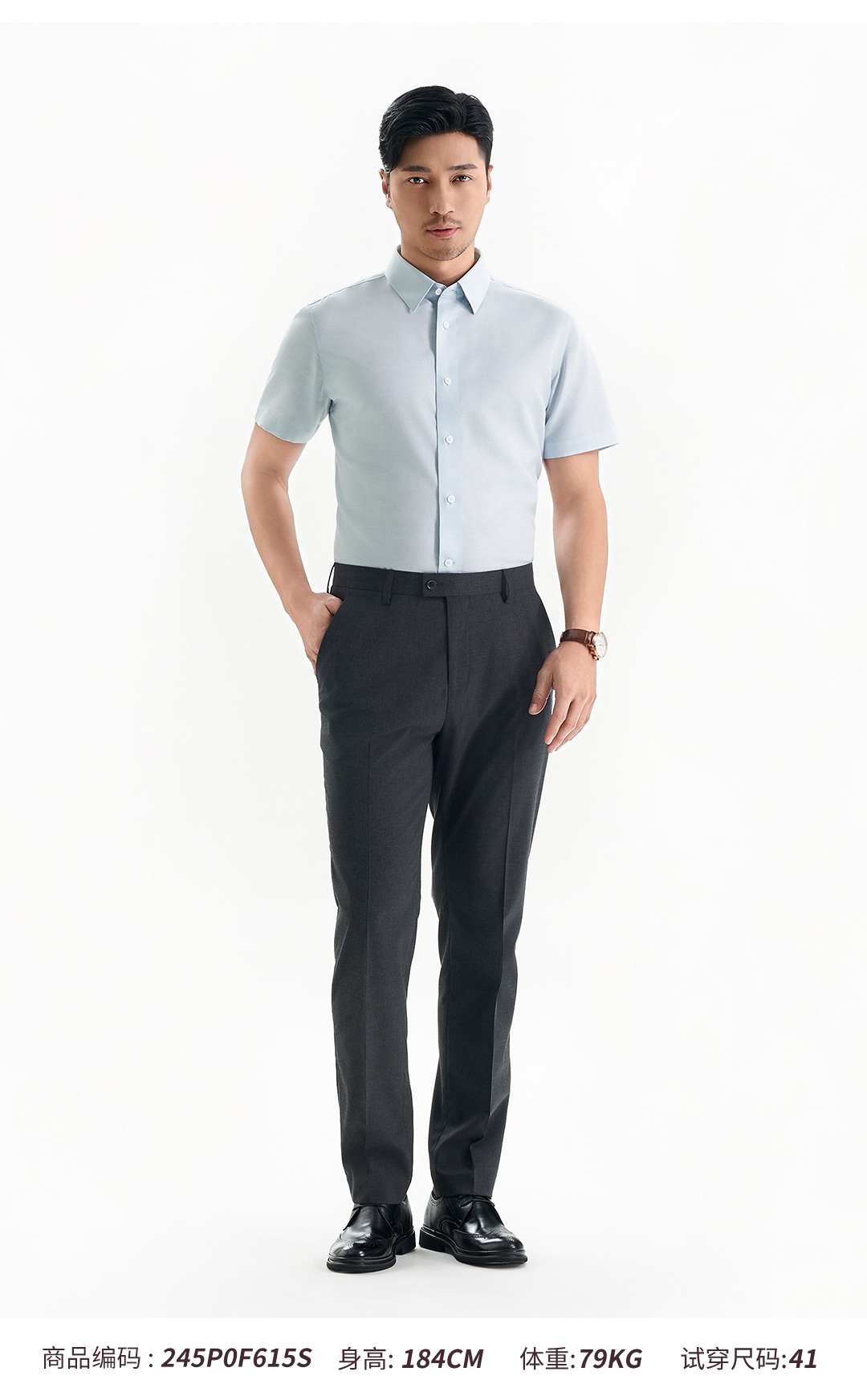 [总裁八号]暗扣领莱赛尔麻透气凉爽短袖白衬衫245P0F615S