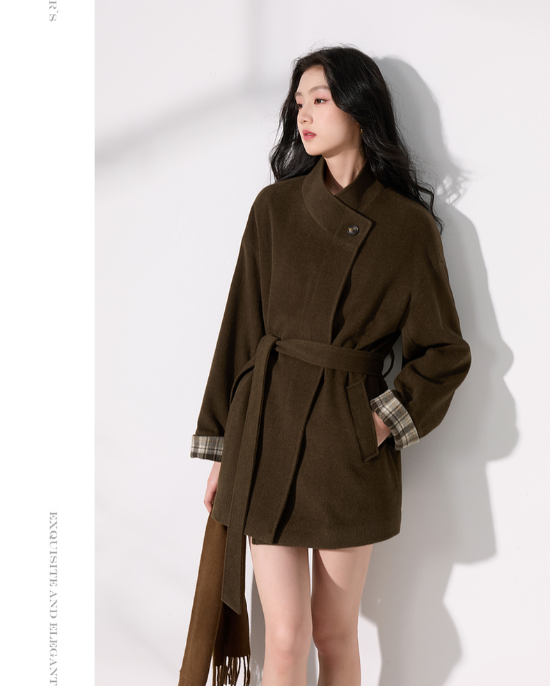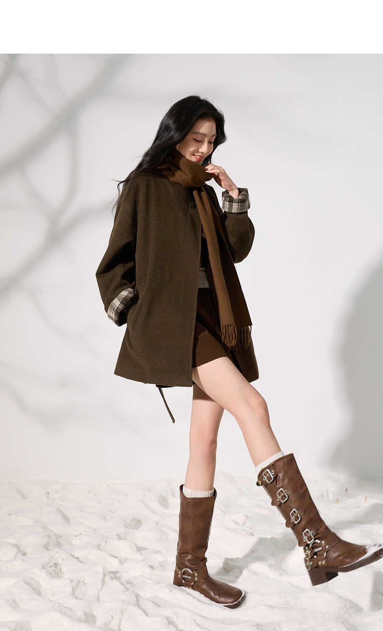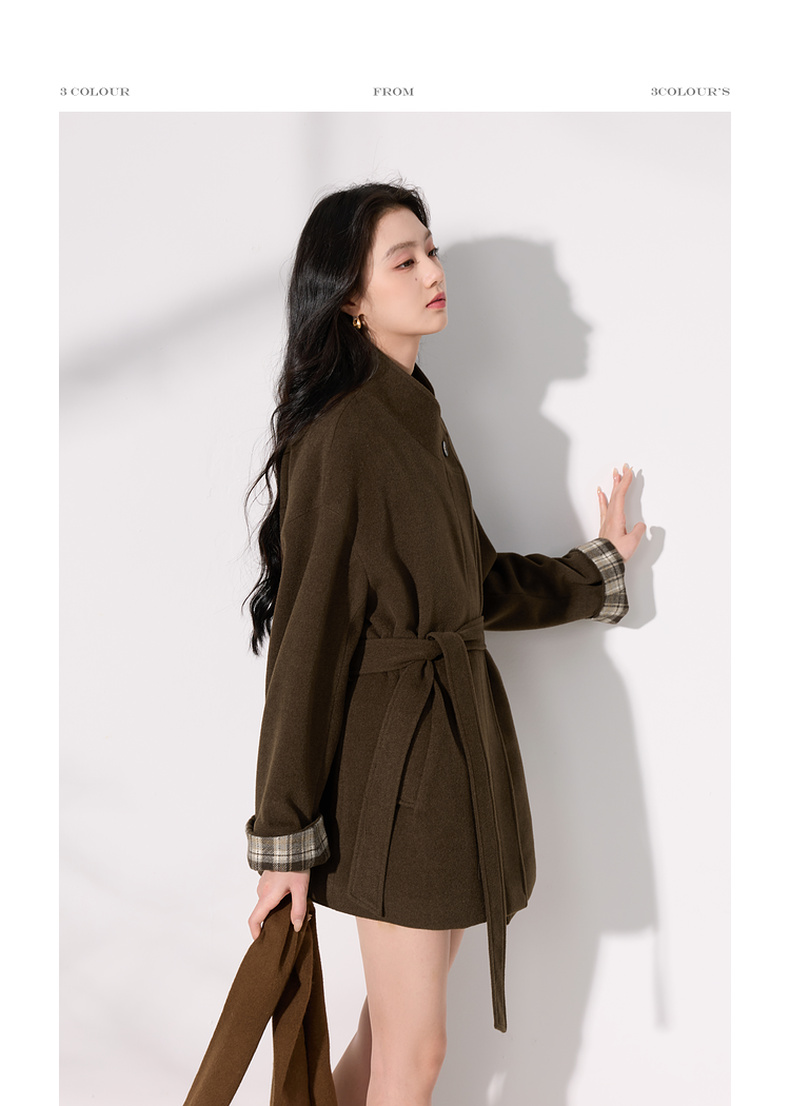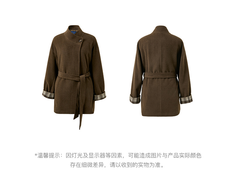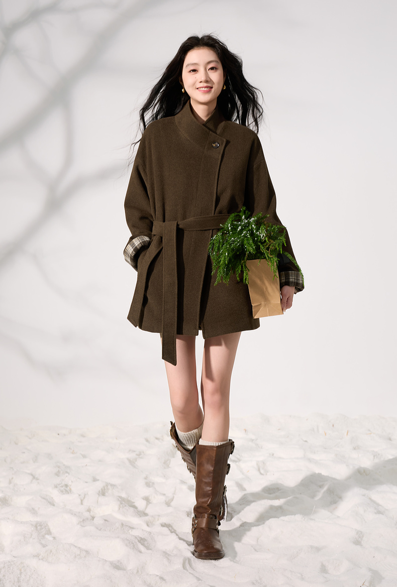三彩2025冬季新款毛呢外套复古中长棉大衣宽松立领A型保暖夹棉S