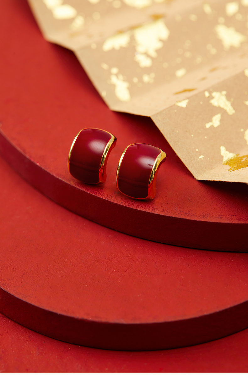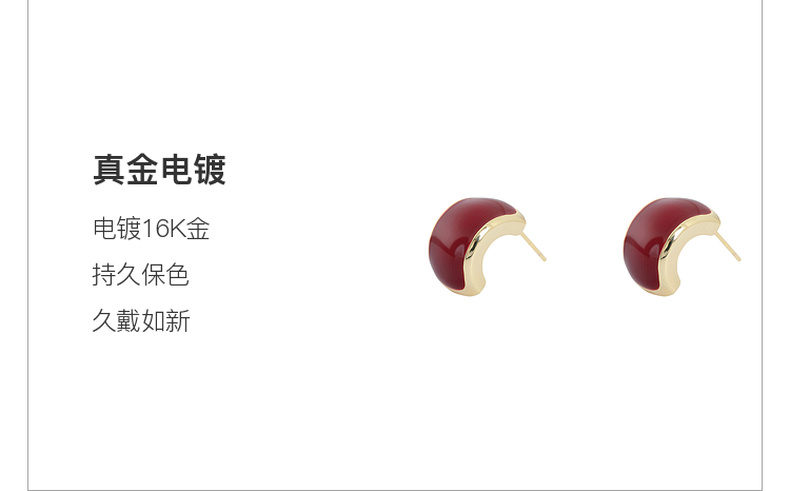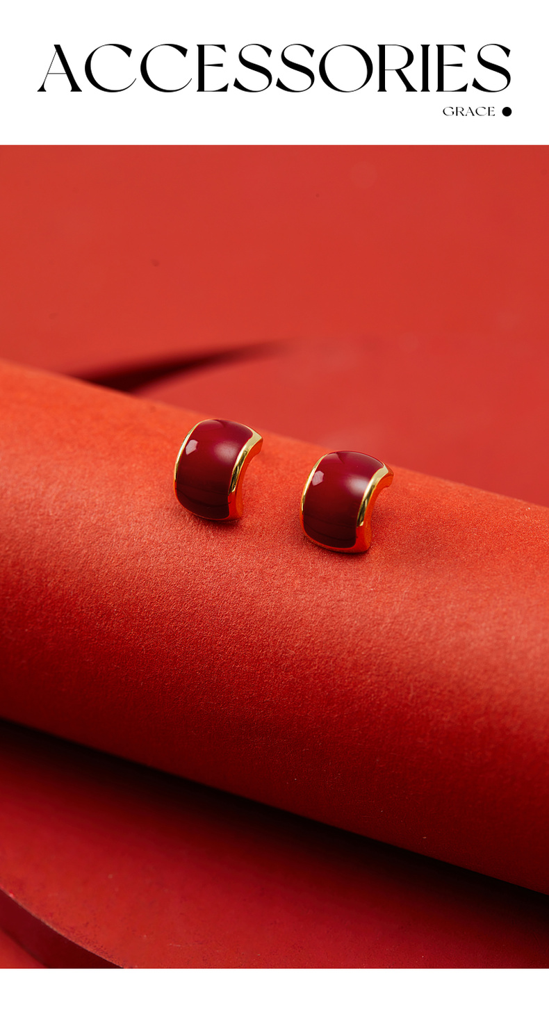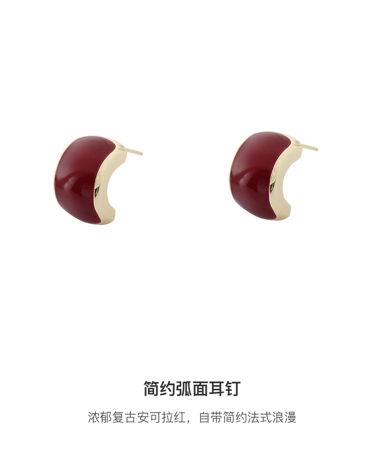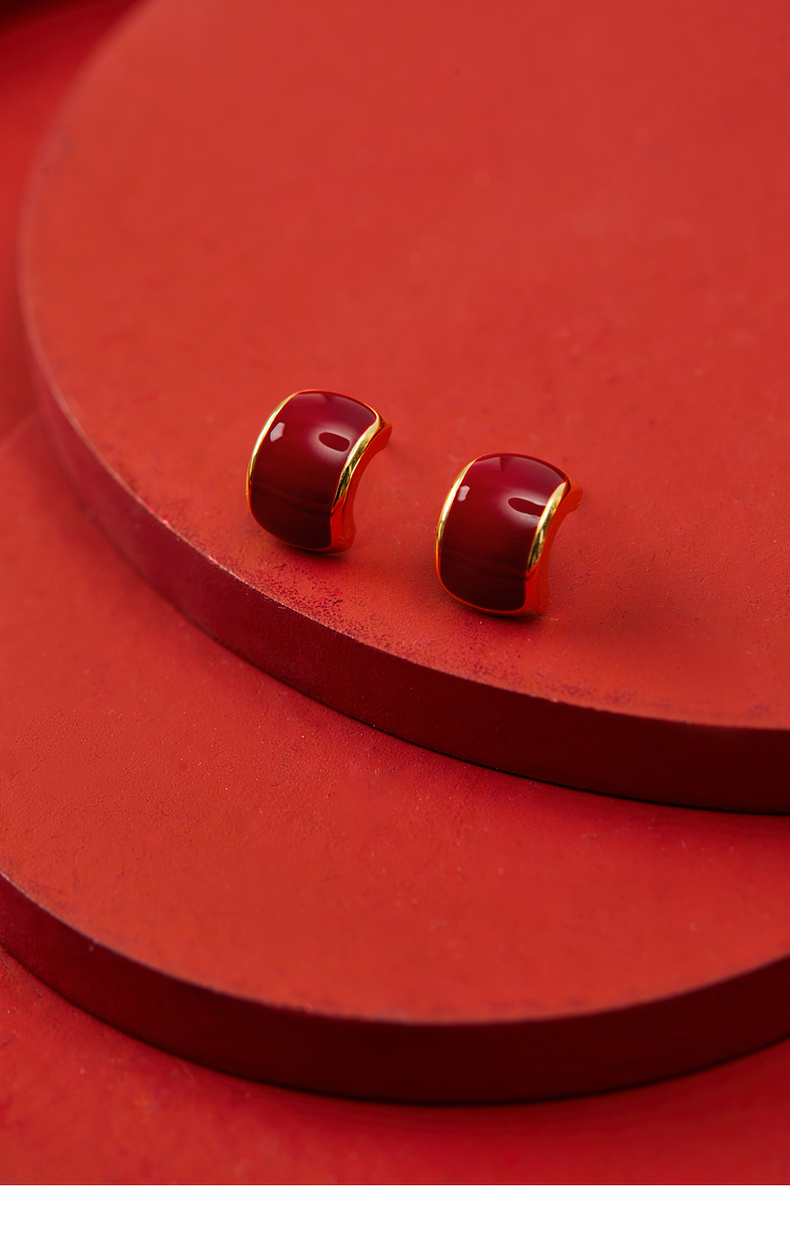 三彩2026新款法式复古耳钉安可拉红S925银针耳饰简约小众轻奢女