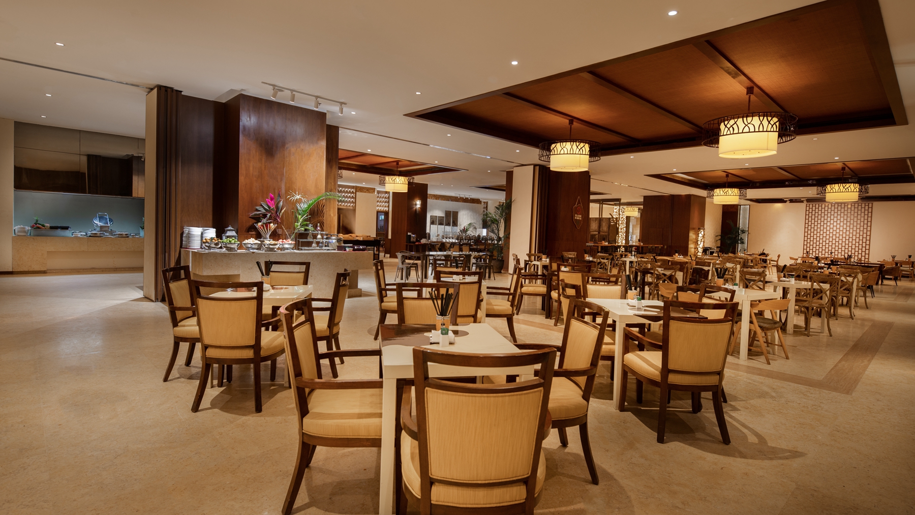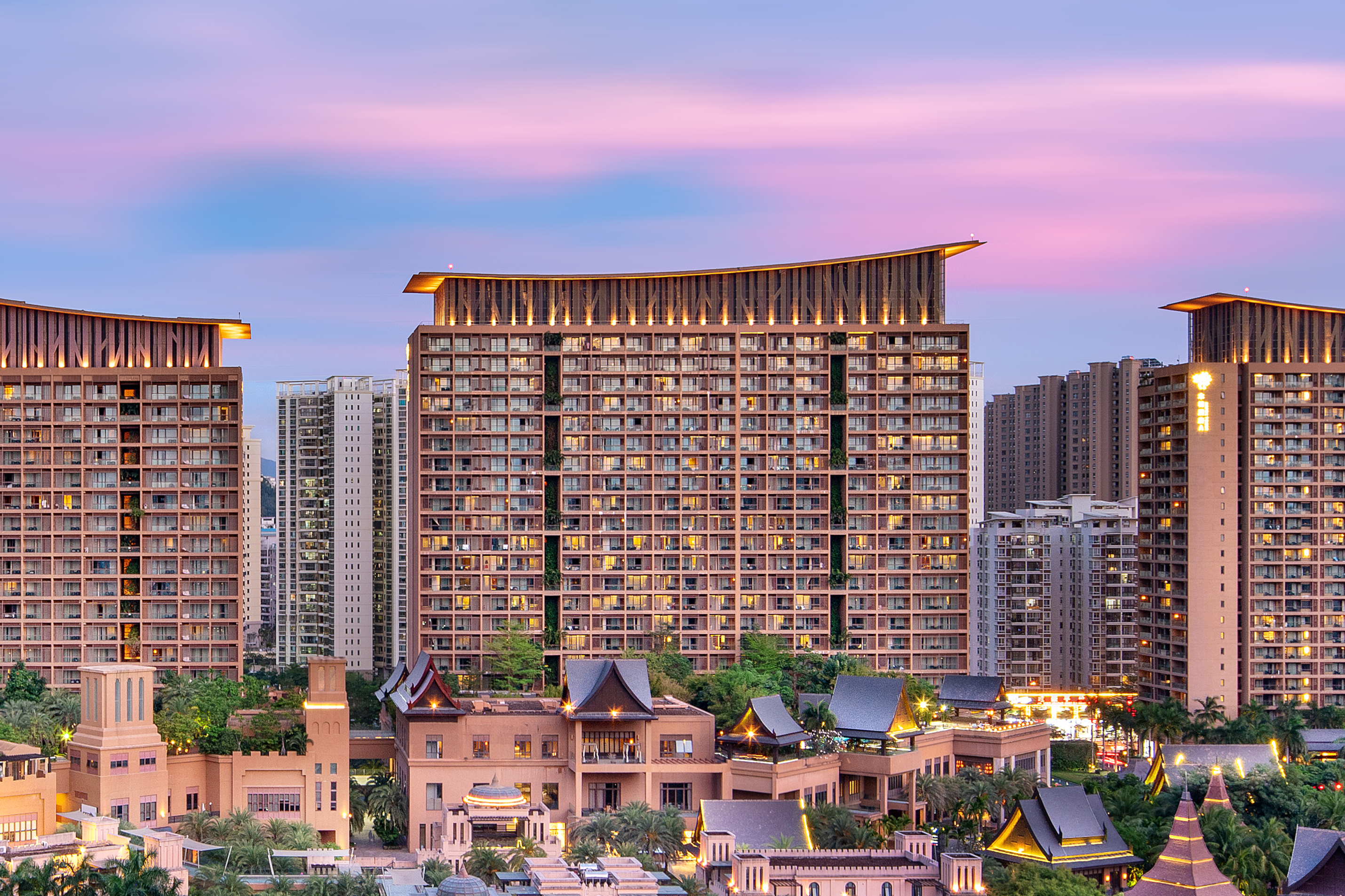 基地房间面积64㎡-210㎡之间,房内高贵雅致的桃木装饰增添了浓郁的度假氛围,宽大舒适的瞰景阳台,空中园林泳池、菩提餐厅、今日艺术汇、红树林设计师餐酒吧等配套为您构筑专属私密度假空间。