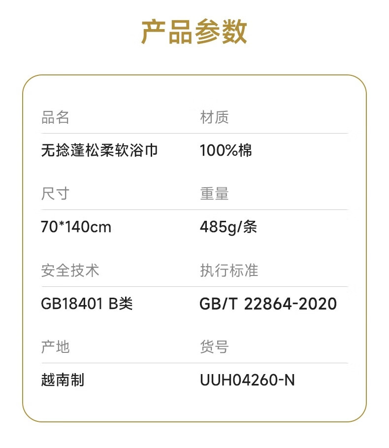 内野J-无捻蓬松柔软浴巾 70*140cm