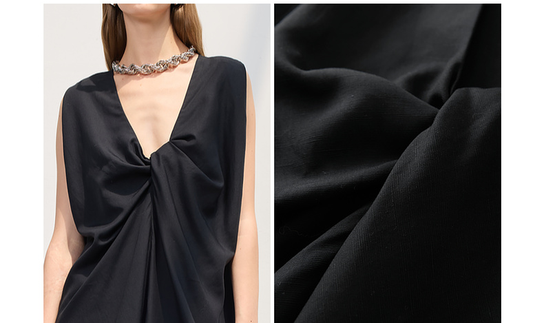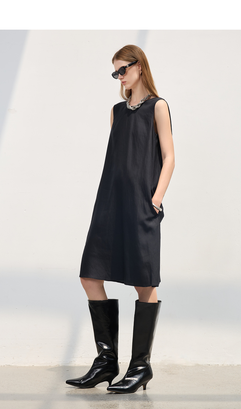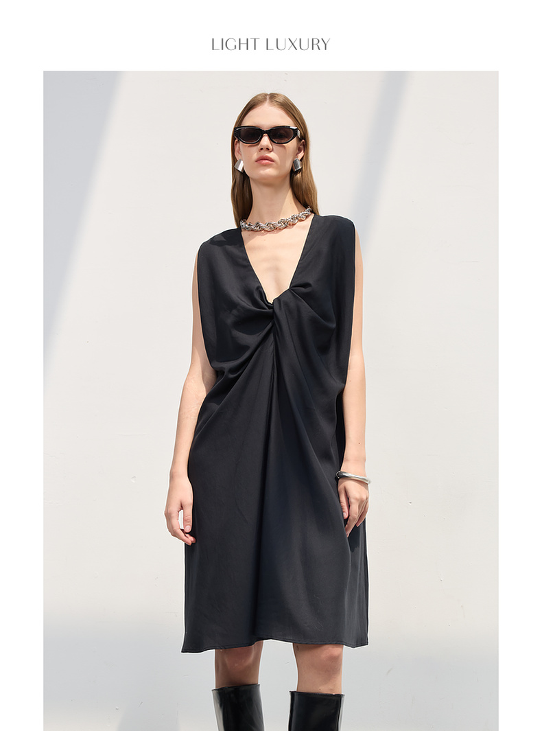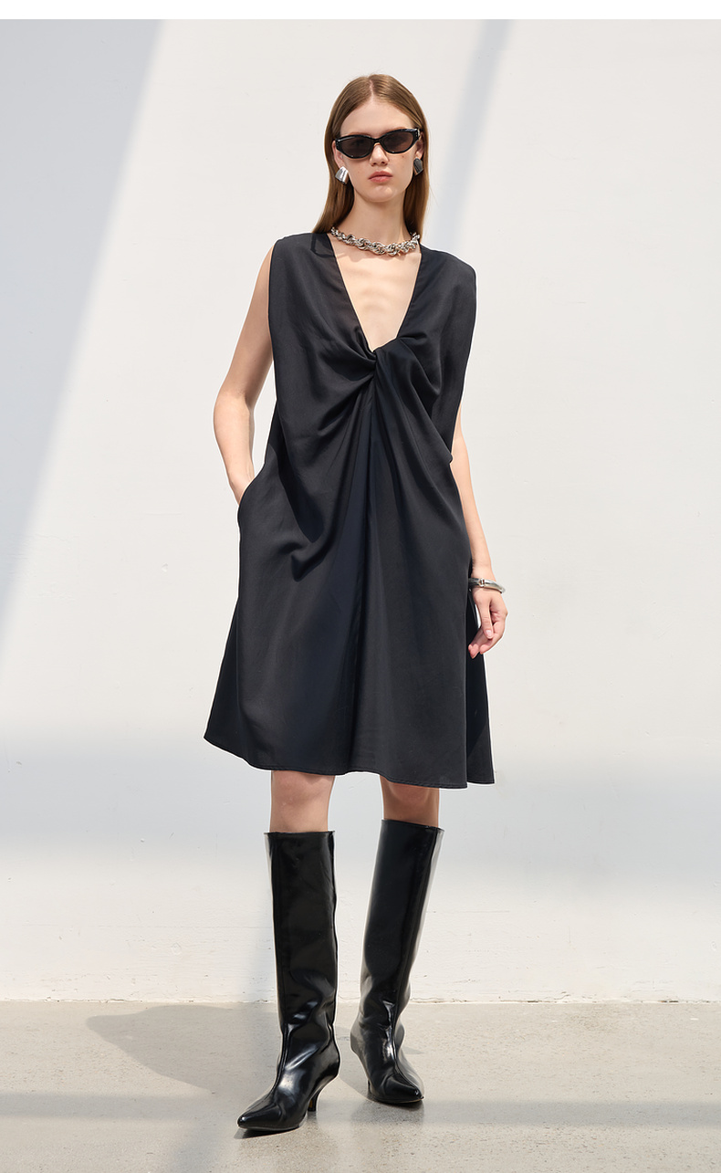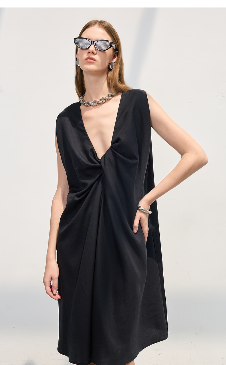 【莱赛尔+亚麻】三彩2025夏季新款极简风连衣裙莱赛尔解构扭结A字裙短裙两穿S