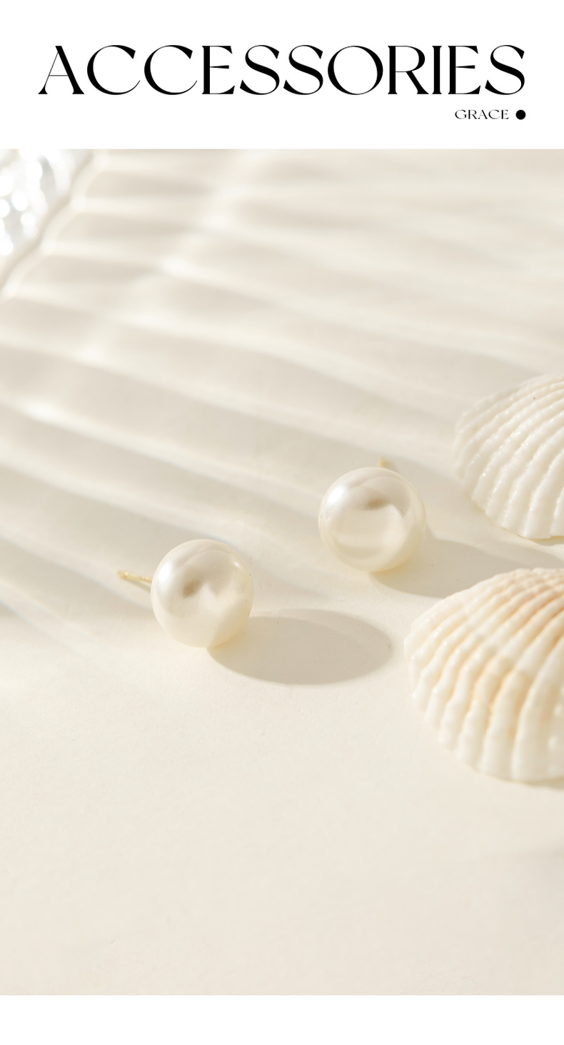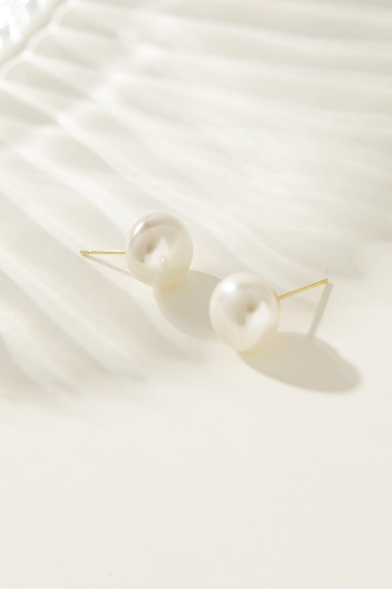 三彩2026新款法式简约通勤轻奢珠光合成面包珍珠女式耳钉耳饰养耳