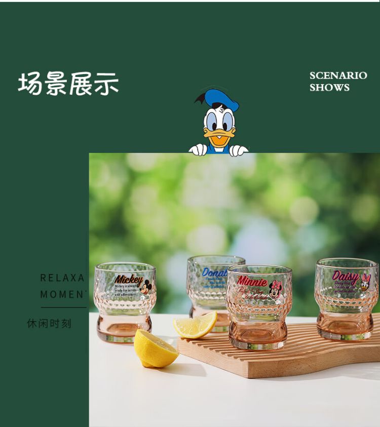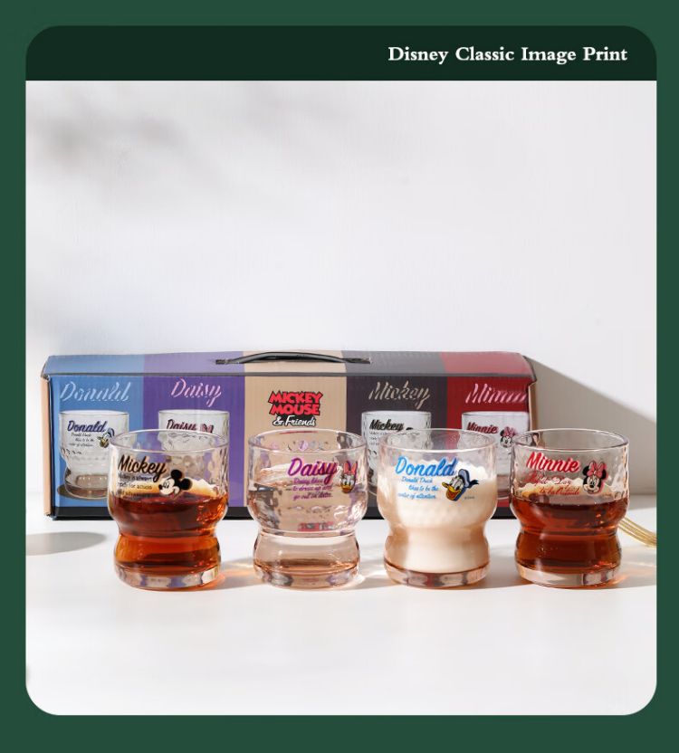 DISNEY 迪士尼茶色复古锤纹玻璃杯4件套礼盒装