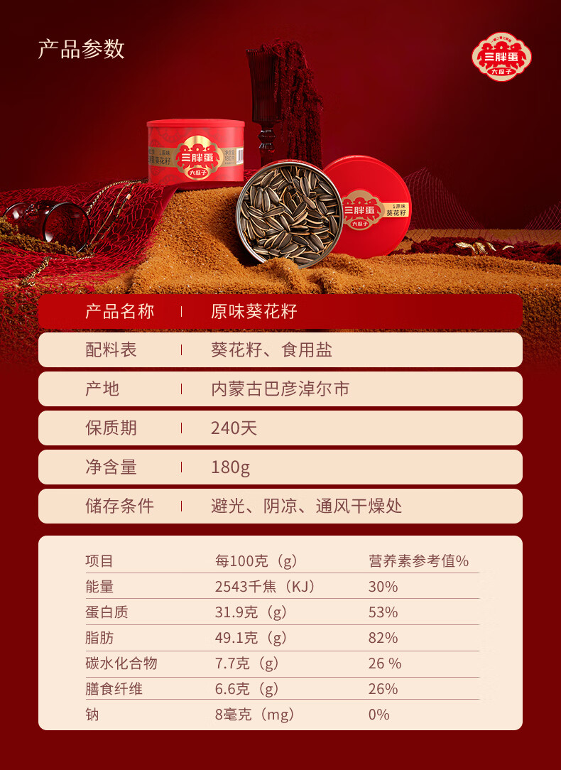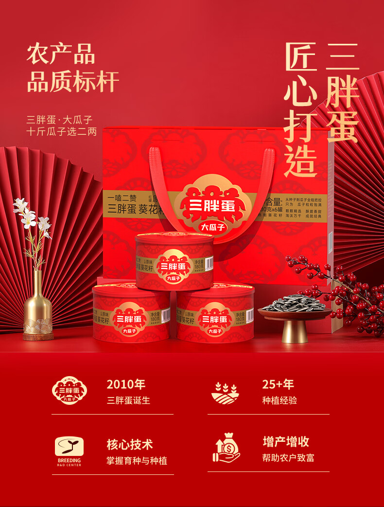 三胖蛋经典瓜子180g*6罐礼盒