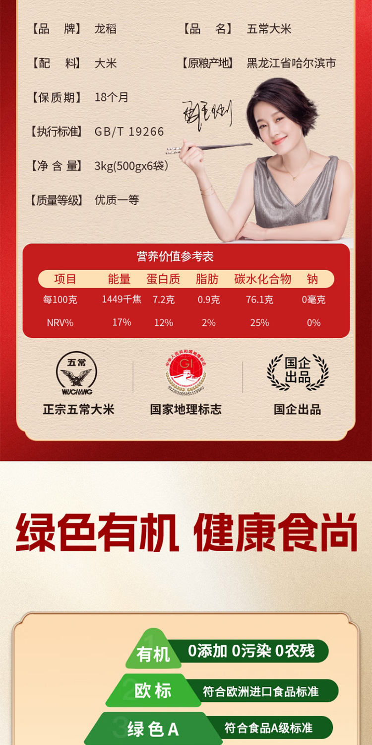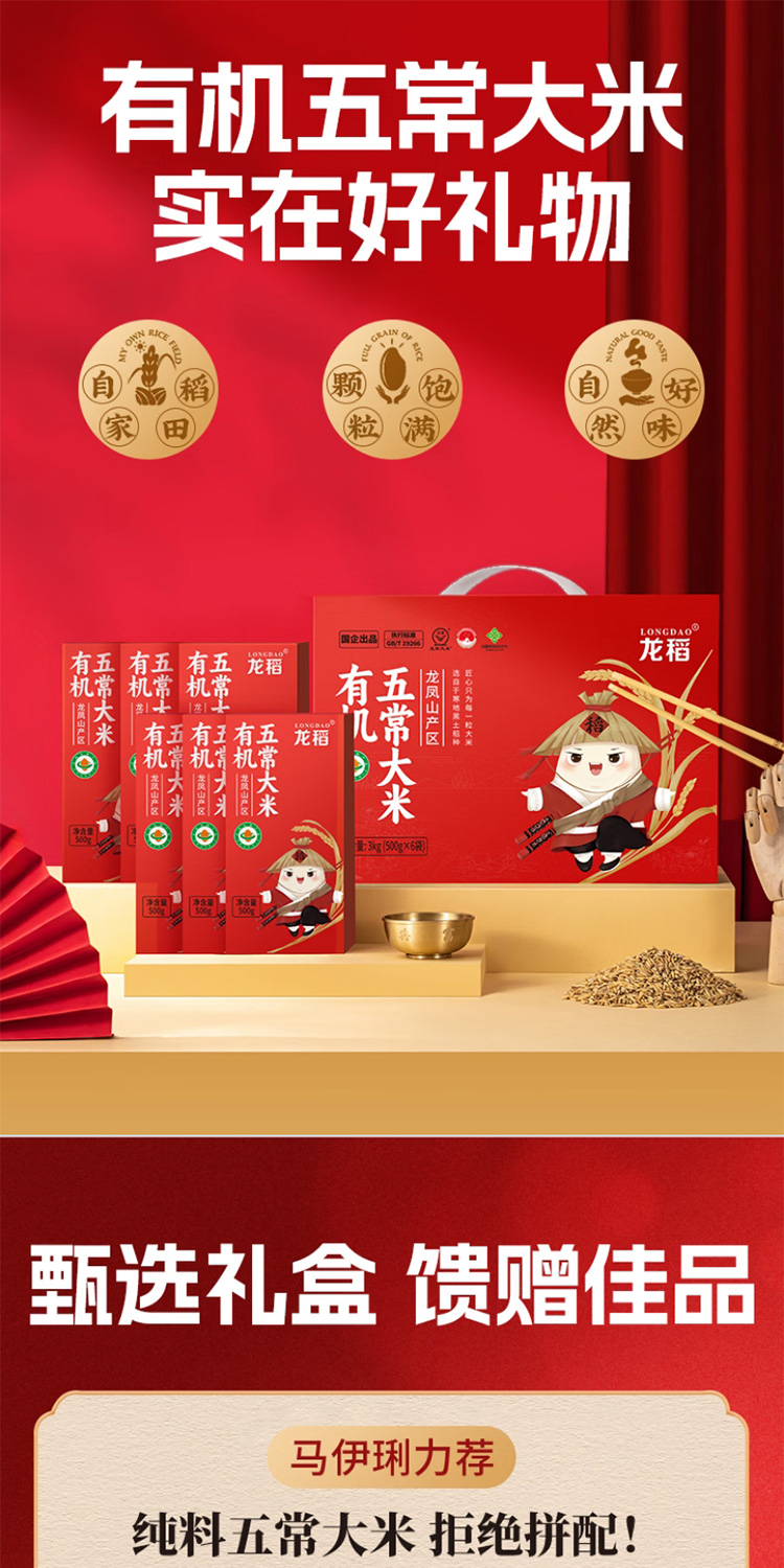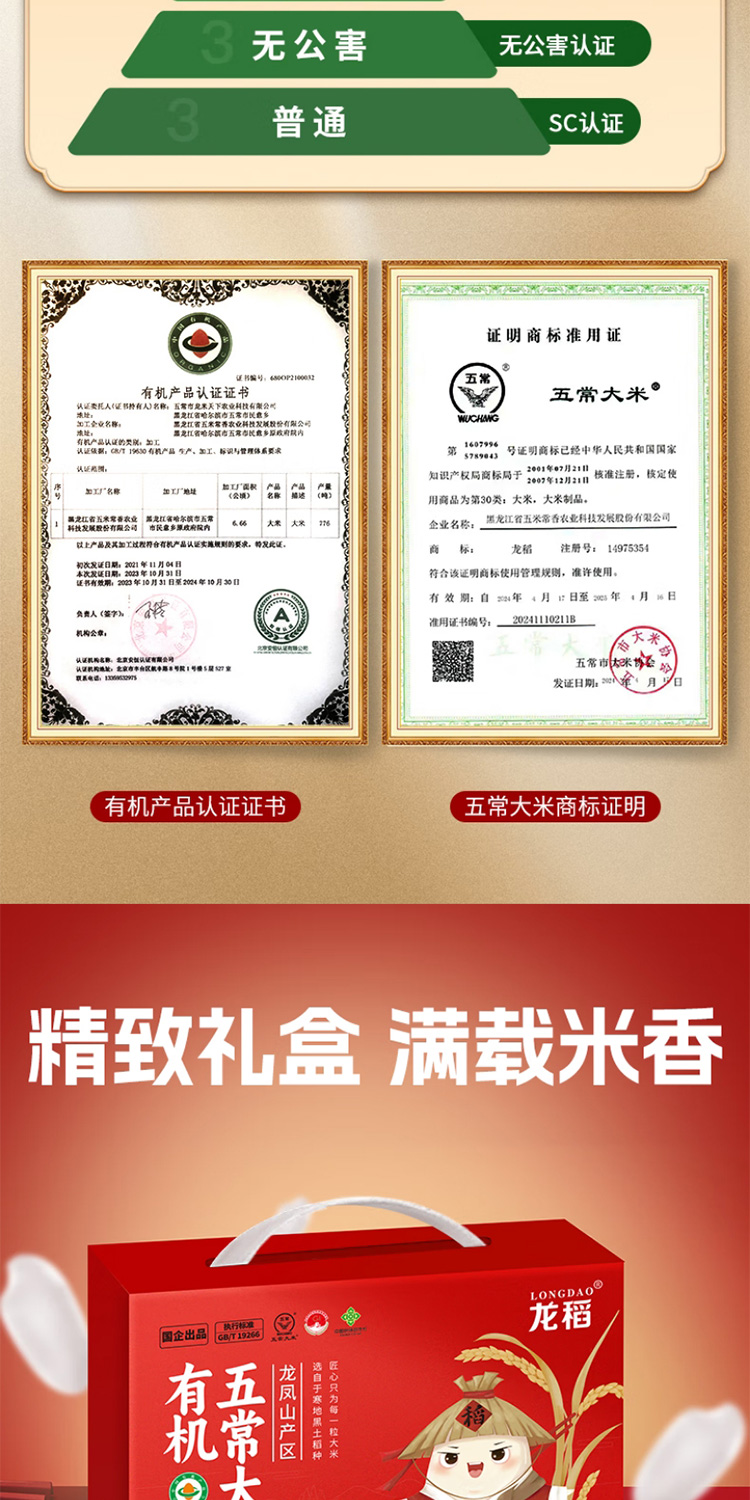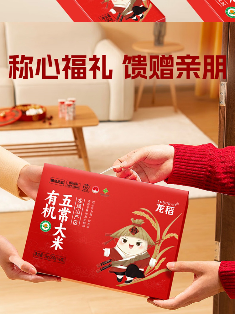 龙稻大米有机五常大米3kg稻花香2号礼盒装