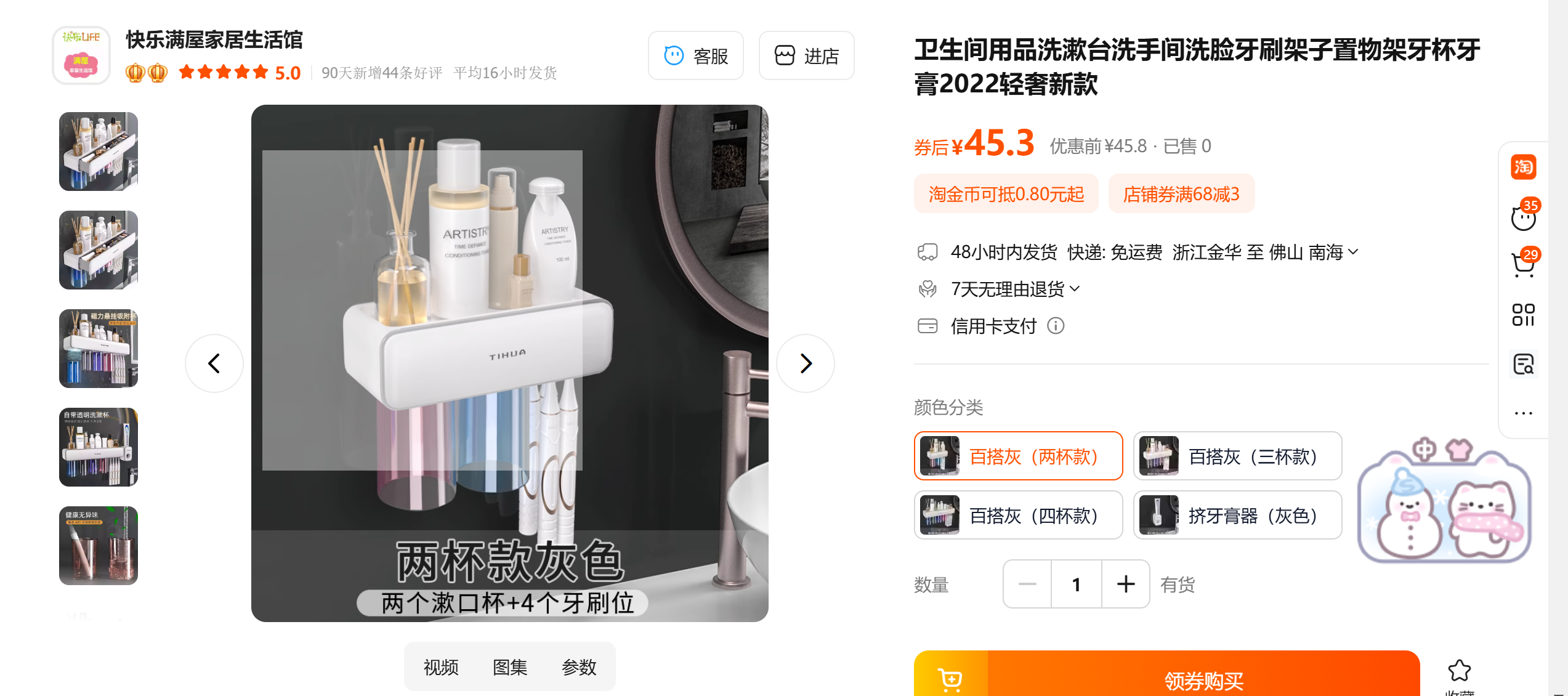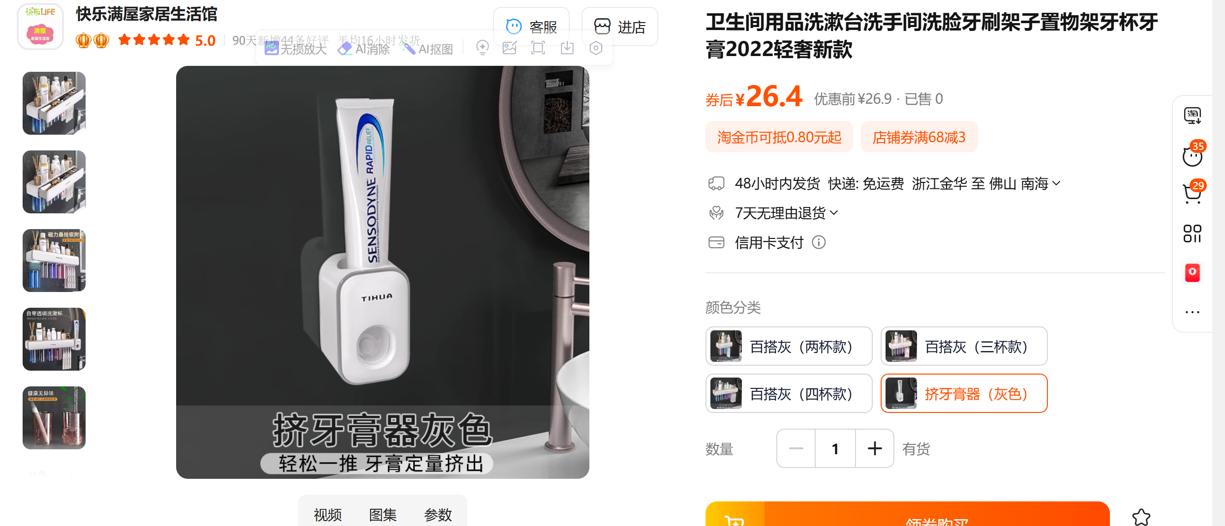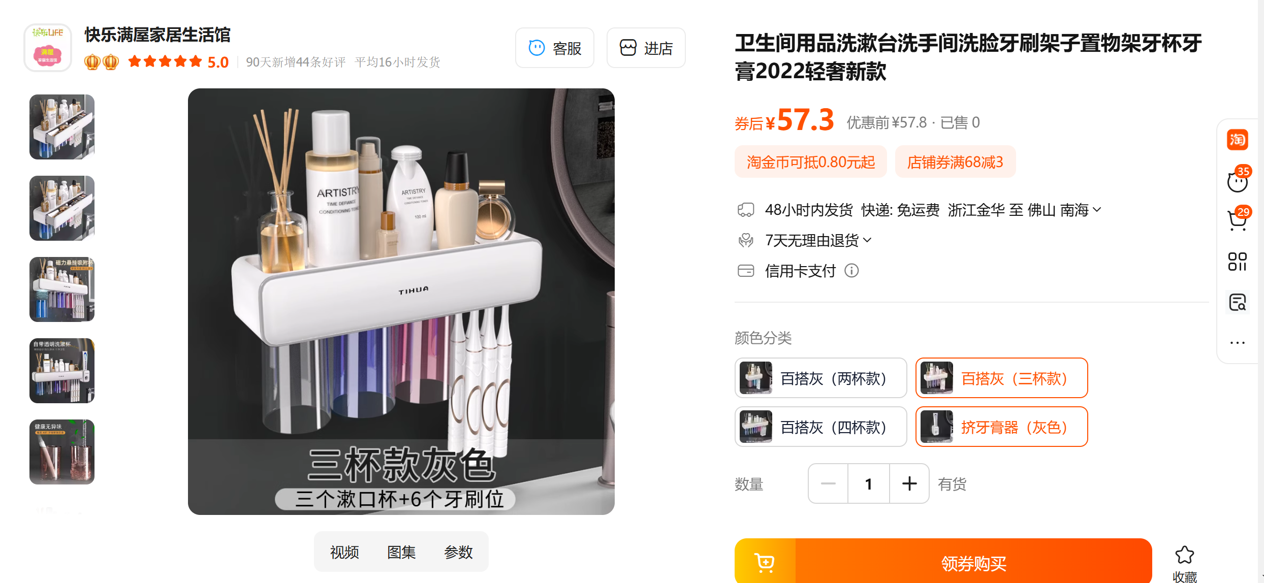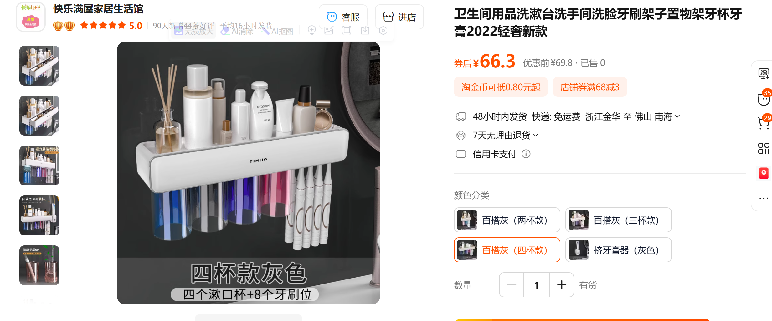 【二三四杯架挤牙膏器在淘宝原价分别是45元、57元、66元、26元】