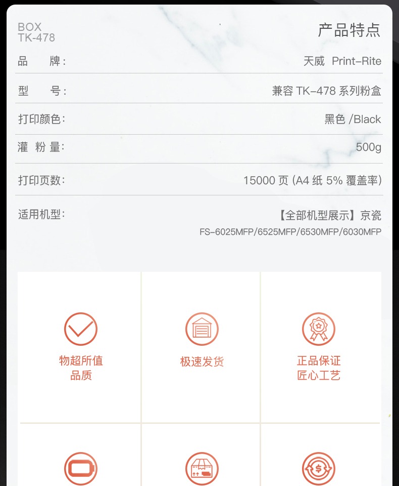 天威 TK-478墨粉盒 适用京瓷6525粉盒 FS-6525MFP 6530MFP墨粉 6025MFP 6030MFP碳粉6530 复印机墨盒