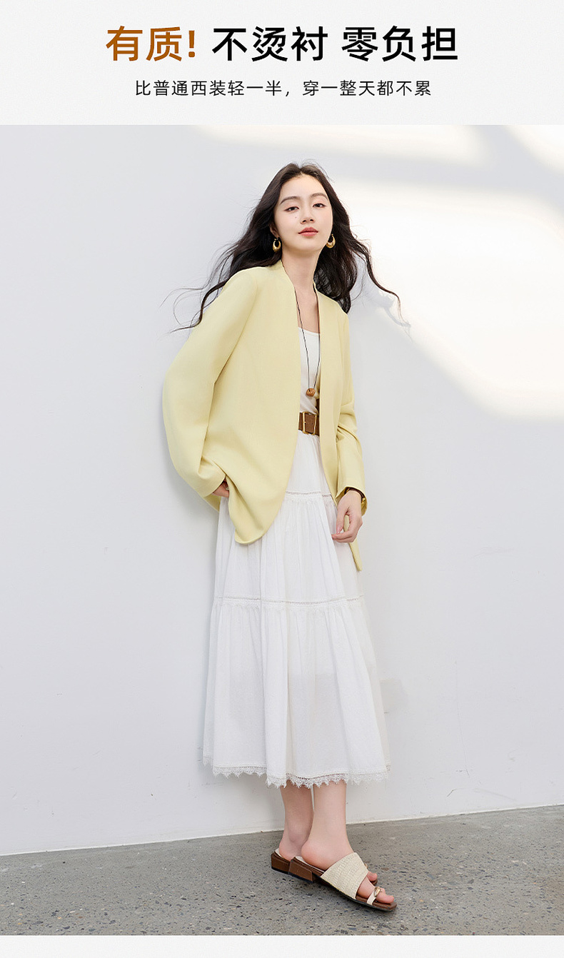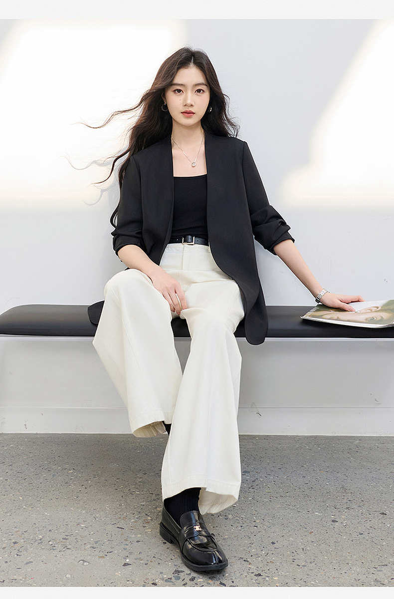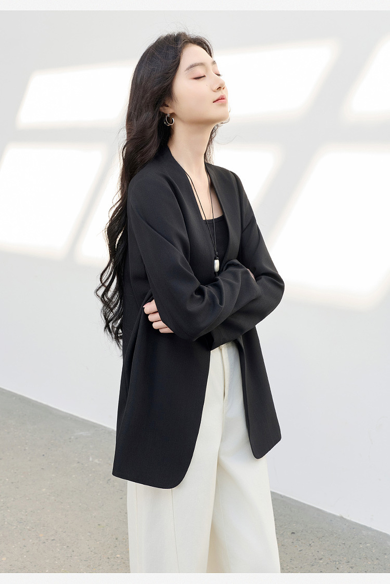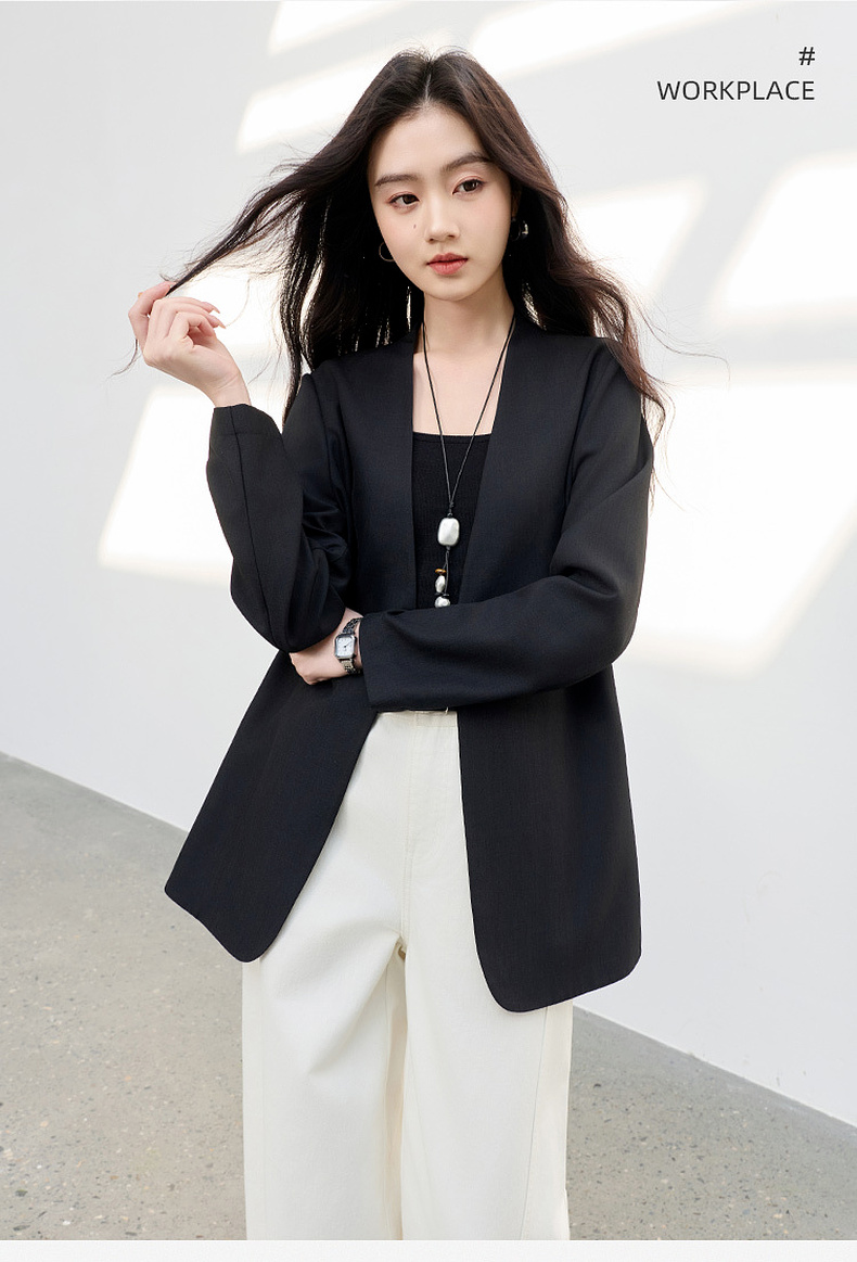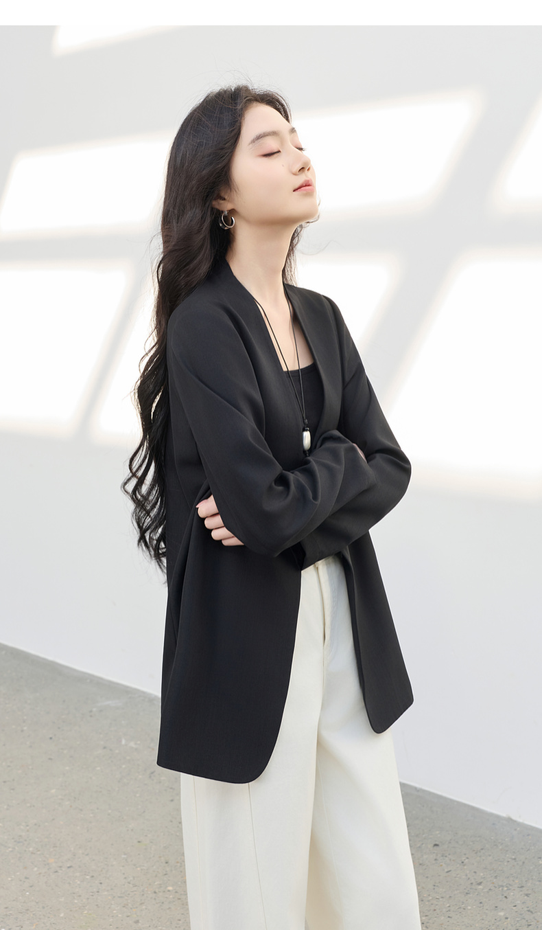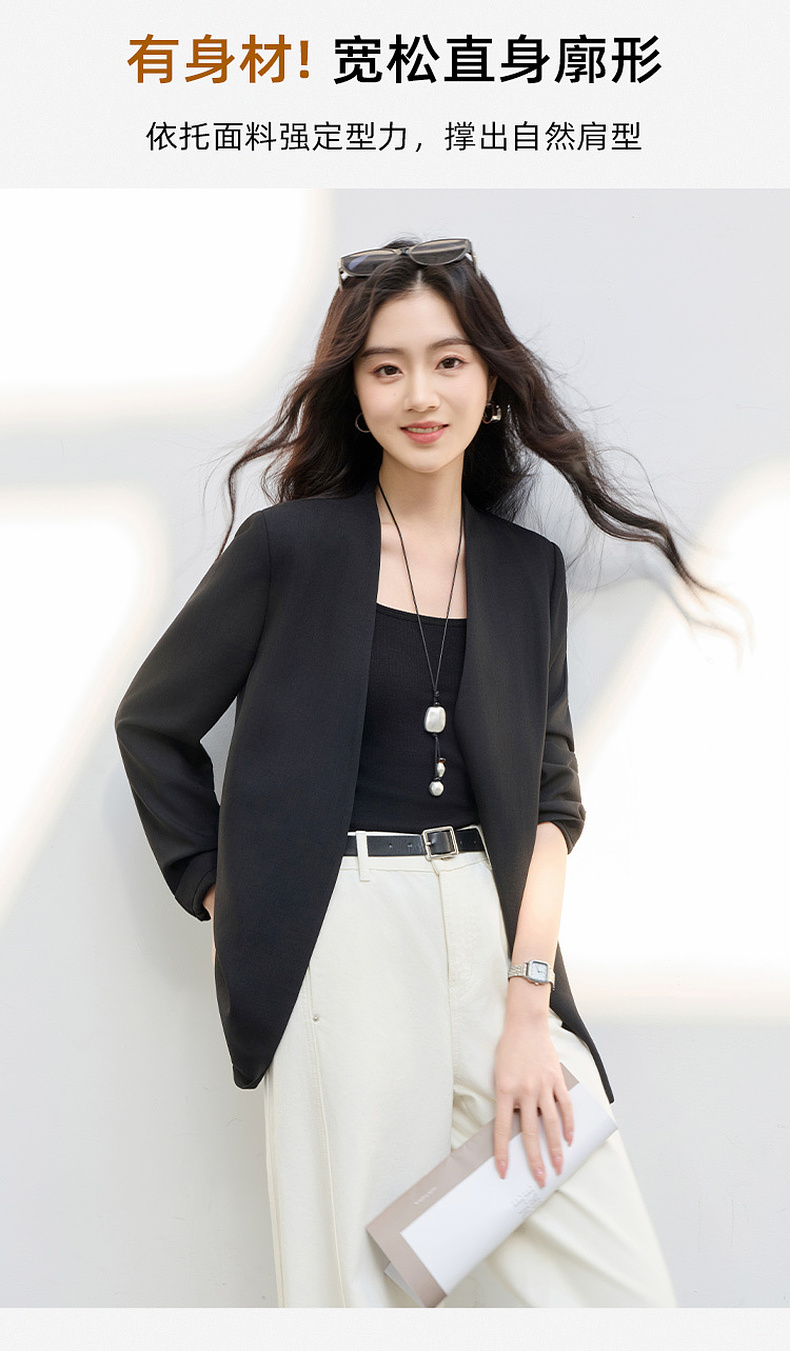 【华尔兹小西装】三彩2026春季新款宽松西服外套通勤简约V领气质M