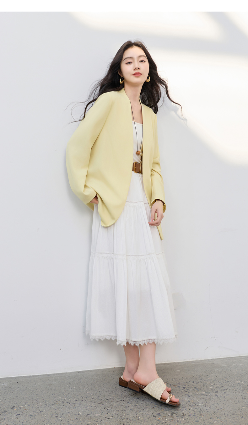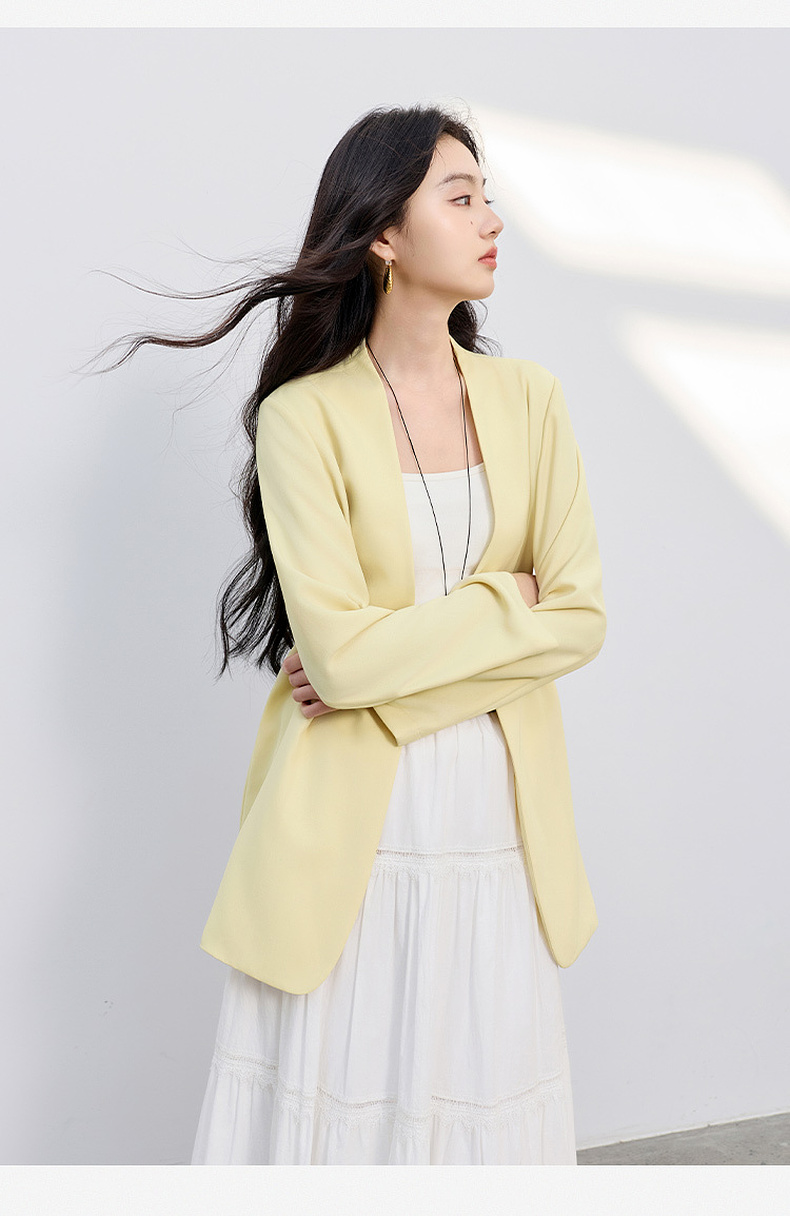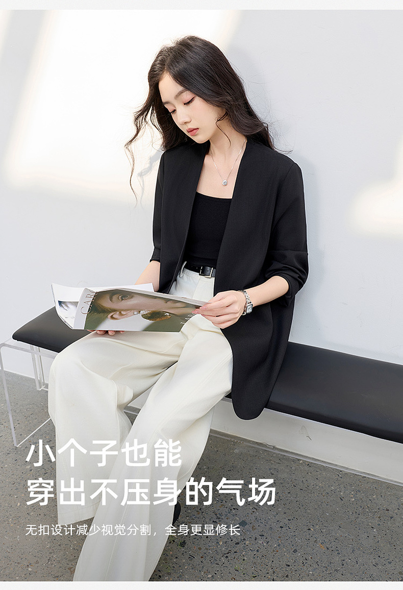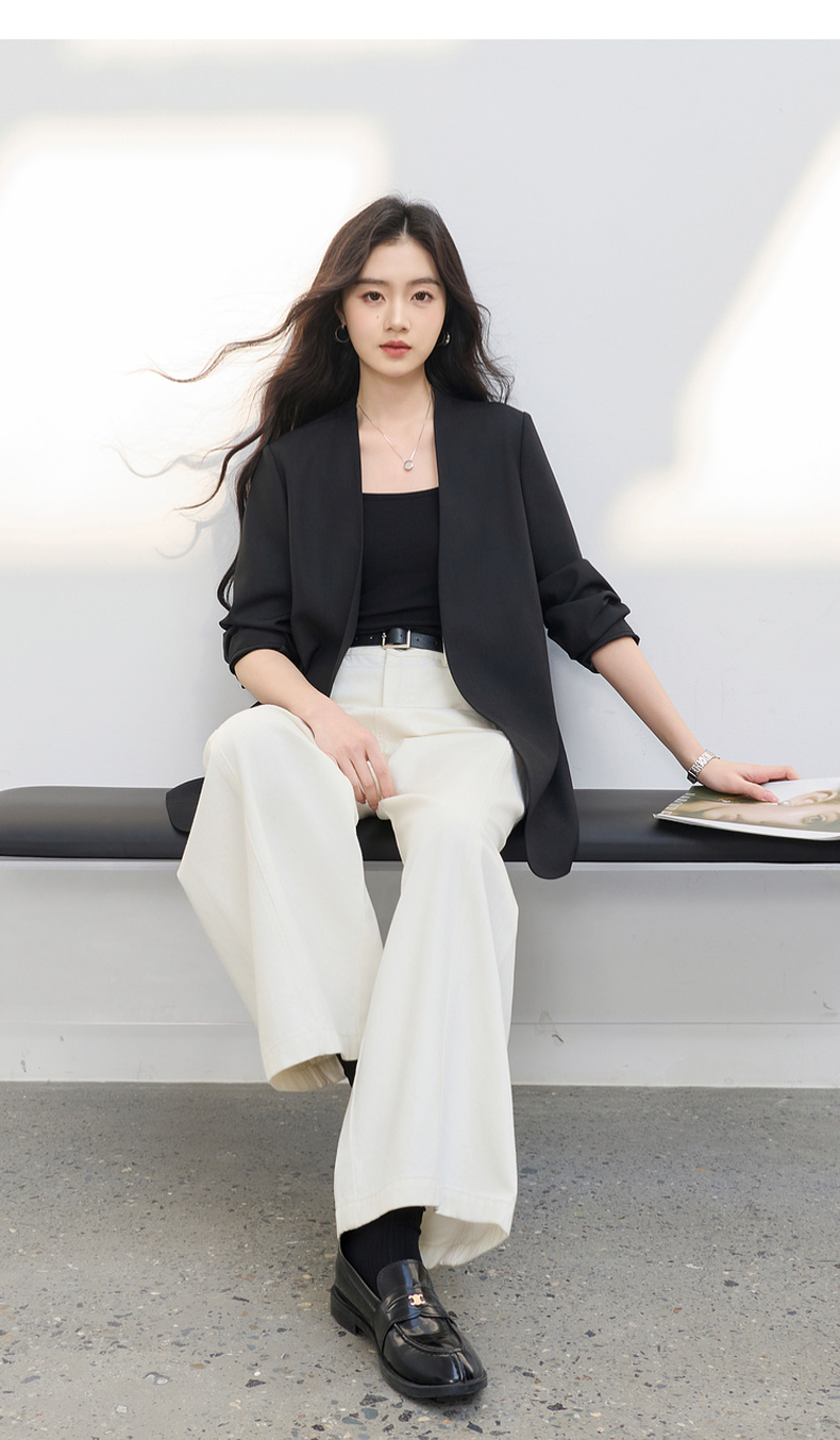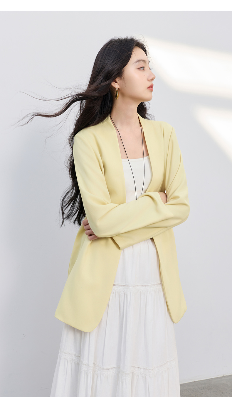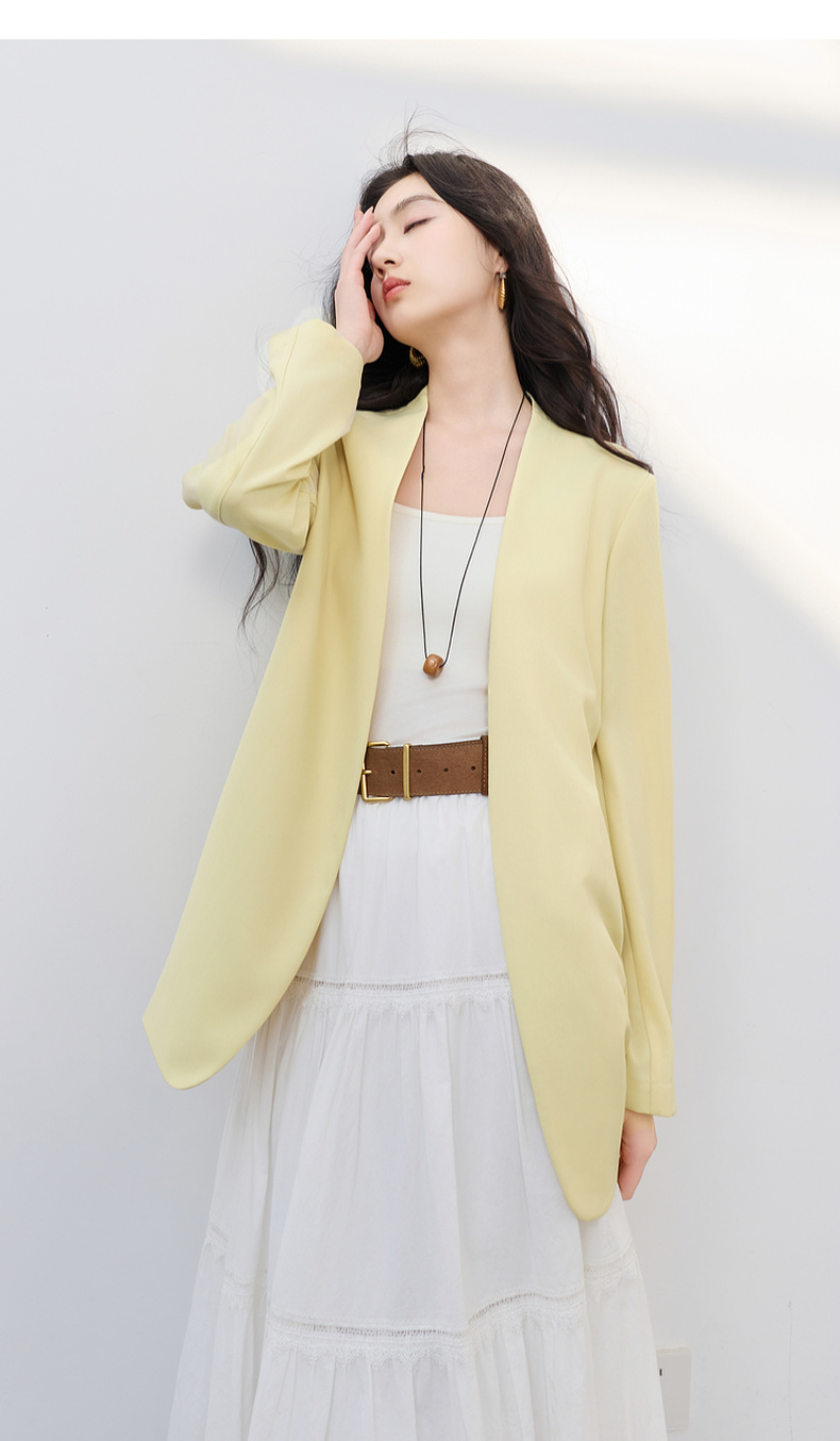 【华尔兹小西装】三彩2026春季新款宽松西服外套通勤简约V领气质M