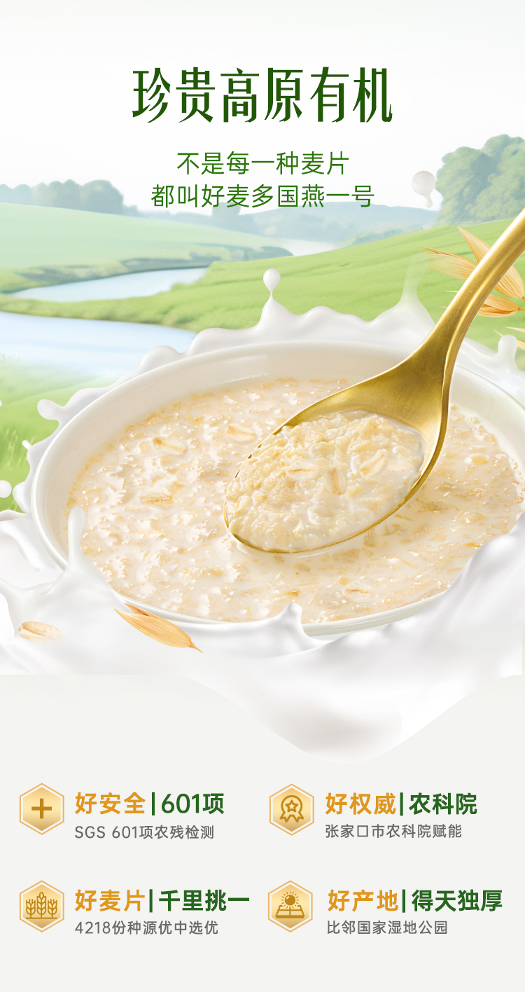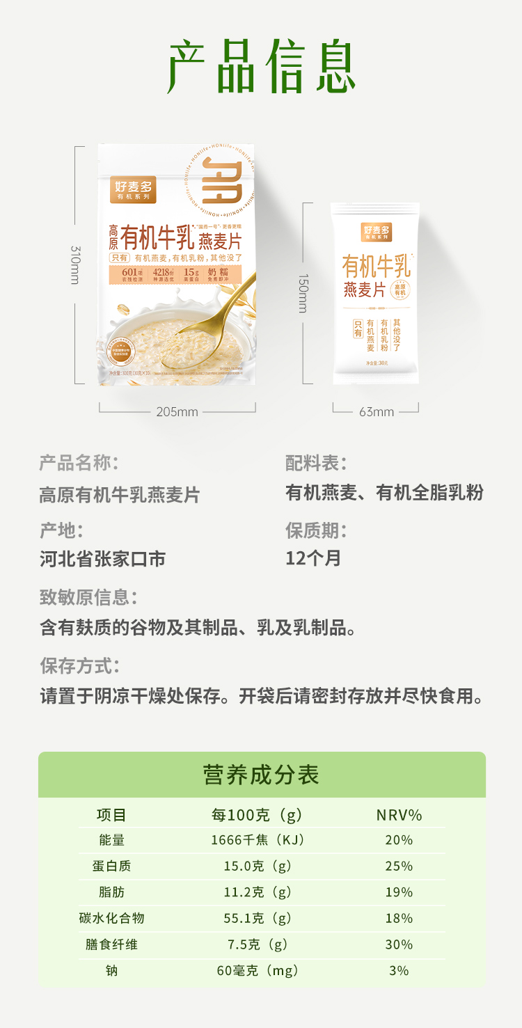 【好麦多】高原有机牛乳燕麦片300g*2袋