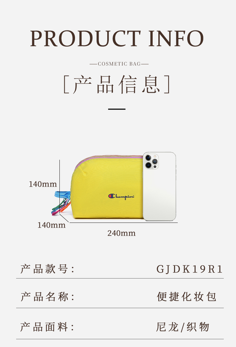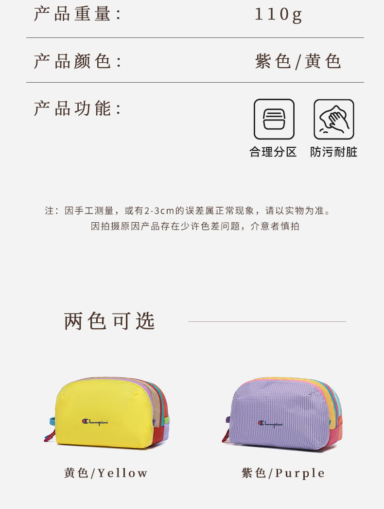 Champion冠军多巴胺色系洗漱包
