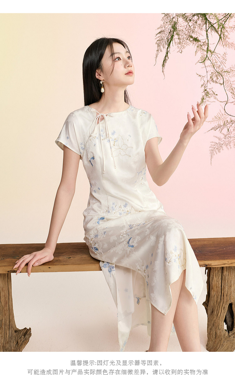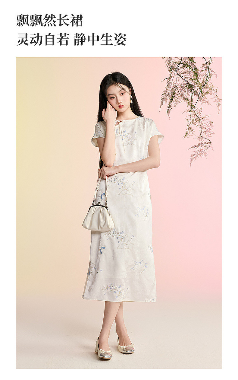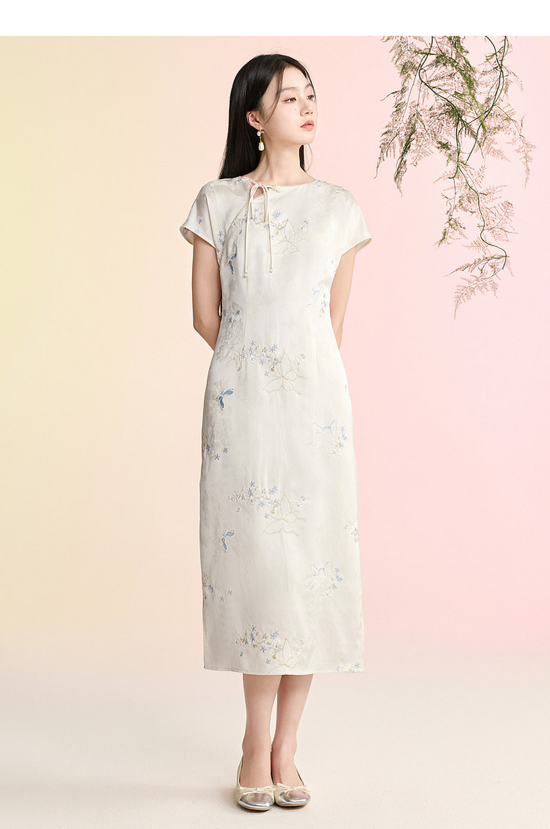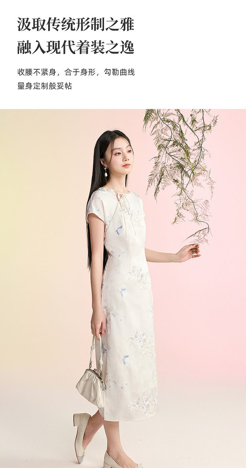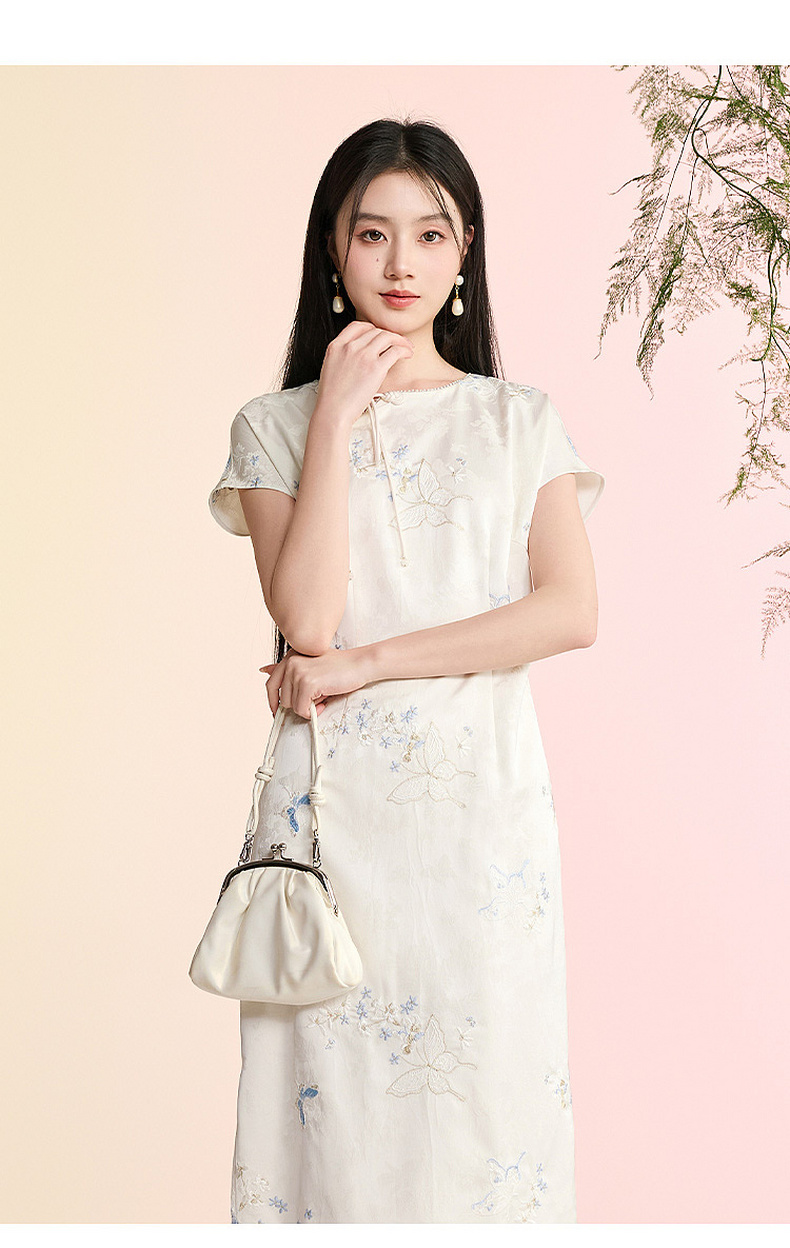 三彩【蝶栖云裳】2026春季新款新中式连衣裙提花绣花开叉长裙C