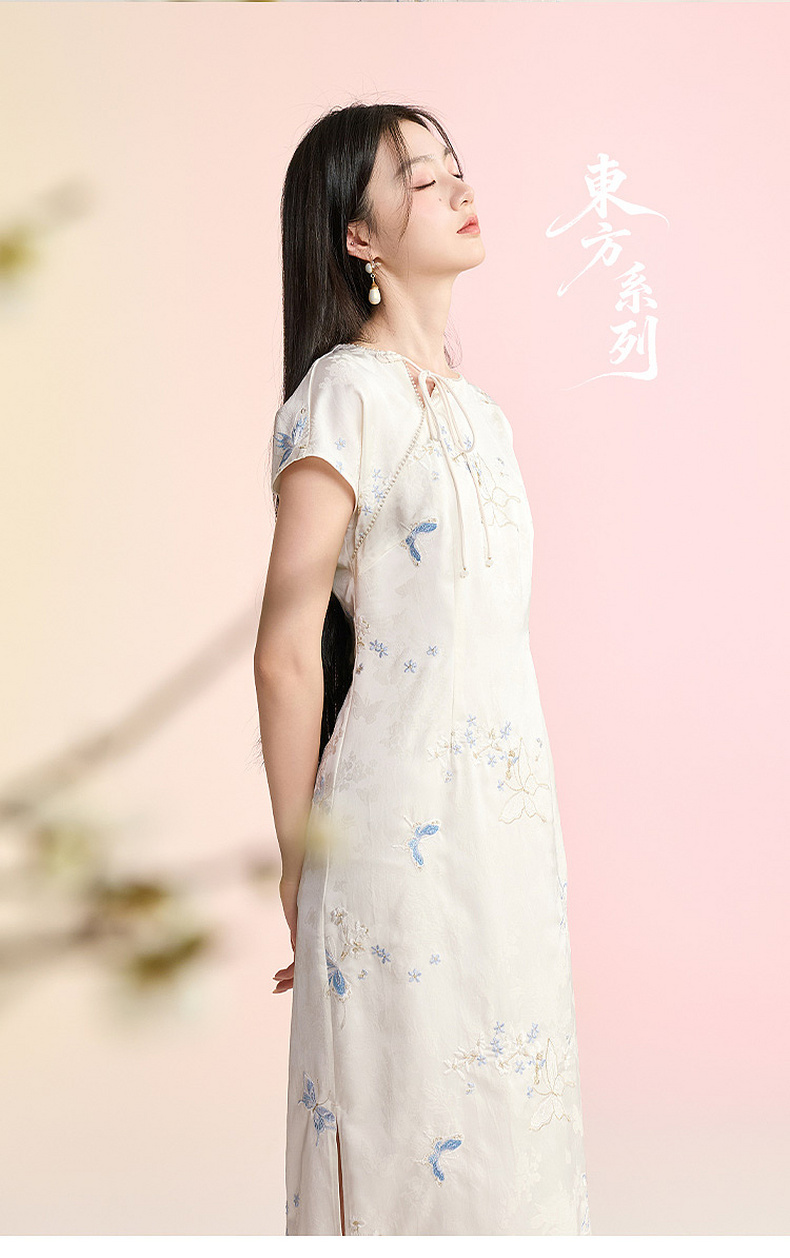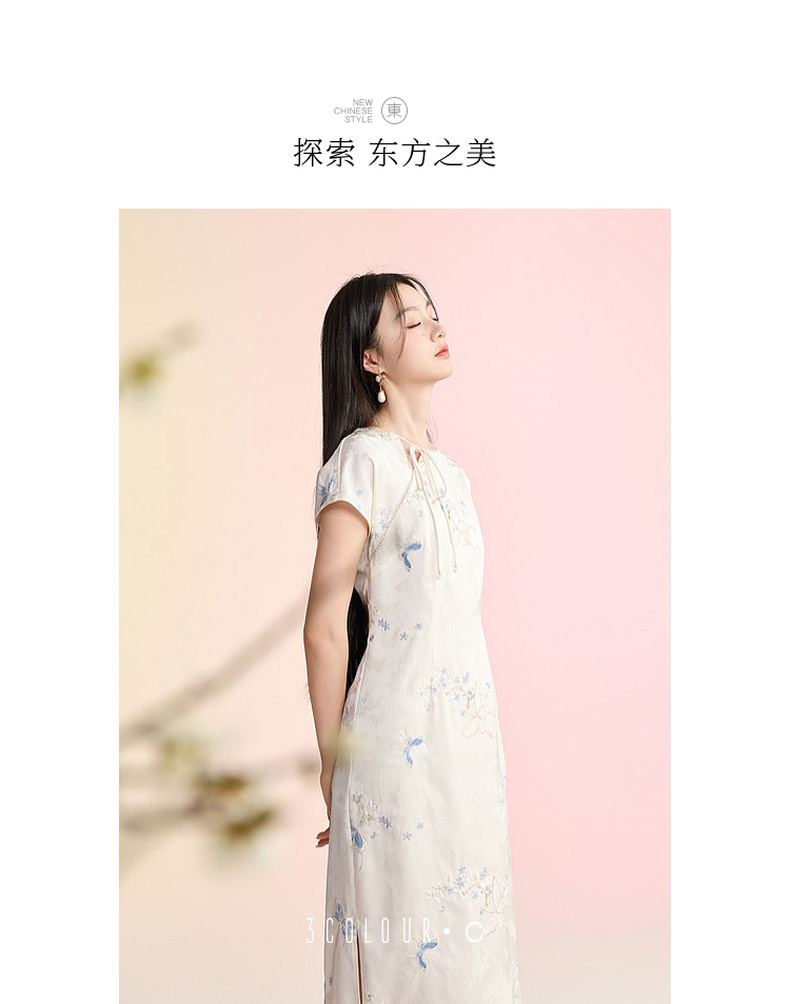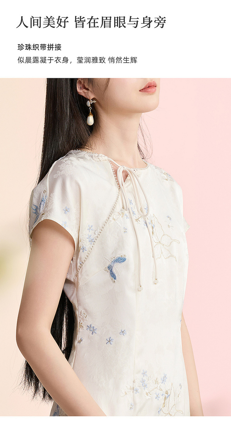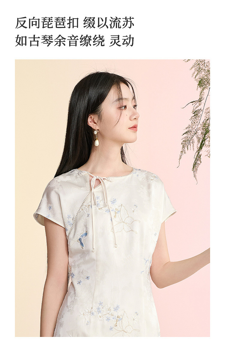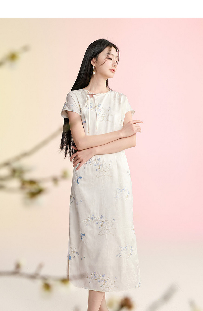 三彩【蝶栖云裳】2026春季新款新中式连衣裙提花绣花开叉长裙C