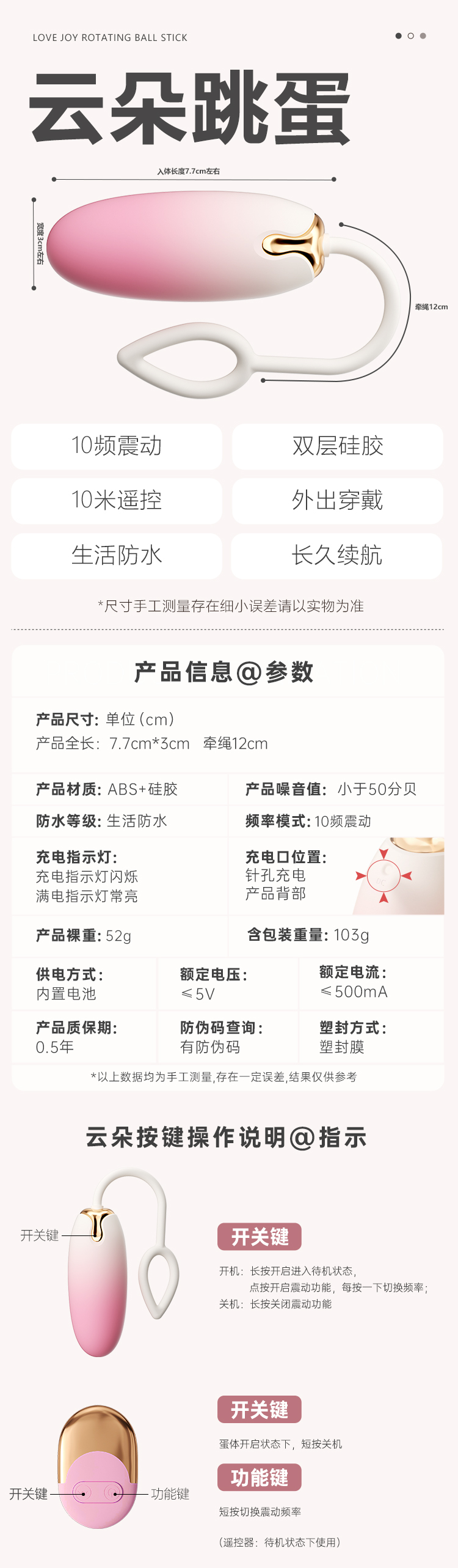 【情趣用品】谜姬 云朵跳蛋 遥控 跳蛋 渐变色