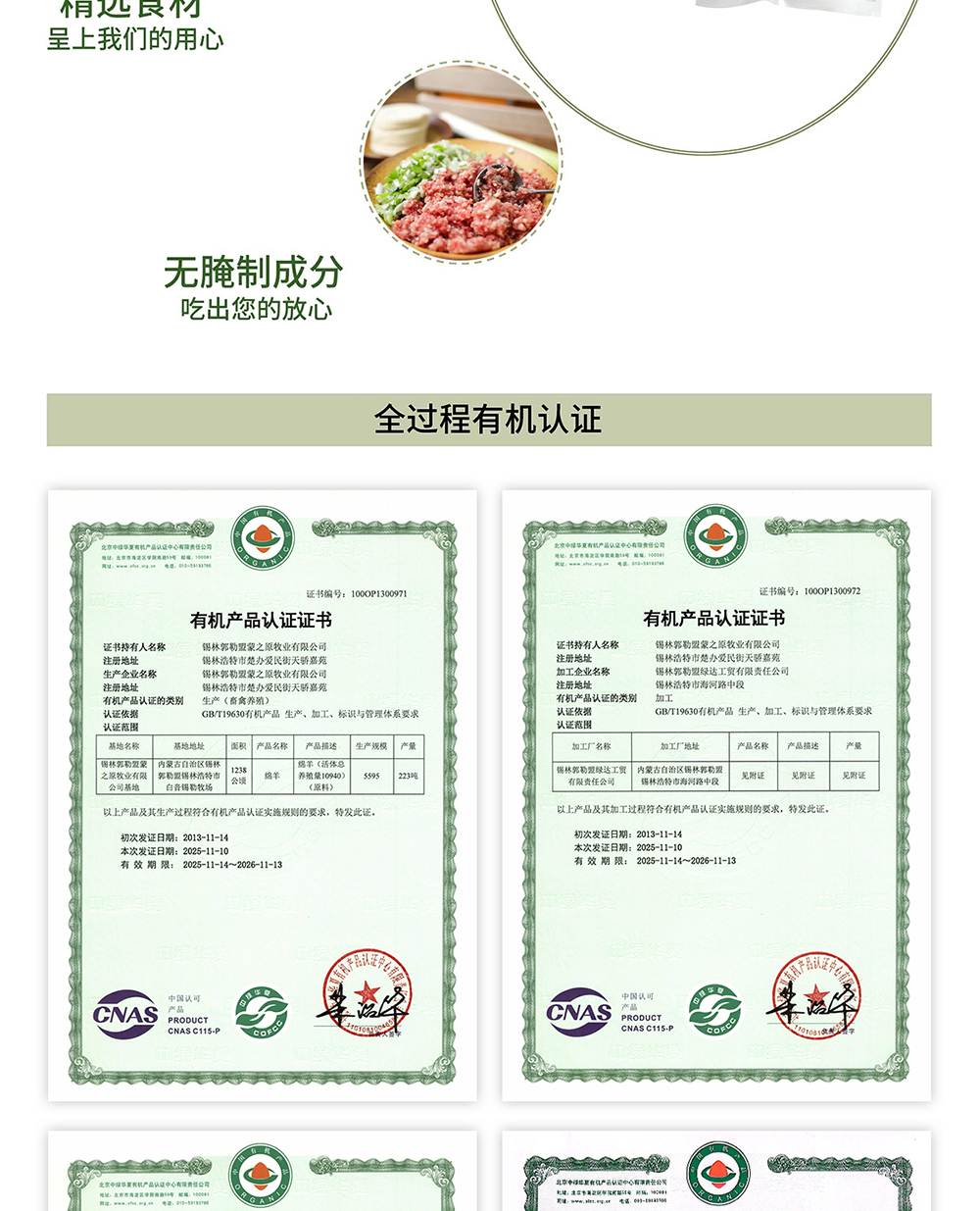 锡盟草原有机羔羊肉馅350g*2 包邮|基地直发