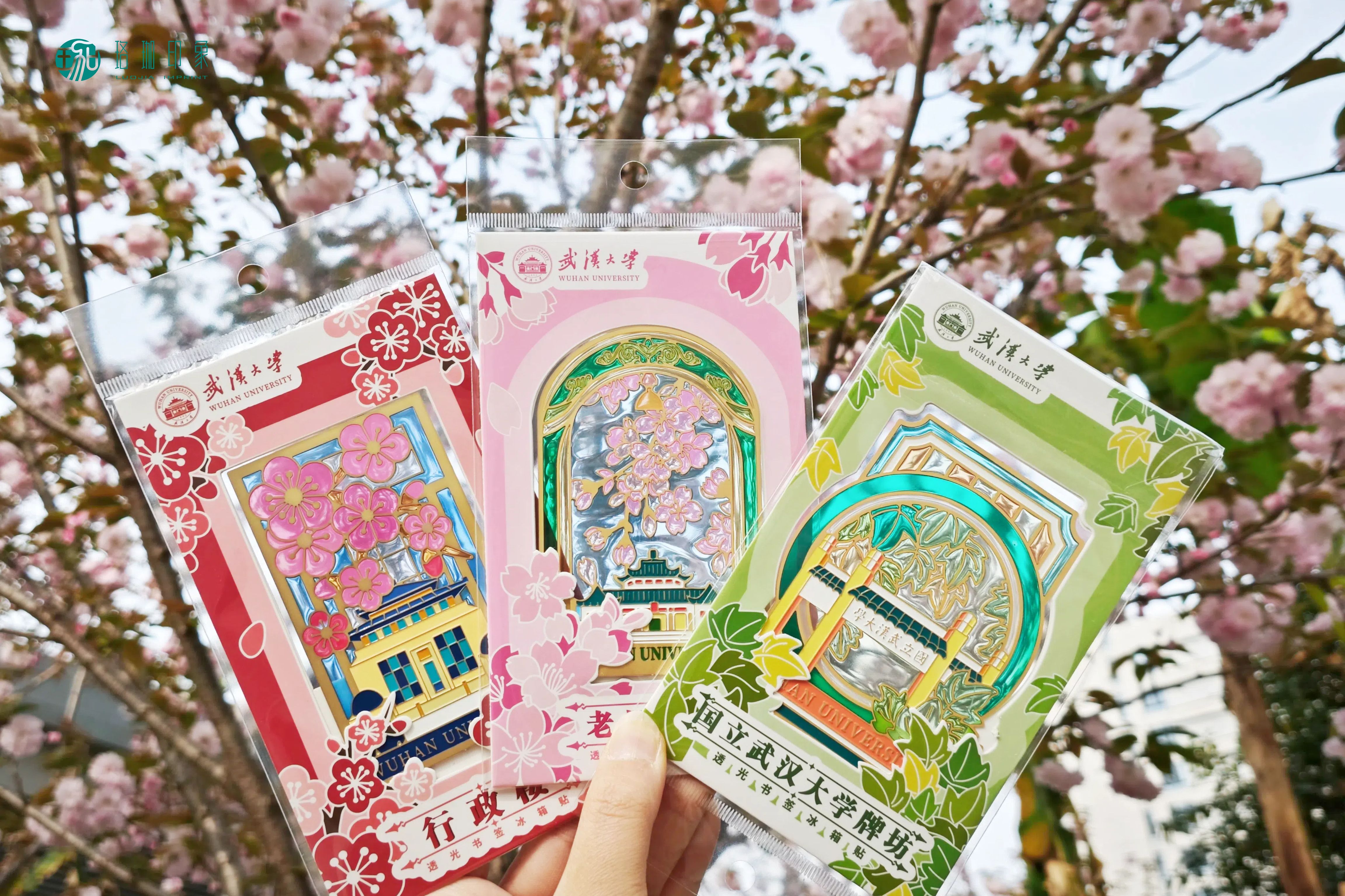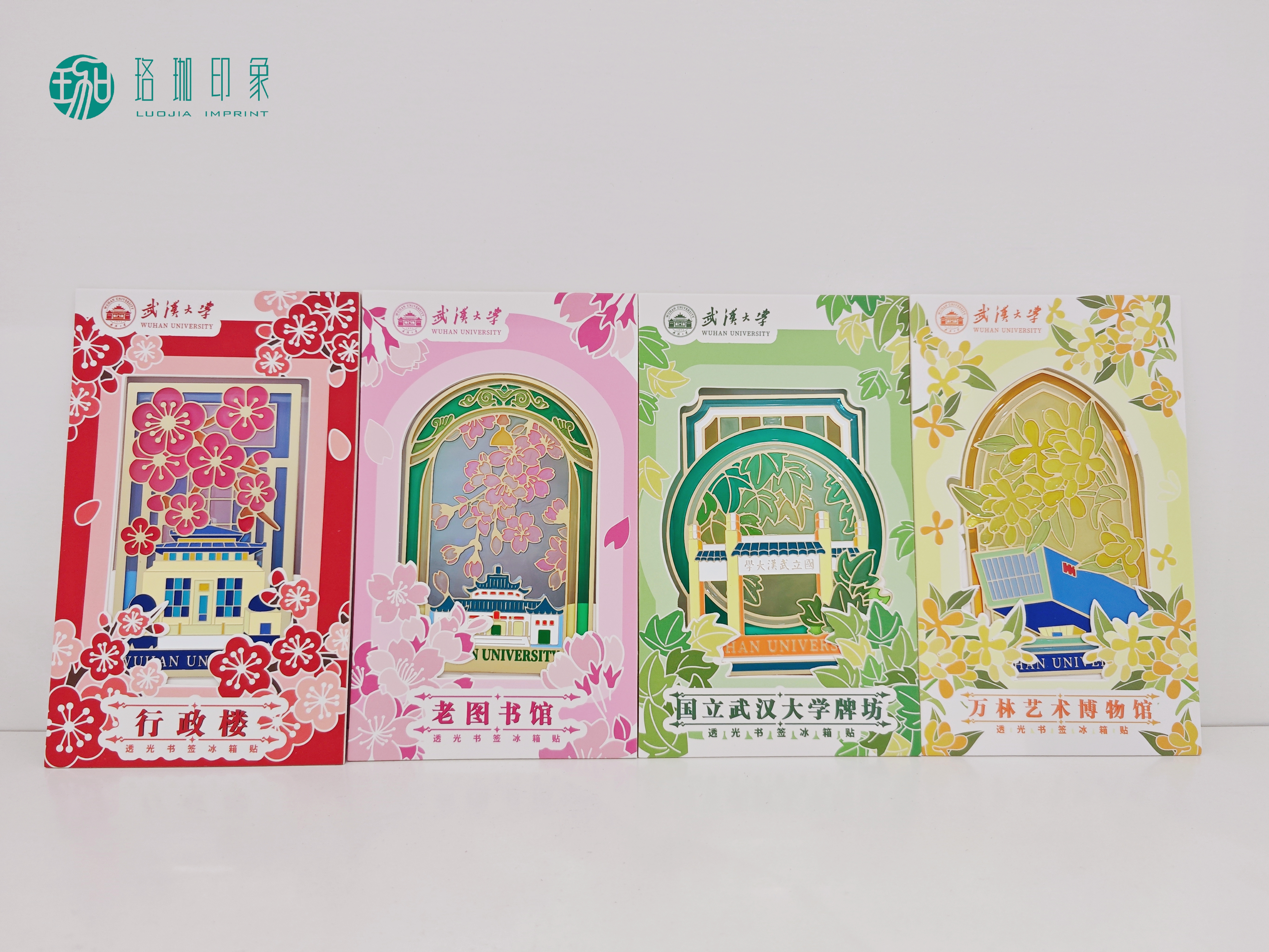 🔖武大官方文创新品透光书签冰箱贴,以光为笔,以景为墨,将百年学府的诗意凝固于方寸之间,带你穿越四季珞珈。